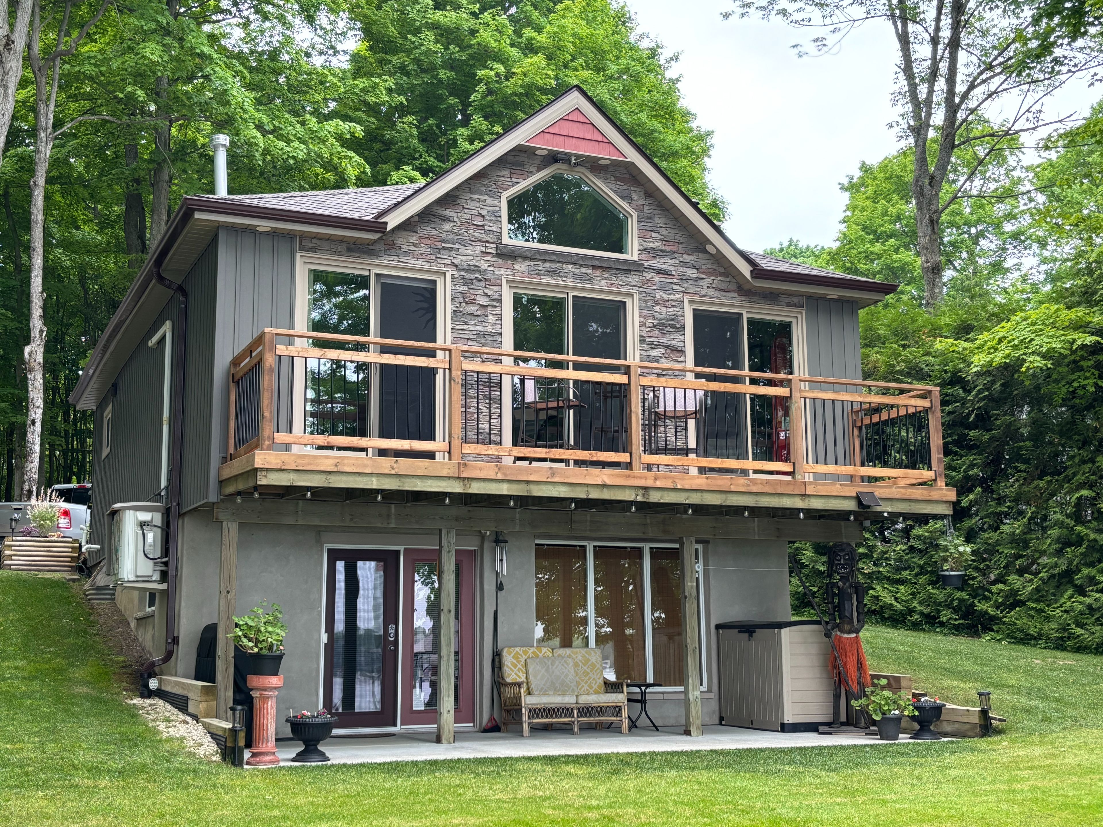 Subtype DetachedIndoor Features Water Treatment, Central VacuumOutdoor Features Deck, Lawn Sprinkler System, Year Round LivingOwnership FreeholdViews LakeWaterfront DirectBasement Walk-Out, FinishedFoundation Concrete BlockHeating / Cooling Heat PumpHeating Fuel ElectricSewer Septic