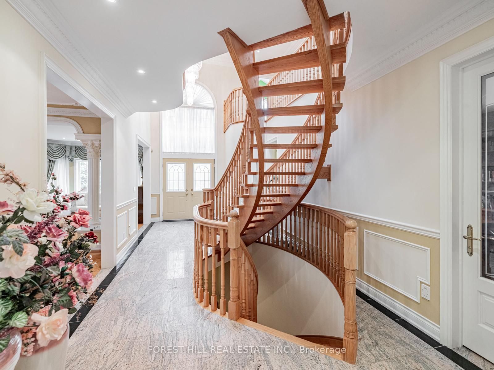 Discover this custom-built 5+2 bedroom detached home on one of the best streets in the highly sought-after willowdale east neighbourhood. Lovingly built in 2000 and meticulously maintained by the original owner, this residence sits on a 50 x 133 ft south-facing lot and offers over 5,000 sq. Ft. Of luxurious living space (approx. 3,700 sq. Ft. Above grade + 1,400 sq. Ft. Finished walk-up basement). Showcasing a timeless stone and brick exterior and superior craftsmanship throughout, the home welcomes you with a grand two-storey foyer leading to formal living and dining rooms. The family-sized gourmet kitchen with a separate side kitchen is ideal for family cooking and entertaining. A spacious breakfast area flows seamlessly into the open-concept family room with a gas fireplace, and opens onto a large wood deck overlooking a fully fenced private backyard. The main floor (9-ft ceilings) also features a custom wood-paneled library with built-in bookshelves, laundry room, pot lights, and crown moulding throughout. The sun-filled primary suite boasts south exposure, a 6-piece ensuite, and his & hers closets. Each additional bedroom offers an ensuite or semi-ensuite bath, large windows, and ample closet space. The finished walk-up basement adds versatility with a recreation room featuring a wet bar and gas fireplace, two extra bedrooms, a sauna, and a full bath-perfect for guests or in-laws. Unbeatable location: steps to top-ranked schools-hollywood ps & earl haig ss! Walk to yonge subway, shopping, parks, libraries, and all amenities, with easy access to major highways. A rare opportunity to own a timeless, quality-built modern comfort home in one of north york's most desirable neighbourhoods!