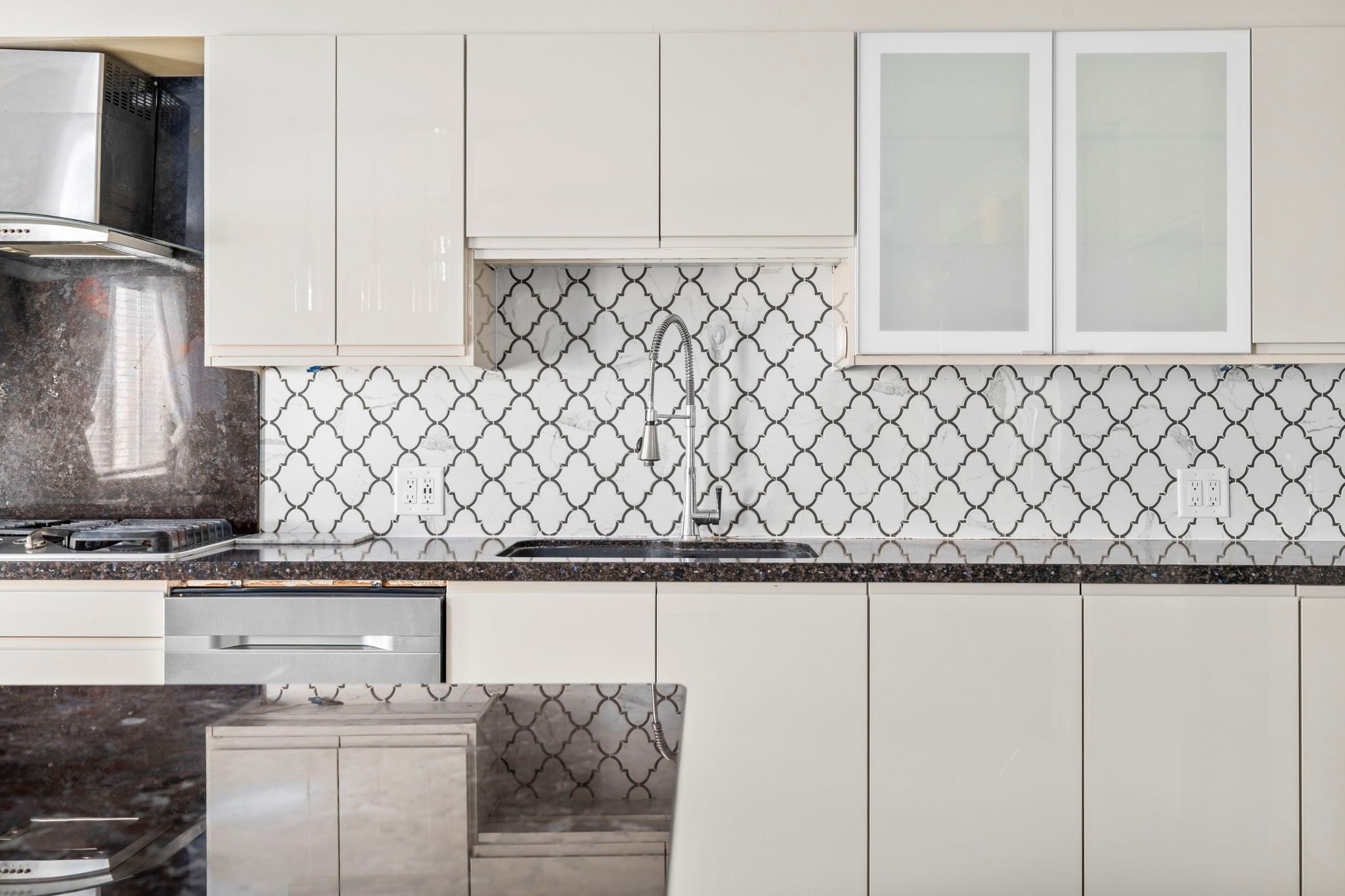 • Oversized open-concept kitchen with a large island and backyard access.