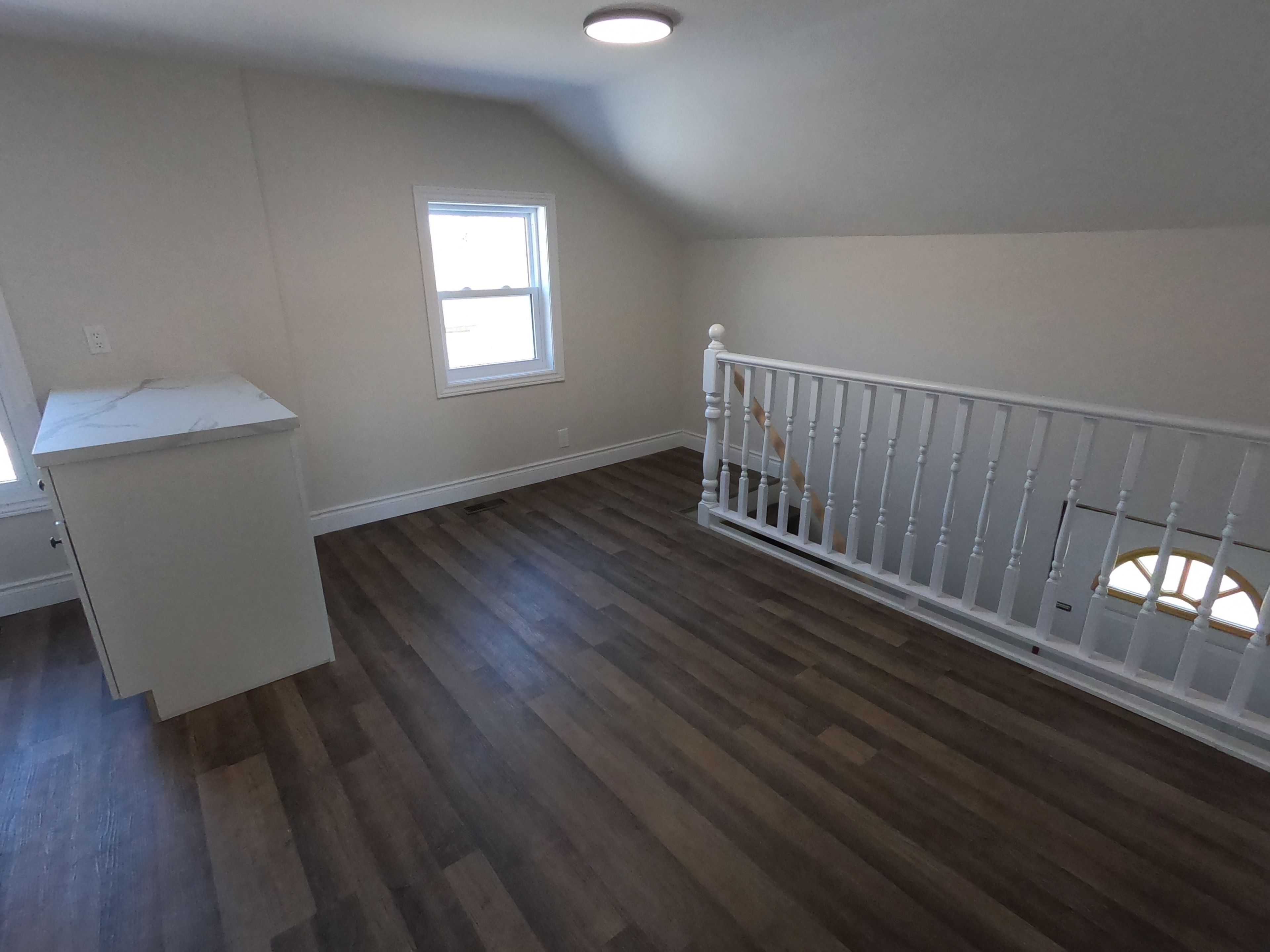 • Remodeled second floor apartment in a triplex building.