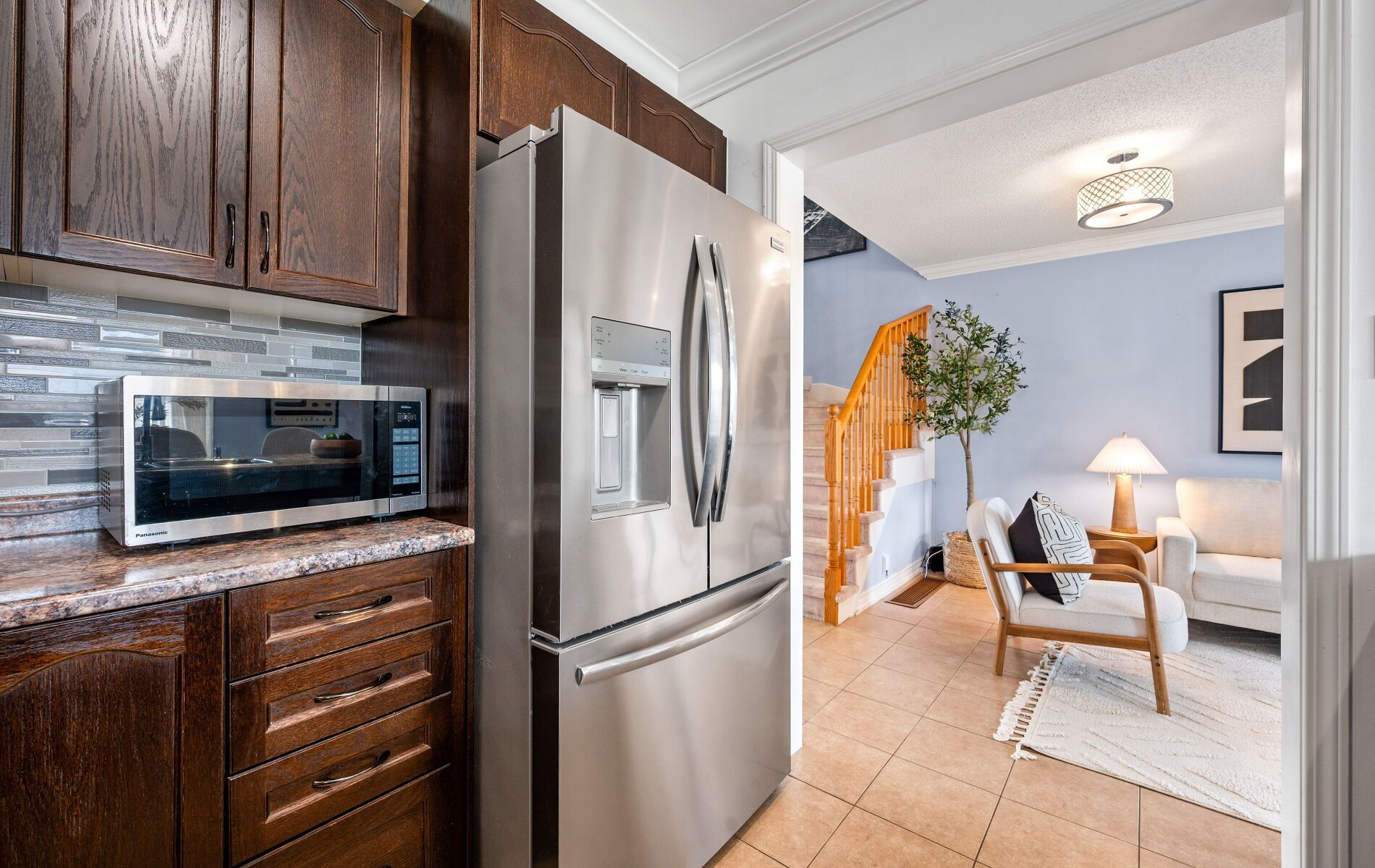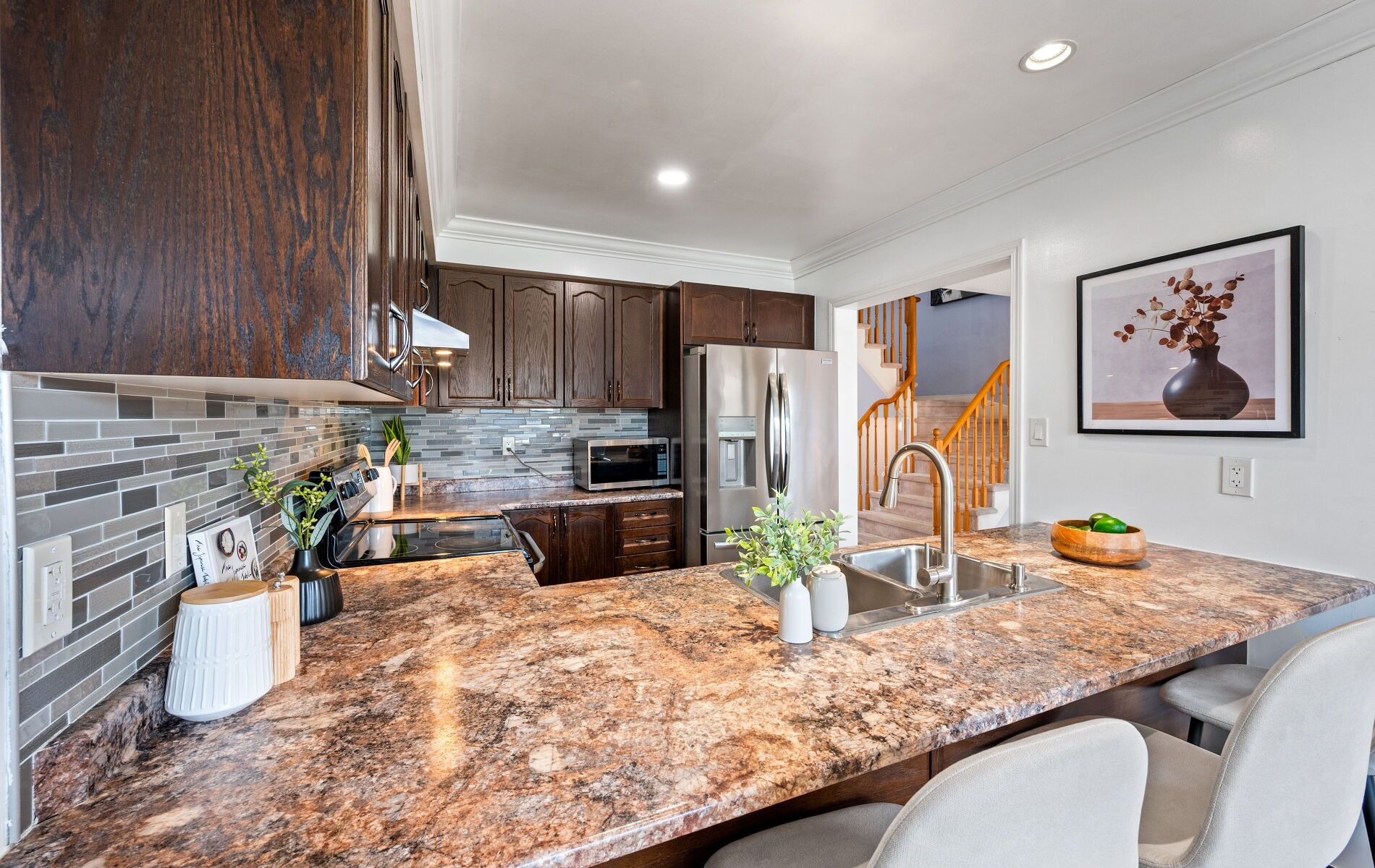 • Spacious kitchen with stainless steel appliances and breakfast bar.