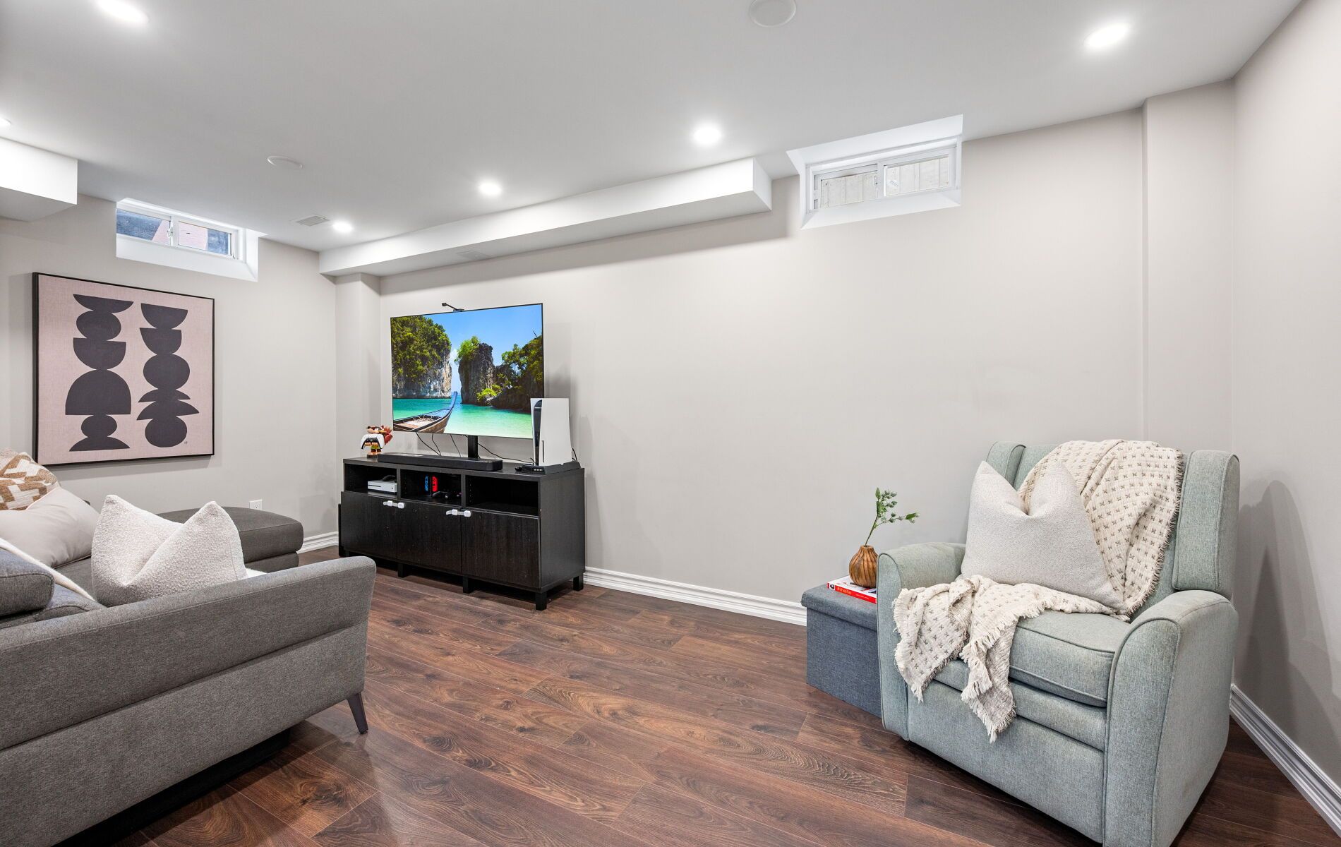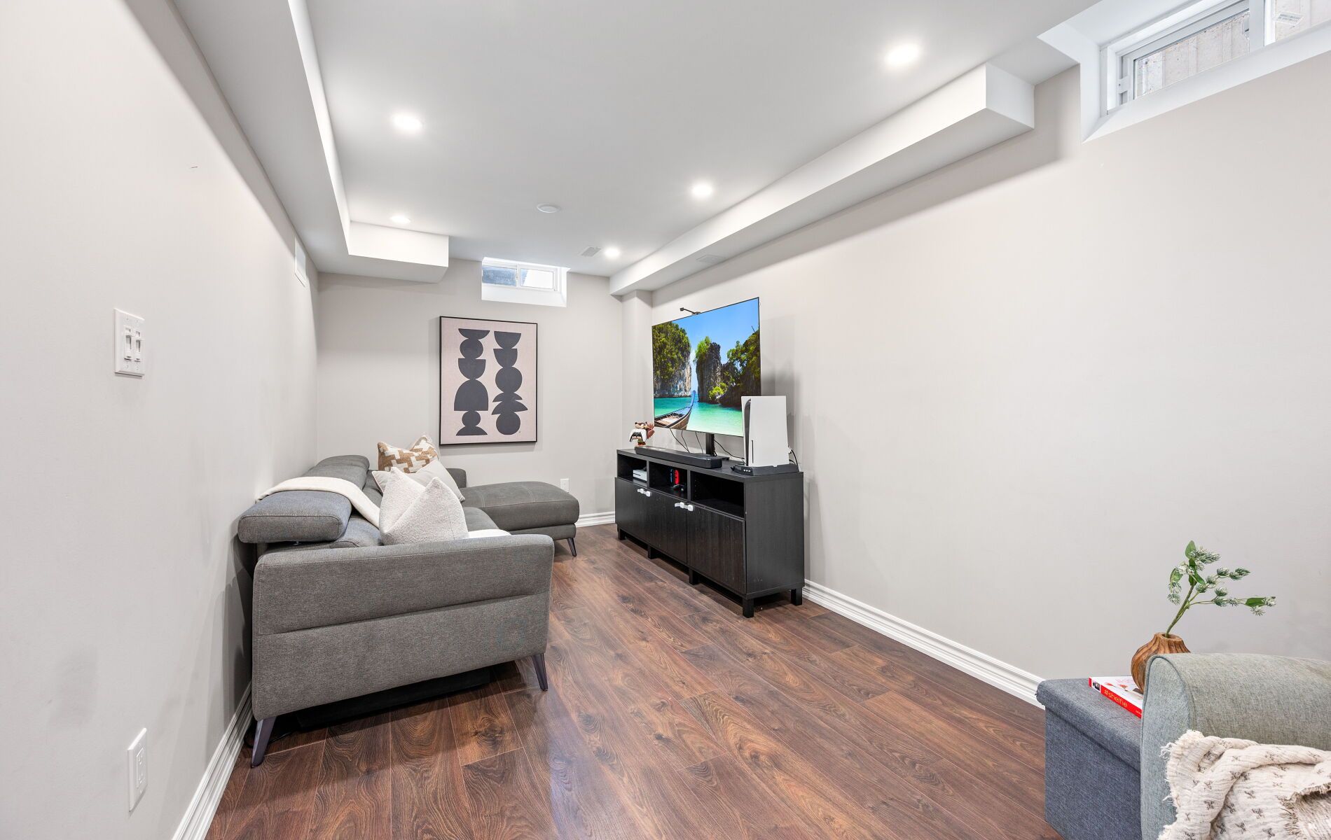 • Professionally finished basement for work or recreation with full bath.