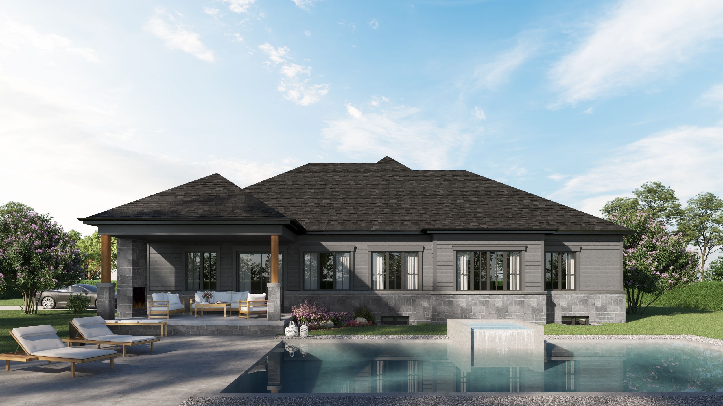 • Custom bungalow with 1,900 sq. ft., 3 bedrooms, and 3 bathrooms.