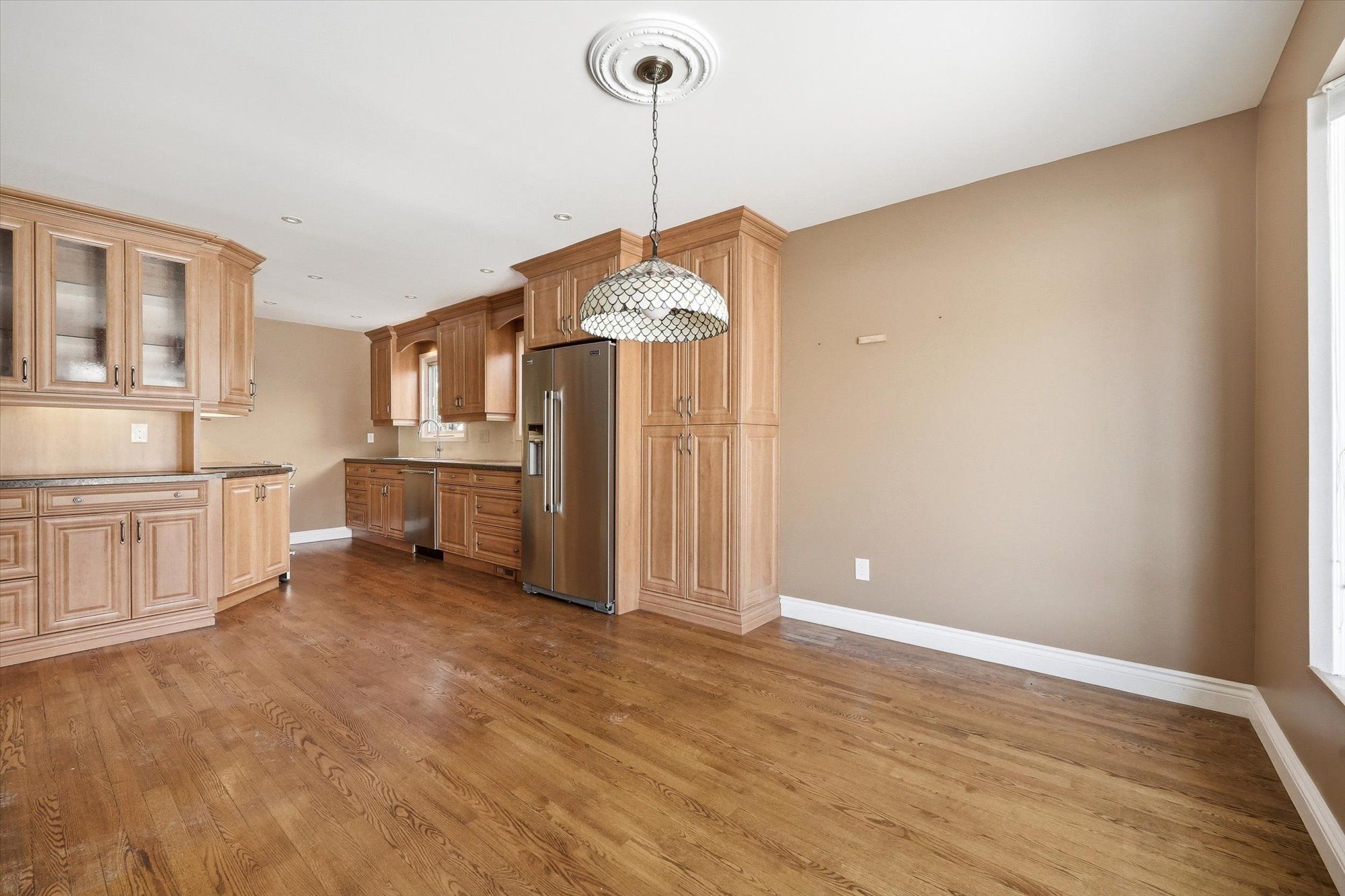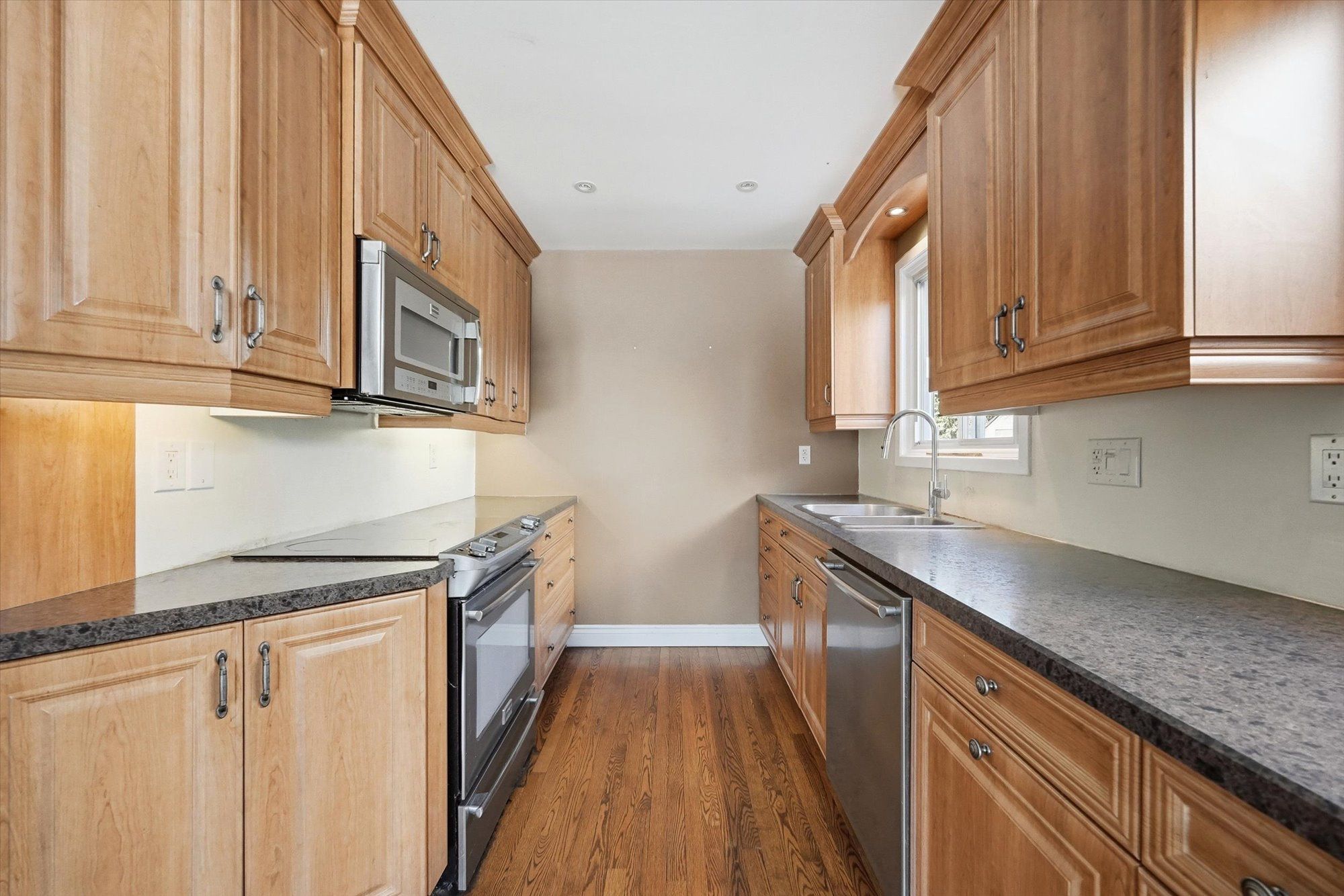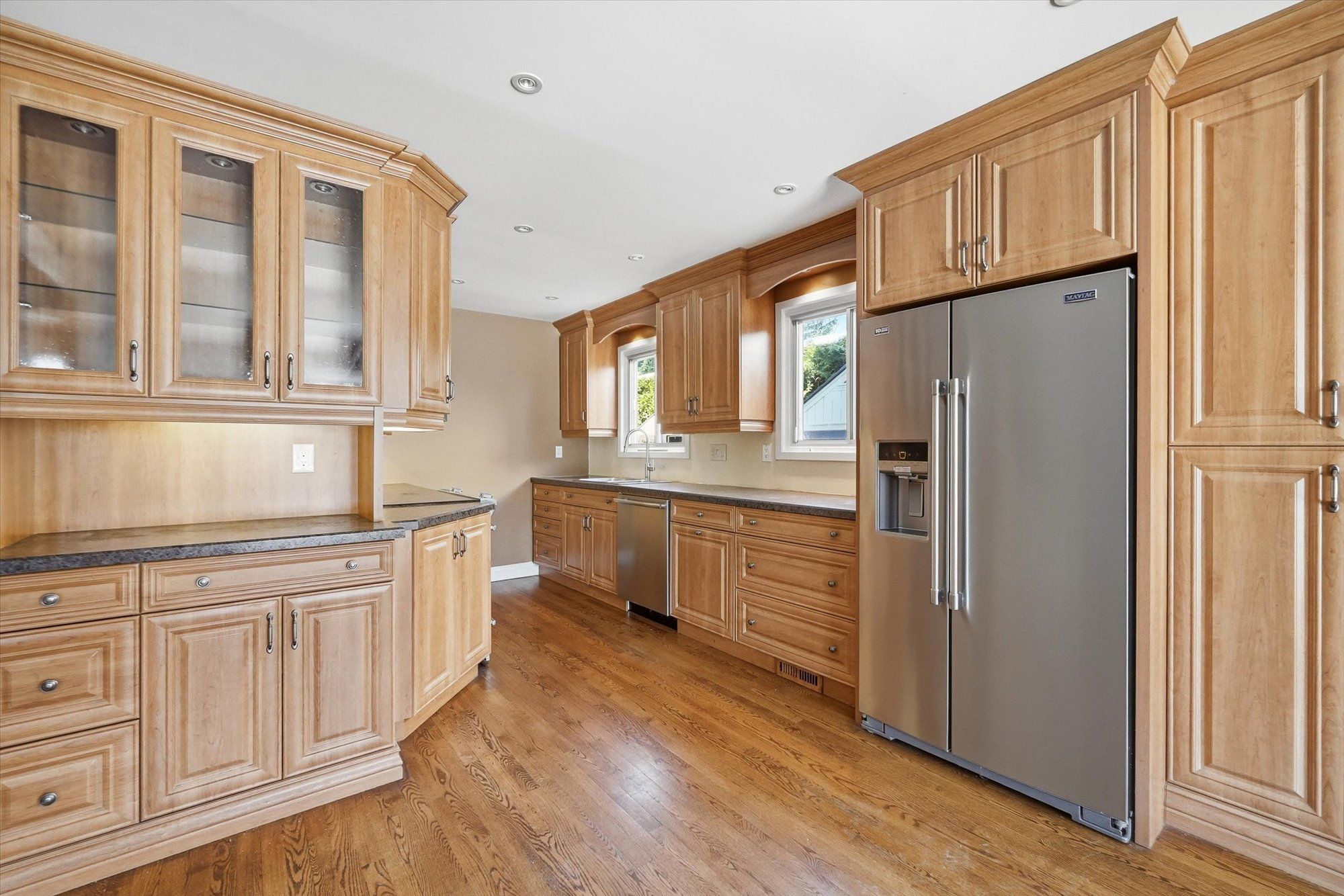 • Updated kitchen with stainless steel appliances and ample cabinetry.