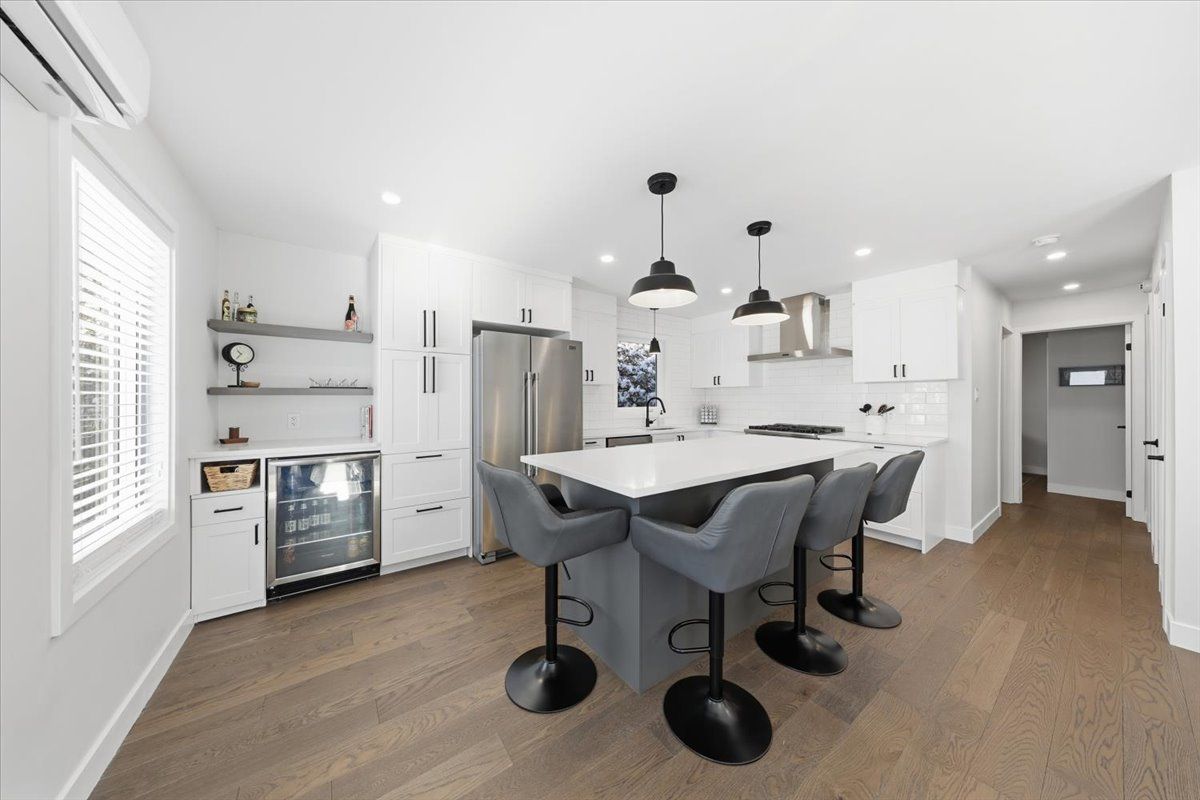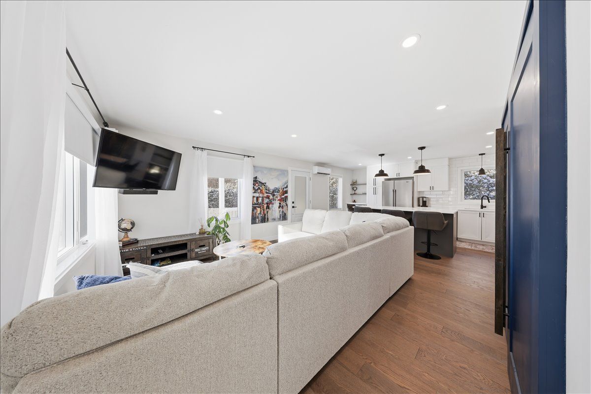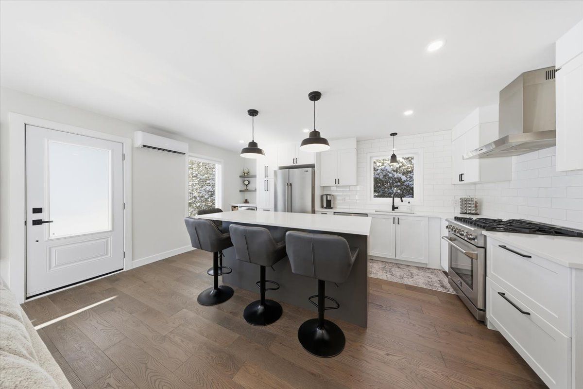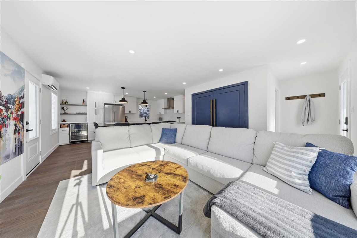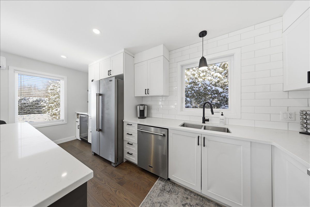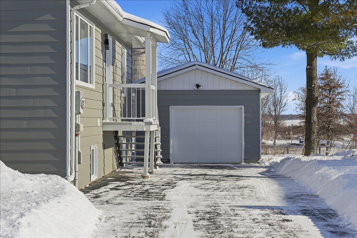 Move-in ready and beautifully renovated, this 4 bedroom, 2 bathroom home sits on an impressive 87' x 262' lot with no rear neighbours, right in the heart of clarence creek! The fully renovated main floor is sure to impress with its inviting open concept layout and tasteful finishes throughout, highlighted by beautiful 6" oak hardwood floors. Be prepared to be wowed by the stunning renovated kitchen (2024) featuring crisp white cabinetry, quartz countertops, striking black hardware, classic white subway tile backsplash and stainless steel appliances, including a gas range. A stylish bar area with mini refrigerator and a massive centre island with seating anchor the space, all overlooking the sun-filled living room - perfect for everyday living and entertaining! The bedroom area offers a generous primary bedroom, a spacious secondary bedroom and a beautifully designed bathroom (2024) complete with bold black finishes, hexagon tile and a sleek glass shower. A convenient side entrance leads directly to the basement stairs, making this an ideal setup for a potential in-law suite. The basement boasts high ceilings and oversized windows throughout, creating a bright and welcoming lower level that includes a versatile family room, two additional bedrooms, a full bathroom and a laundry room with plenty of storage. Outside, enjoy the paved driveway leading to the detached garage, offering ample space for a vehicle and additional storage, and extending to the fully fenced backyard-perfect for kids and pets. Great convenient location, minutes to rockland with all possible amenities and easy commute to ottawa! Many major updates done in the recent years - windows & exterior doors 2025, gas stove 2024, heat pumps 2024, roof 2018, paint 2024-25 & more. Simply move in and enjoy!
