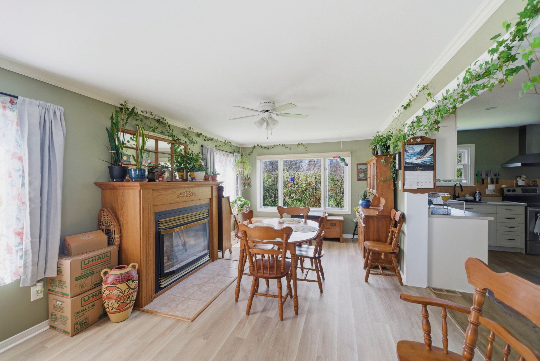 • Bright dining room with a gas fireplace and southern exposure.