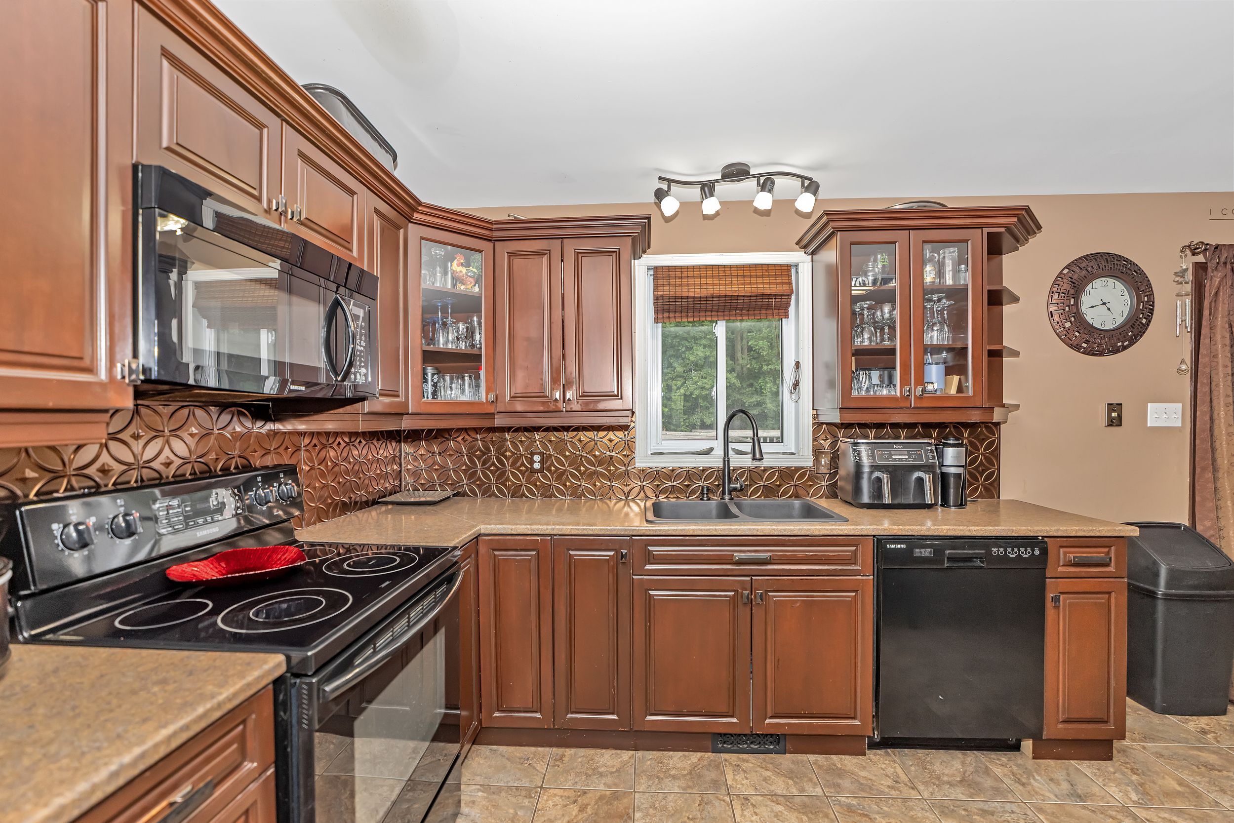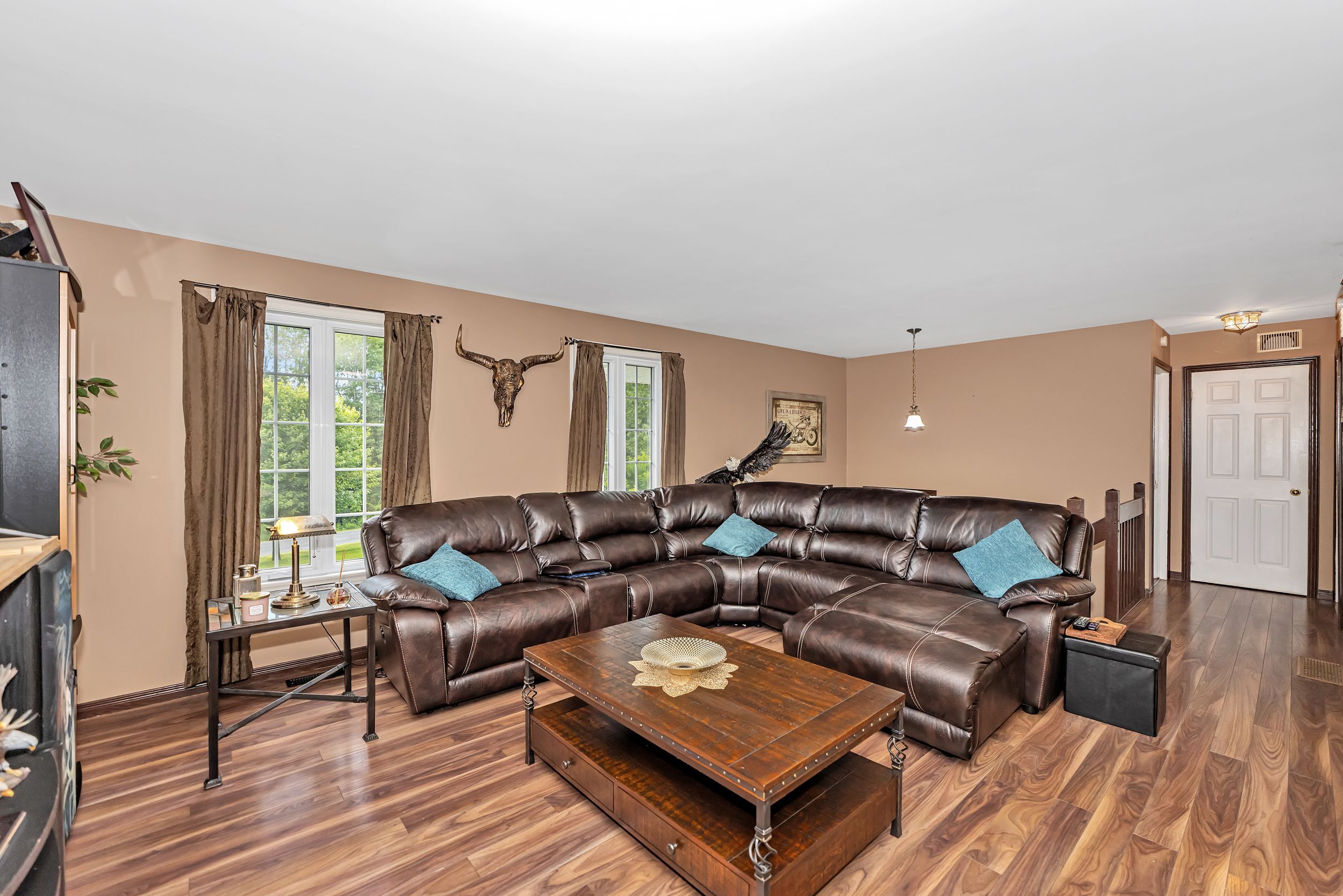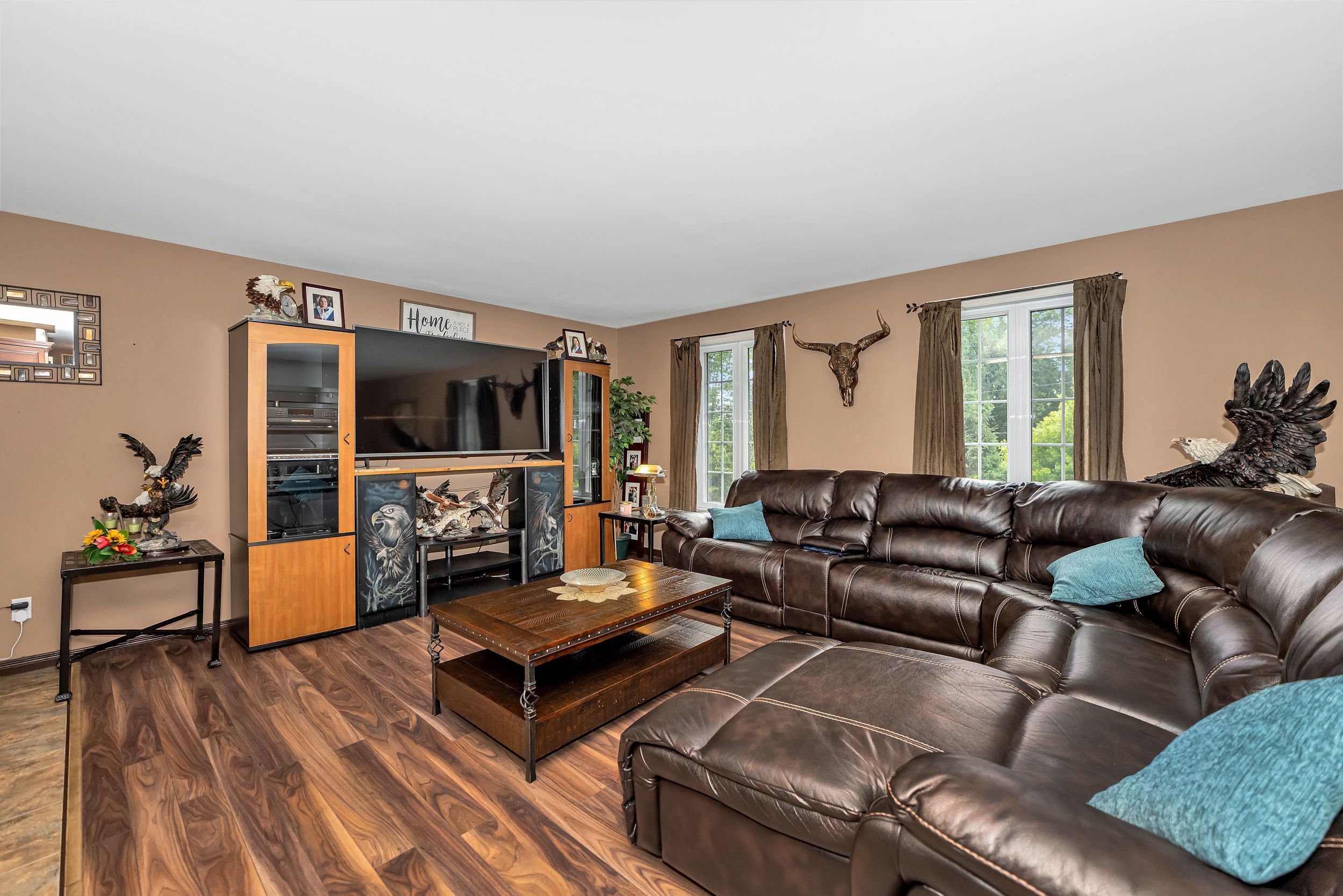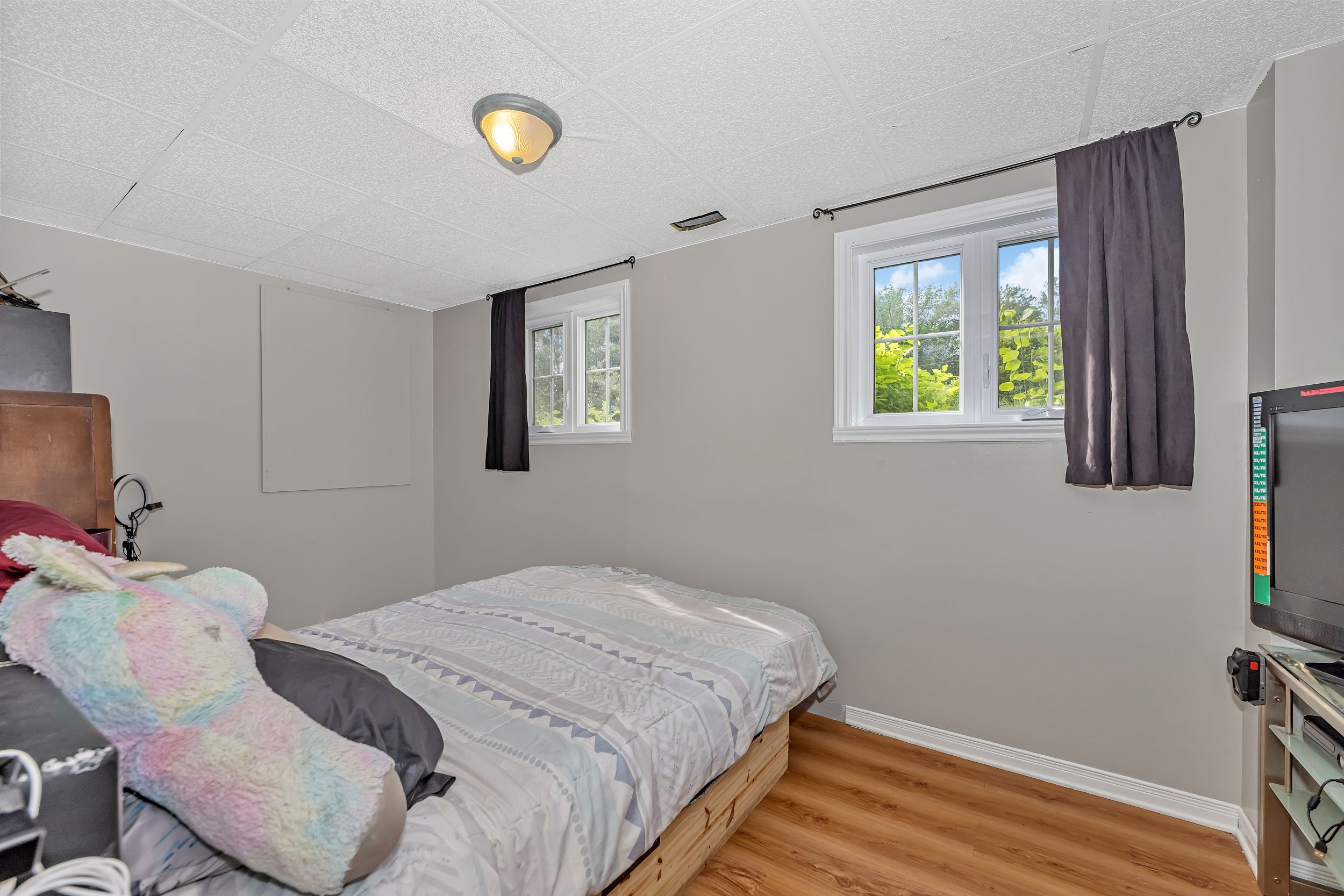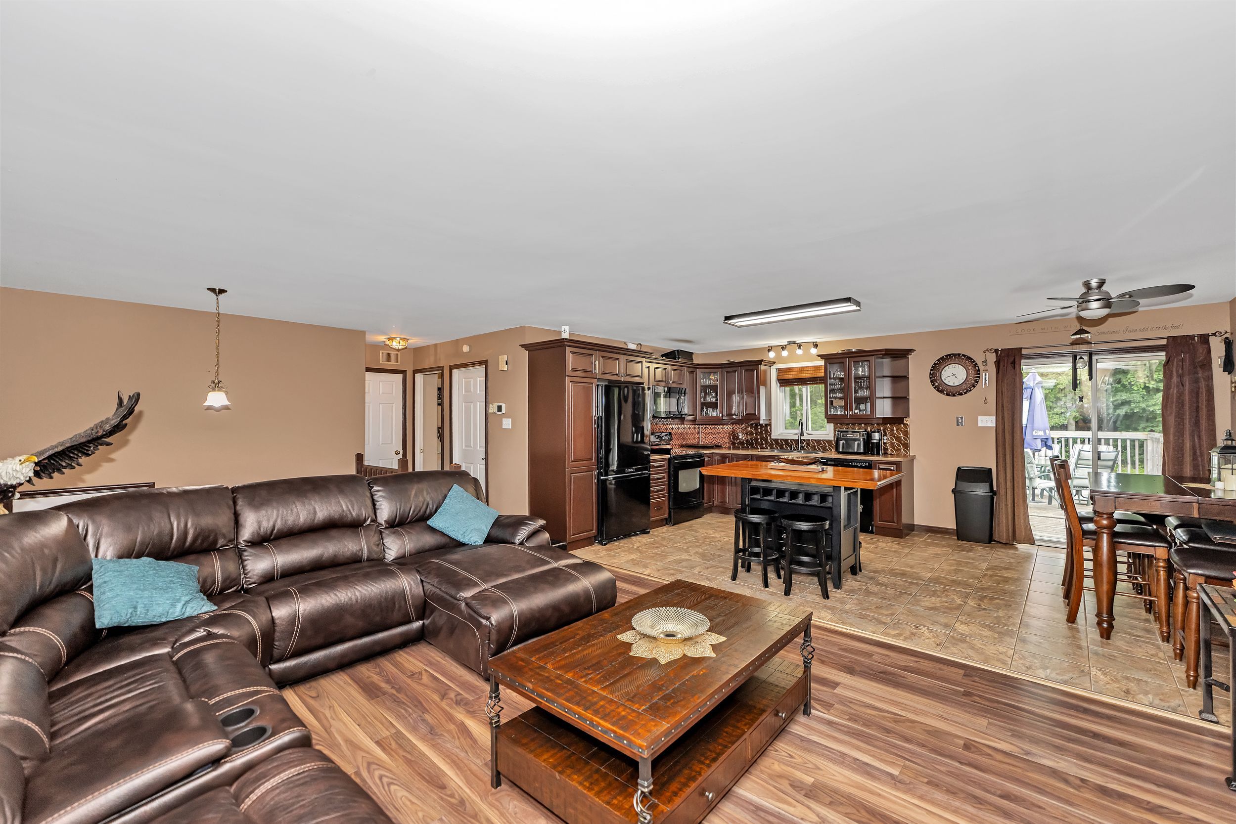 Discover this thoughtfully designed hi-ranch bungalow with a walk-out in-law suite set on a beautifully private, landscaped 1. 2acre lot with two property pins (see pictures). The charming front pathway leads to the covered porch and inviting front entrance featuring high ceilings and closet space. The bright open-concept main level showcases a spacious living room, dining area with direct access to the deck. A well-appointed kitchen complete with ample cabinet and counter space plus a functional island perfect for gathering and everyday living. The main level also offers a full bathroom with soaker tub and tile surround, a primary bedroom with walk-in closet, and a second well-sized bedroom. The fully finished walk-out lower level provides exceptional versatility with a separate in-law suite featuring its own kitchen and shared laundry area. You'll also find a cozy family room with wood-burning fireplace, third and fourth bedrooms with ample closet space, a full bathroom, abundant storage and direct access outside. The detached double garage (2018) is insulated, featuring a concrete floor and an area ideal for a workshop, hobby space or ultimate retreat. The extended driveway provides ample parking for multiple vehicles, trailers or guests. Outdoor living is equally impressive with a fenced yard that showcases beautiful gardens, mature trees, shrubbery, an enclosed gazebo, firepit area and storage sheds. Tucked away on a quiet dead-end road just minutes from cornwall and quick highway access for an easy commute to ottawa. A rare opportunity offering flexible living, privacy and room to grow. 24-hour irrevocable on all offers.