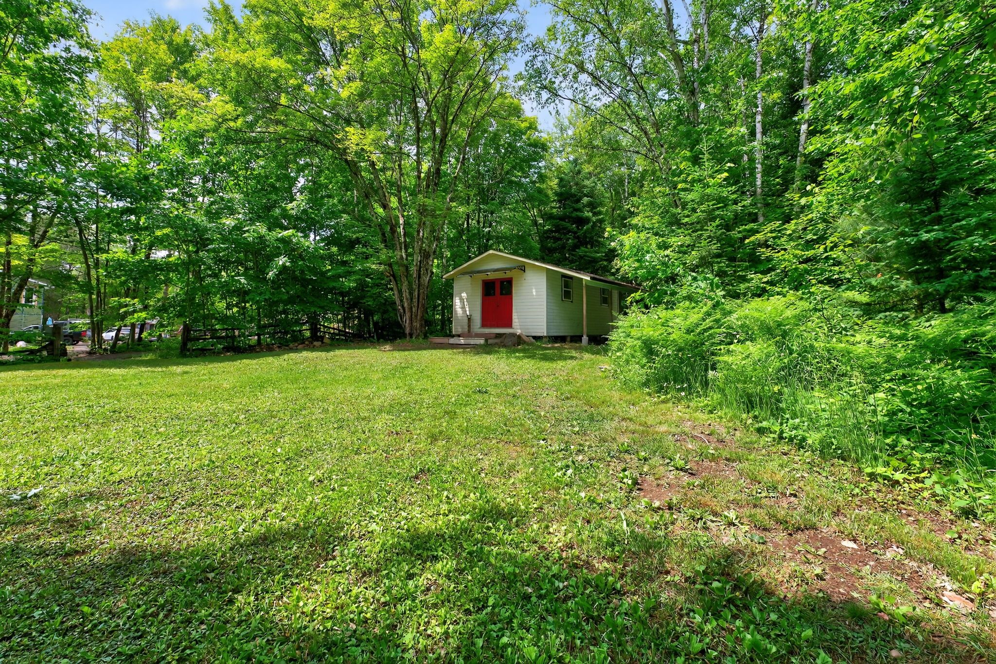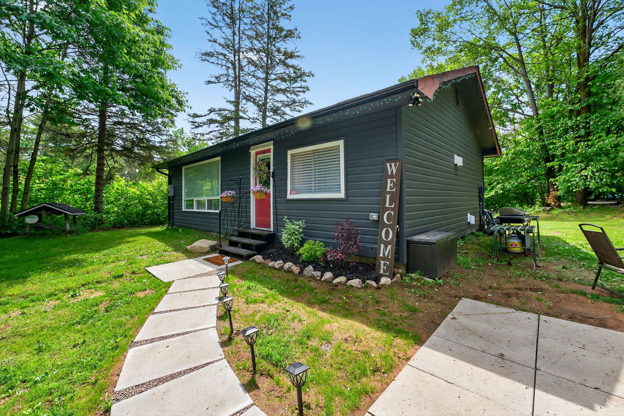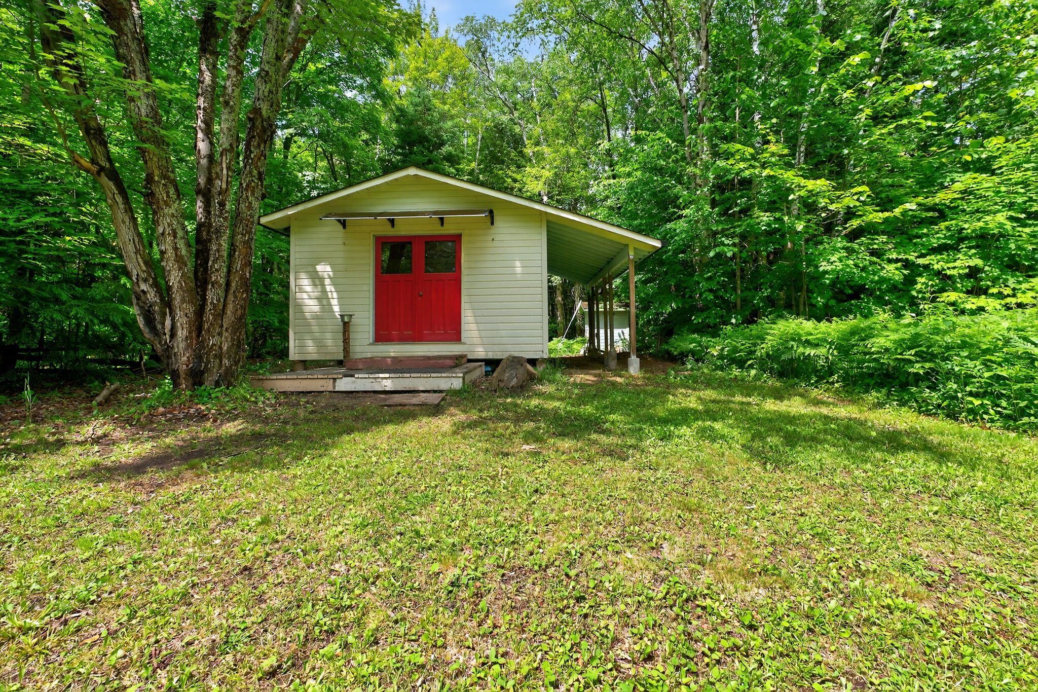 Welcome to your peaceful escape in the heart of the algonquin highlands! Situated directly across from the pristine waters of halls lake. Set on a spacious, tree-lined lot, the main home is a cozy 2-bedroom, 1-bathroom bungalow featuring an open-concept living and dining area, as well as a well-equipped and convenient kitchen and laundry area. A large picture window in the living room fills the space with natural light and serene views. Ideal for hosting family and friends or creating a private rental opportunity. The property also includes a separate 1-bedroom guest suite with it's own access off stouffer mill rd, connecting to hwy 35. This dwelling makes for a perfect garden suite, and rental potential offering comfort, privacy, and flexibility for year-round enjoyment. This suite has been roughed in for a full bathroom and kitchenette just waiting for you to add your personal touch. A detached double car garage, with added workshop, provides ample storage for vehicles, tools, and recreational gear, making it easy to explore everything this sought-after lakefront community has to offer. Whether you're looking for a weekend getaway or a full-time residence surrounded by nature, this property is a rare gem just steps from swimming, boating, fishing, and the scenic beauty of halls lake.