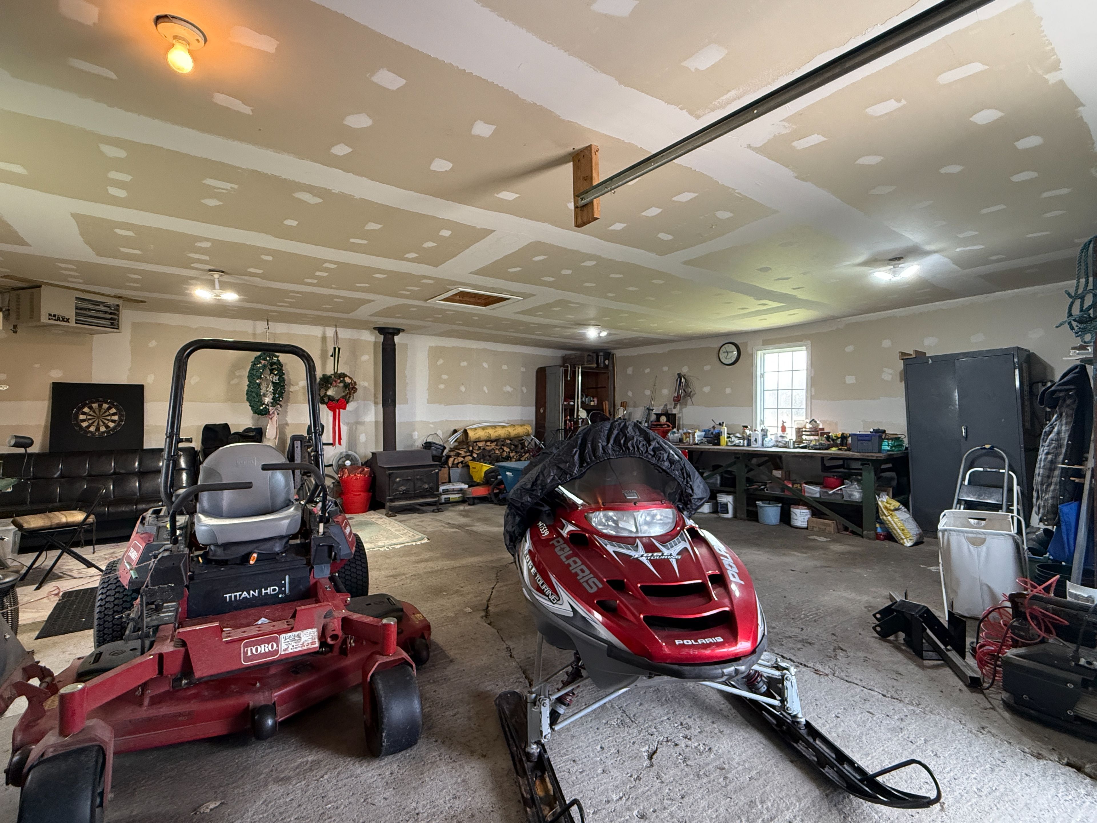 • Detached double garage offers ample parking and workshop space.
