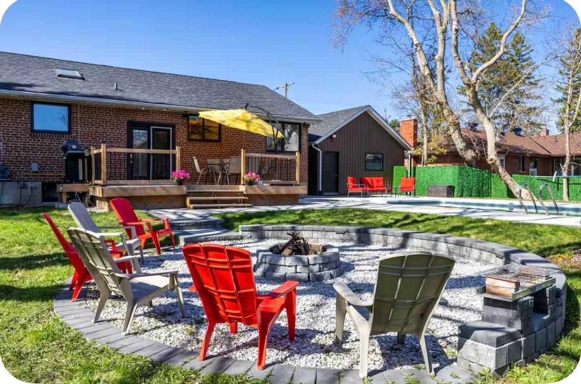 • Private outdoor area with a renovated pool and landscaped grounds.