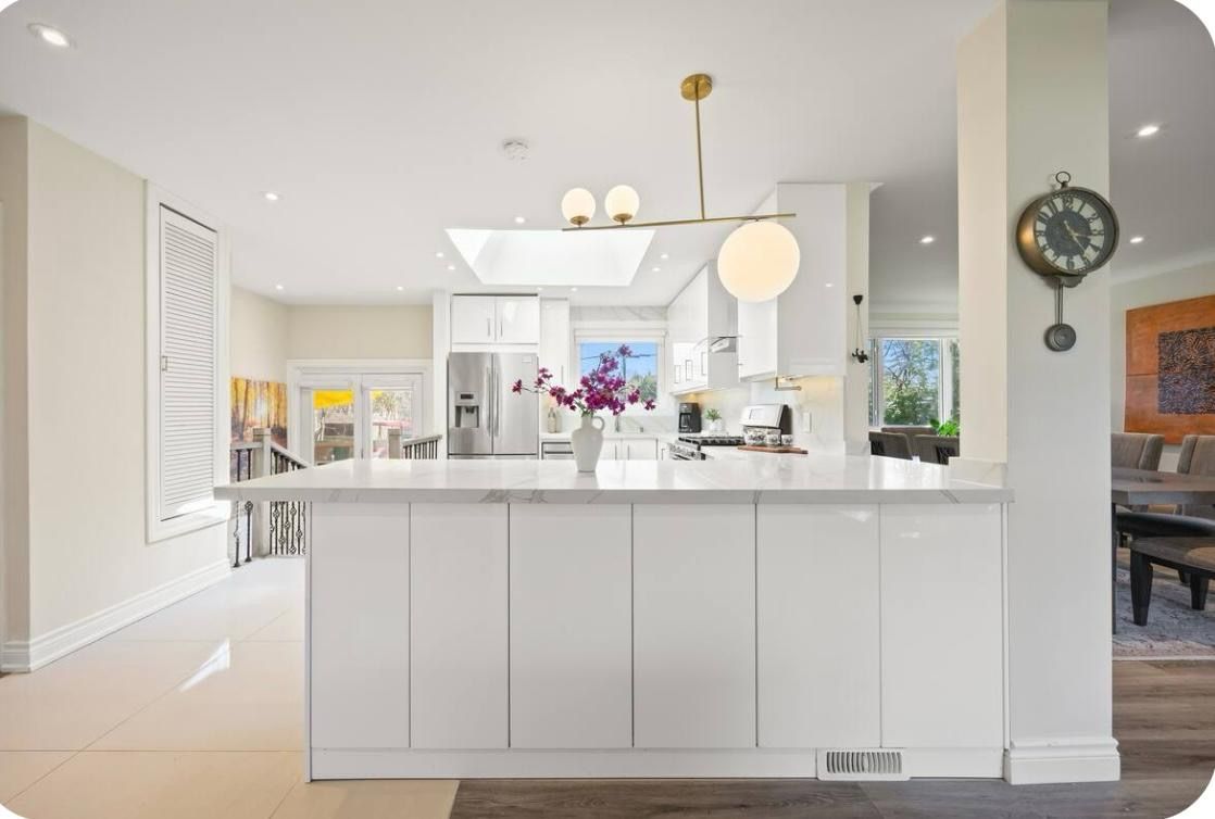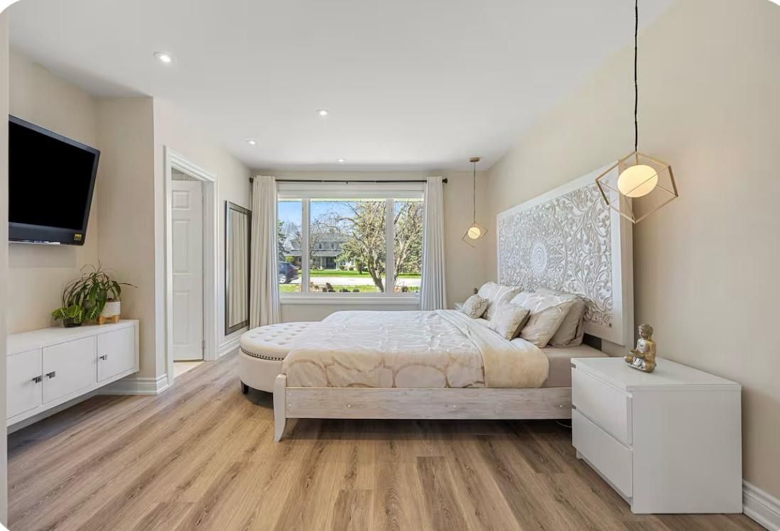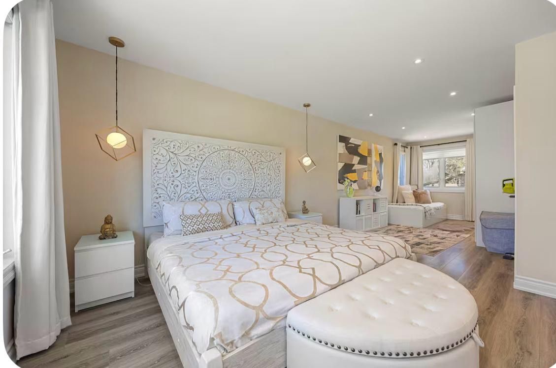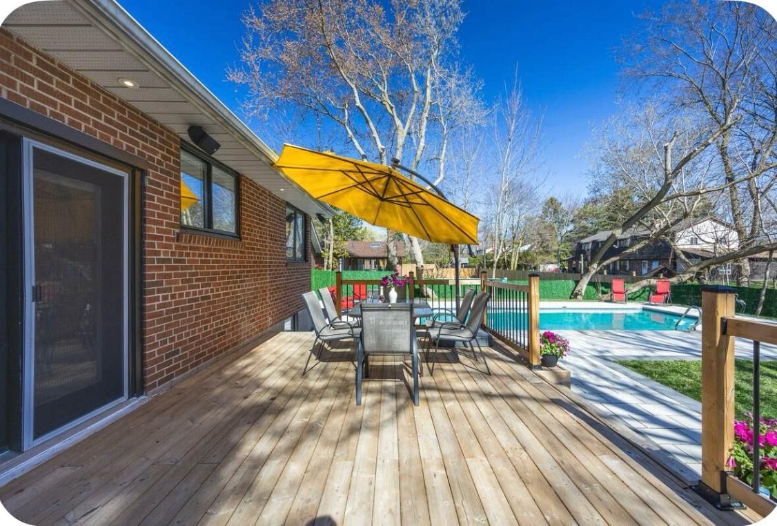 This exquisitely renovated home offers a perfect blend of modern luxury and timeless elegance, ideally situated on a rare and vast 122 x 123 ft lot. Every detail has been thoughtfully curated from the rich hardwood flooring on the main level, the stunning 36x36 tile flooring throughout the foyer and kitchen to the sleek laminate in the fully finished basement. Freshly painted interiors are complemented by smooth ceilings and recessed pot lights, creating a bright and sophisticated ambiance throughout. The custom-designed kitchen features under-mount lighting, illuminated ceiling, stainless steel appliances and premium finishes, while the spa-inspired bathrooms on the main floor have been completely reimagined for comfort and style. Additional upgrades include all-new electrical wiring, built-in speakers throughout the home and backyard, a cutting-edge surveillance camera system, zebra blinds with partial automation, and a custom-organized closet for enhanced functionality. Step outside into your own private resort. The professionally landscaped grounds are enhanced by elegant interlock stonework in both the front and backyard. A fully renovated pool with a new liner and ambient lighting serves as the centerpiece of this outdoor sanctuary perfect for entertaining or unwinding in total privacy with playing green space or just sitting back on the deck for a morning coffee. Ideally located just minutes from the go train and highway 404, and within walking distance to shops, parks, and schools.