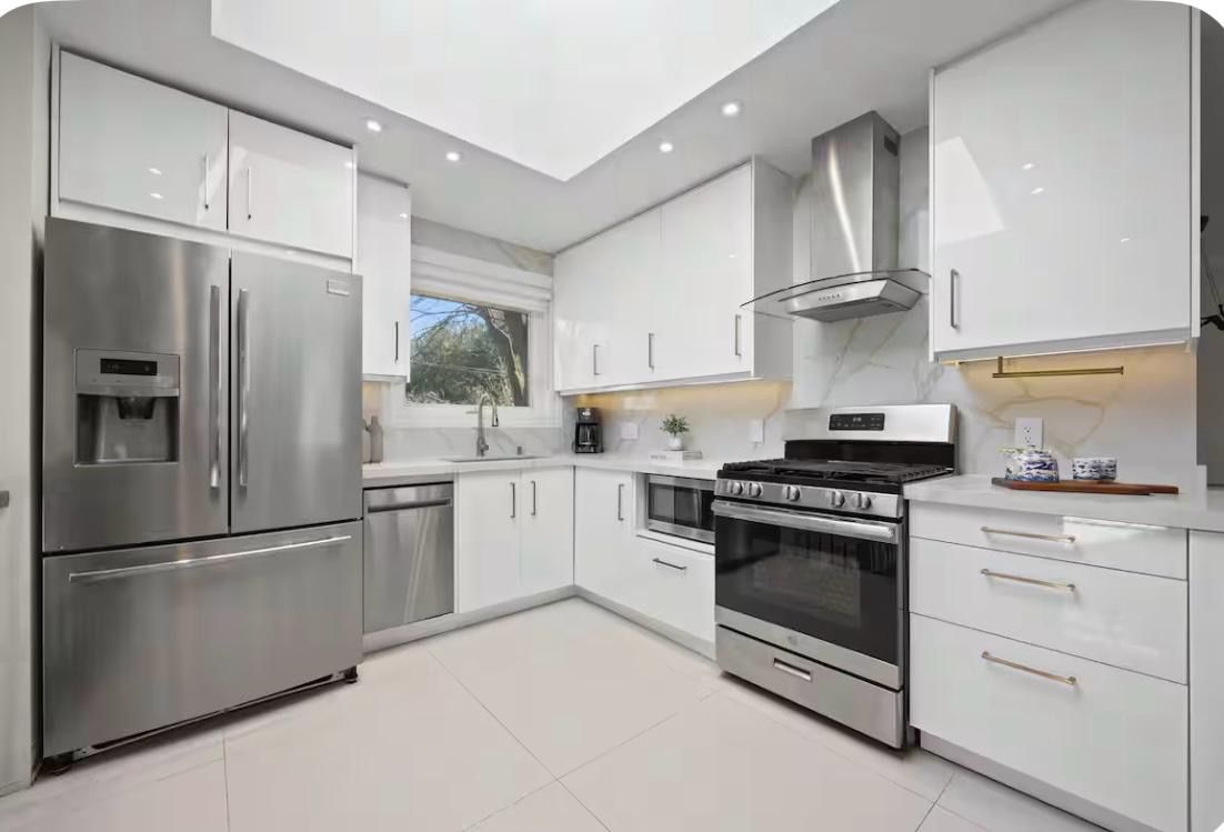 • Custom kitchen with premium finishes and stainless steel appliances.