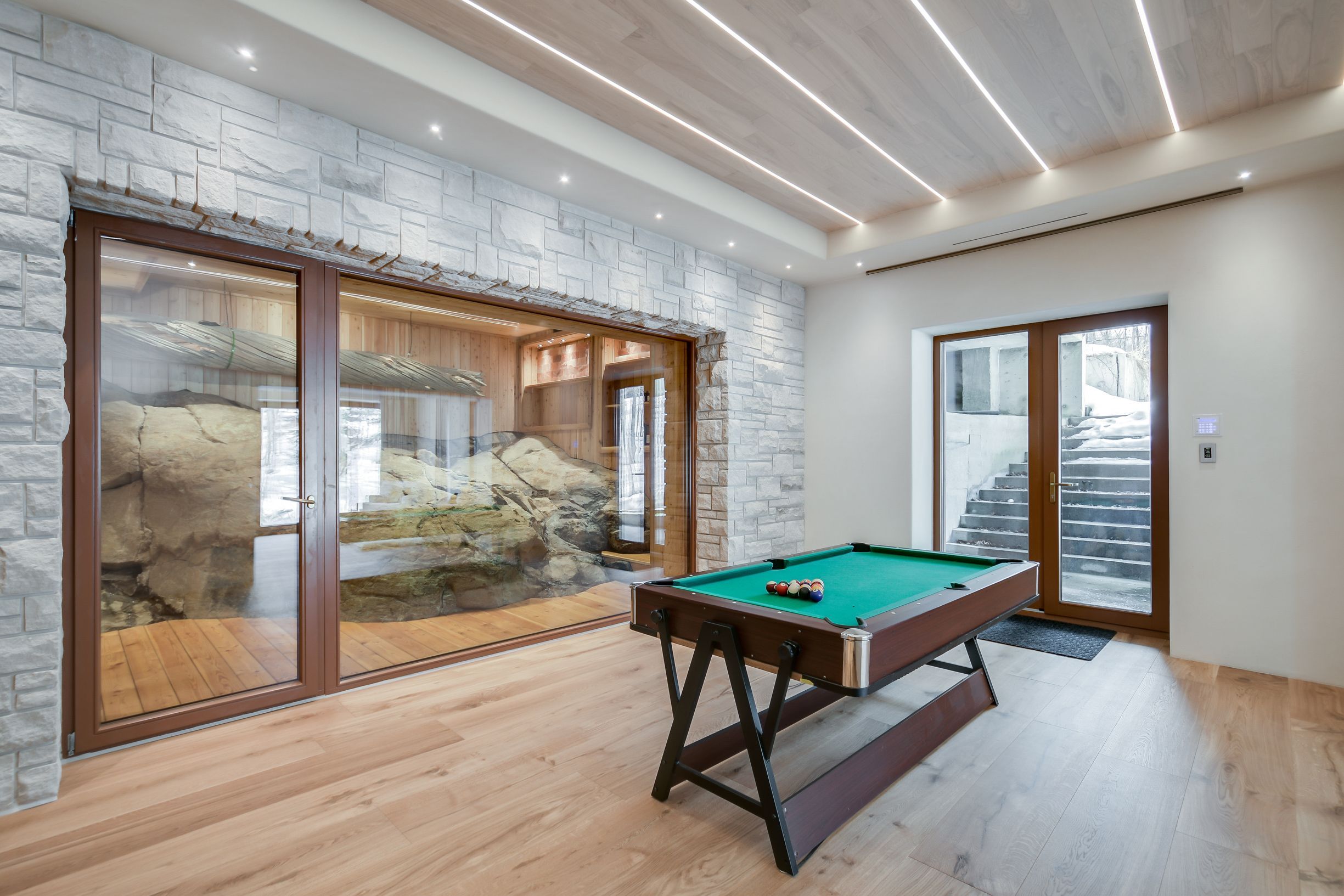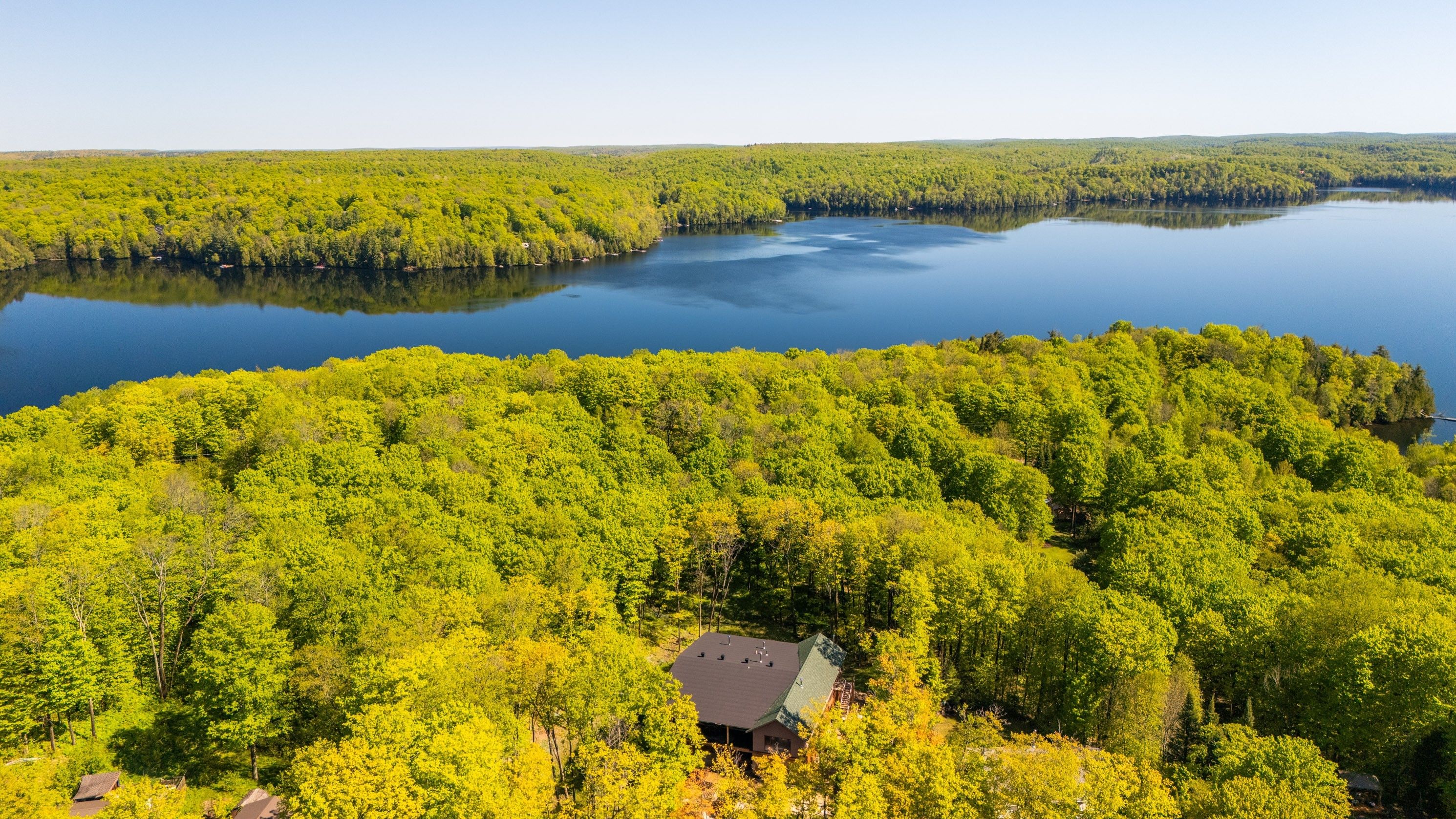 Pure luxury retreat - your private paradise in the heart of the canadian wilderness. A one-of-a-kind luxury retreat and architectural marvel that truly feels like a house from 2050. Built to net zero passive house standards, this estate spans approximately 9,500 sqft of custom-designed living space, plus over 9,000 sqft of decks encircling the home. It blends modern luxury with ecological stewardship and serene forest views. Featuring a private dock and deeded lake access, this property is a sanctuary for those seeking refined living and the possibility of complete independence. Crafted with european-sourced materials and exceptional craftsmanship, this home showcases a rare ecococon straw wall system for superior insulation, legalett radiant floor heating for consistent, draft-free warmth, and triple-pane european windows to optimize energy performance. Every detail is thoughtfully designed for comfort, wellness, and sustainability. The main floor offers an expansive open-concept great room with floor-to-ceiling windows, a gourmet kitchen, library, office, and a spacious primary suite with a spa-like ensuite. Upstairs, discover a versatile gym, cozy upper living area, wood-burning sauna, and an inviting swim-up spa with jacuzzi - an unparalleled wellness retreat. The lower level features a generous recreation room, rock-carved wine cellar, cold storage, and mechanical spaces. Natural materials throughout - including wide-plank natural wood floors, marble and granite finishes, and cross-laminated timber - create a serene, healthy environment. With a full-house generac battery system, 400-foot well, and solar-ready infrastructure, this home is fully prepared for sustainable, self-sufficient living. There are simply too many upgrades to list - contact the listing agent for full details on this unique masterpiece, offered well below replacement cost.
