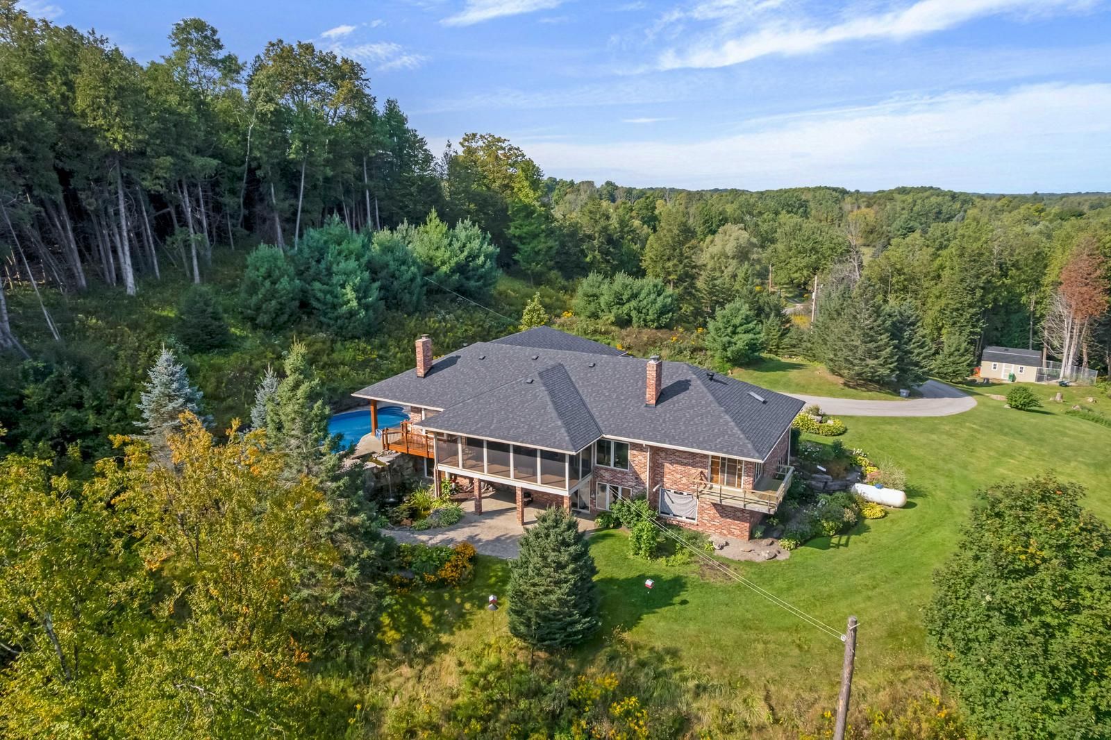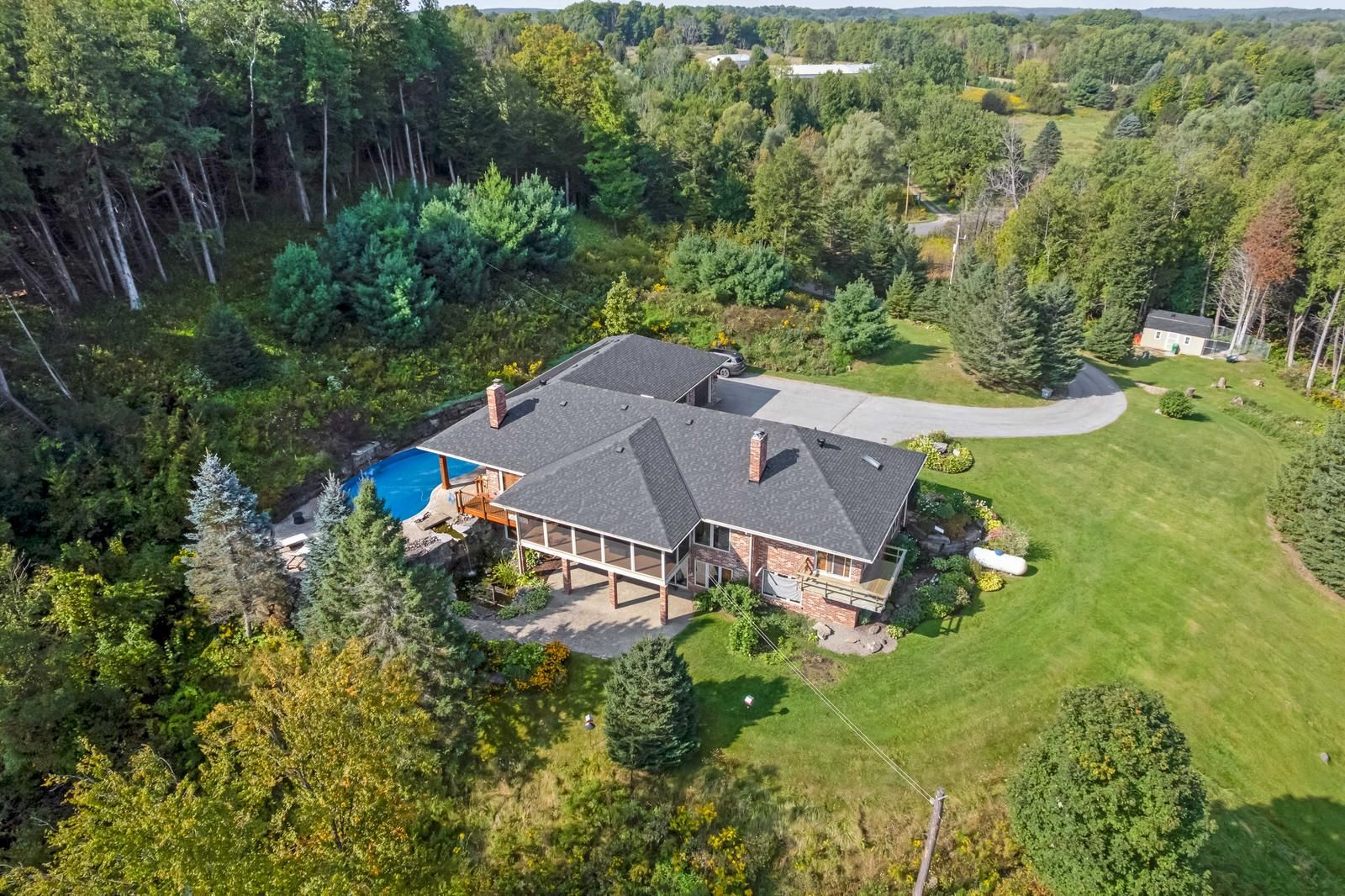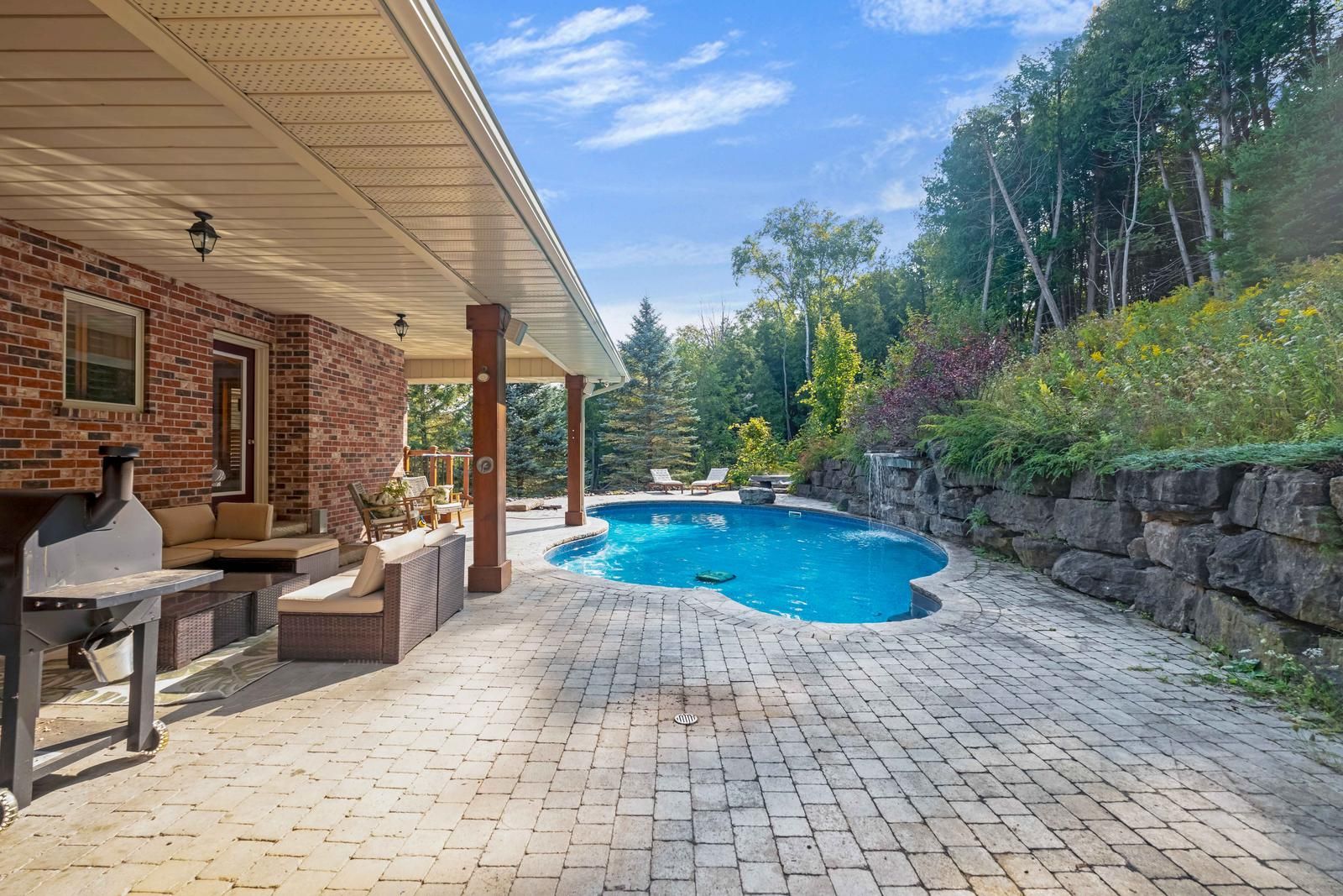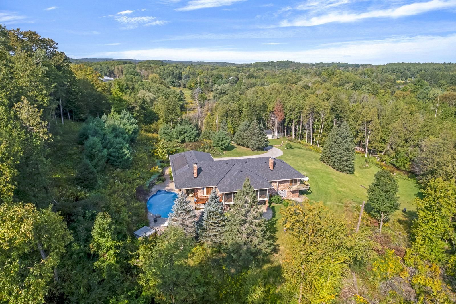 Welcome to 17397 humber station road, a private retreat surrounded by nature experience the rare opportunity to own a fully updated bungalow set on a breathtaking 24 acre estate, where privacy, serenity, and natural beauty come together in perfect harmony. Thoughtfully designed for both everyday living and exceptional entertaining, this elegant home offers a spacious open-concept layout, a luxurious main floor primary suite, and a walkout to an expansive screened porch, perfect for peaceful evenings immersed in nature. At the heart of the home, the oversized chef's kitchen is a culinary showpiece, featuring premium appliances and ample space to prepare and enjoy meals with family and friends. Rich hardwood flooring flows throughout, complemented by vaulted ceilings with exposed wood beams, multiple fireplaces, and timeless architectural details that create a warm and inviting atmosphere. The fully finished walkout basement opens to a stunning backyard oasis, complete with a spectacular in-ground pool, cascading waterfall, and a large hot tub... Your own private paradise. With four spacious bedrooms and countless upgrades throughout, this exceptional property offers a lifestyle of luxury and tranquility. This is more than a home, it's an escape.