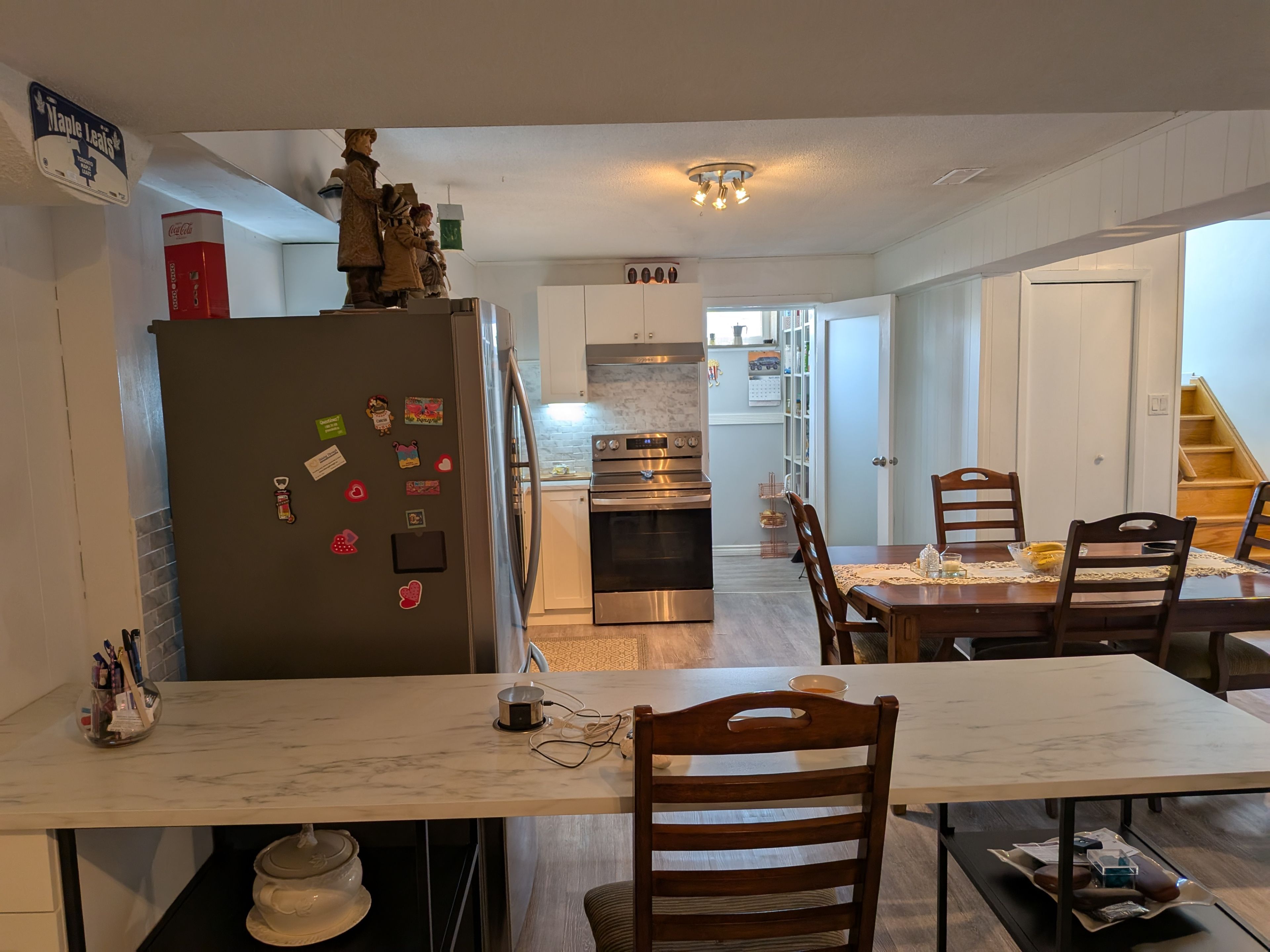 Welcome to your finished 5-bedroom semi-detached backsplit, perfect for large families or those kids who want their own space. Once you enter the home, take the stairs to either your finished basement or up to a bright ceramics hallway and double closet, which leads to the large eat-in kitchen. The upper level, second floor has 3 bedrooms and a large bathroom. The main living room has a large picture window and an entrance to your balcony to enjoy the summer nights. The dining room combines with the living room and has hardwood floors. The dining room accesses the main floor kitchen with a large entrance connecting the 2, the small stair case leads down to the lower level family room with a working fireplace ,side entrance and double closets.. There is also a bedroom and a bathroom to make it a great place for guests or the family get togethers. The family room leads to the insulated sunroom, . The sunroom has 2 entrances, plus a separate entrance that leads to the sub-basement apartment. From the lower level family room also leads your way down the back staircase to your finished large family room with a non-working fireplace, but ready for an insert. The family room combines with a large eat-in kitchen with breakfast counter and a butler's pantry with shelving, convenient counters for appliances and storage, and a window for natural light. Vinyl flooring keeps the room cozy and warm, . The flooring continues down to the sub basement apartment, here you find a laundry room with laundry tub, a furnace room with high high-efficiency furnace and humidifier. The large bedroom has a window, a closet, and an ensuite. Perfect little apartment with its own entrance. The ravine backyard has a shed and is ready for a pool, playground, or garden. There are not many homes on the ravine so take advantage of the opportunity. Thanks for showing.