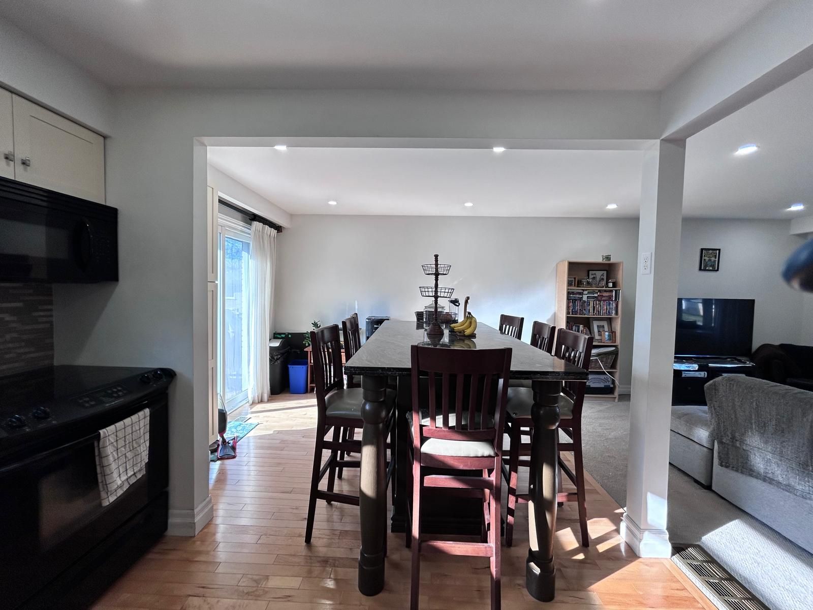 Absolutely gorgeous 3 bedroom 1 bathroom house. Walking distance to schools and parks. Large fully fenced backyard, walk out to oversized deck. Landscaping done on the backyard. Deck is for tenant's use and the backyard is shared with 1 tenant below. Open concept kitchen with granite countertops and huge built-in island with chairs. 3 bedrooms and full bathroom upstairs. Garage for storage and 3 parking spaces on the driveway (possibility for extra if needed). Basement is not included. Tenant responsible for 70% of utilities.