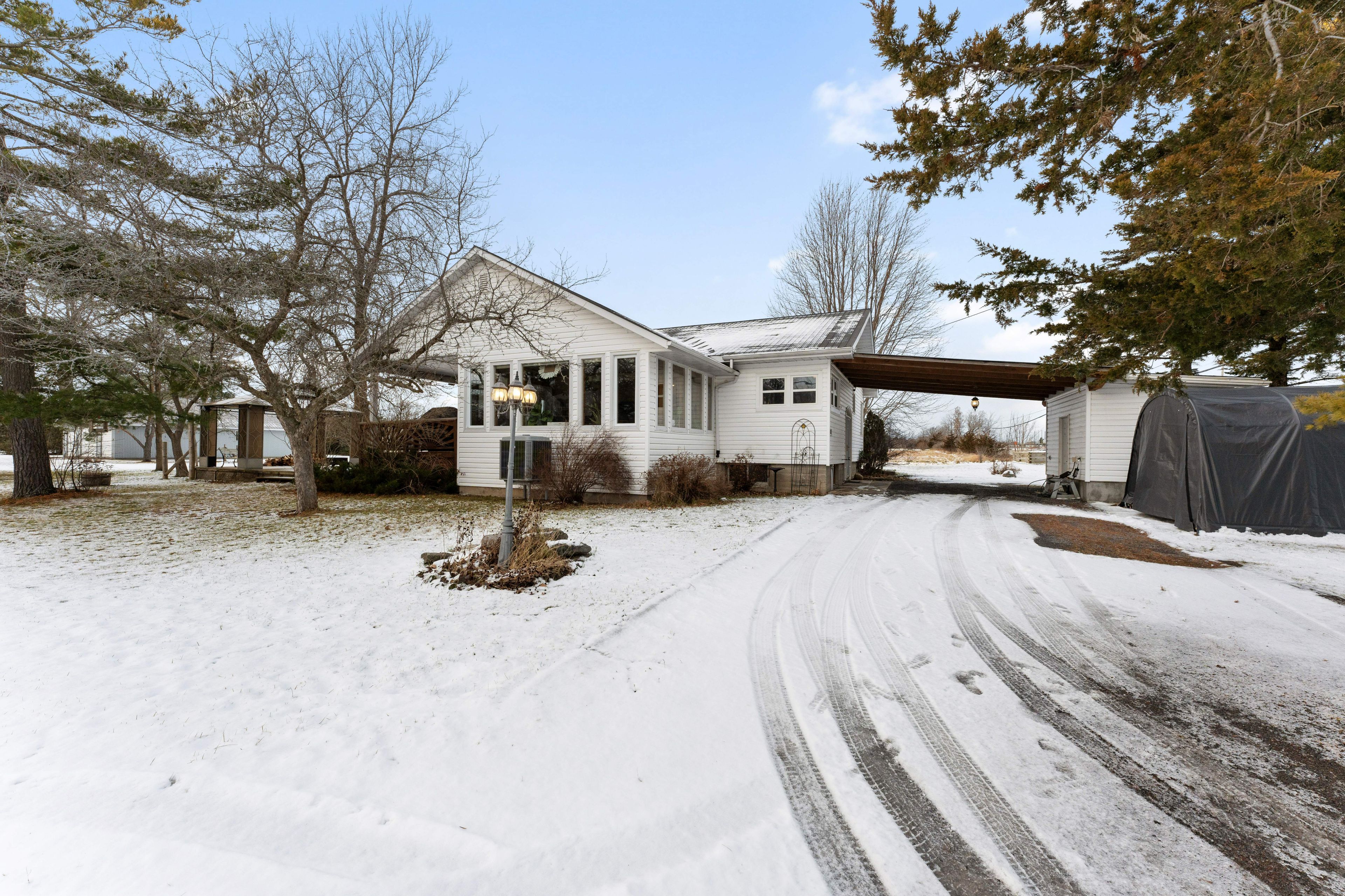 Nestled on a picturesque one acre lot just outside the charming village of bath, ontario, this exceptional 3 bedroom, 1. 5 bathroom home is a blend of history, comfort, and modern updates. A true testament to craftsmanship, the home boasts original woodwork trim, lovingly milled from trees on the property, infusing warmth and character into every room. Inside, you will find updated flooring and perfectly selected wall colours that enhance the inviting ambiance. The finished basement provides additional living space, ideal for a family room or home office. Cozy evenings await by the stunning fieldstone chimney, a focal point of the living area. The exterior is just as impressive, featuring a durable steel roof and updated windows for energy efficiency. Enjoy the seasons on the expansive covered porch or entertain on the large deck overlooking the lush property. With new heat pumps providing efficient heating and cooling, comfort is guaranteed year round. Practicality meets charm with ample parking, a handy shed, and the peaceful setting just minutes from lake ontario. This home offers the perfect retreat while keeping you connected to the quaint amenities of bath. Don't miss the opportunity to own a piece of this beautiful area!