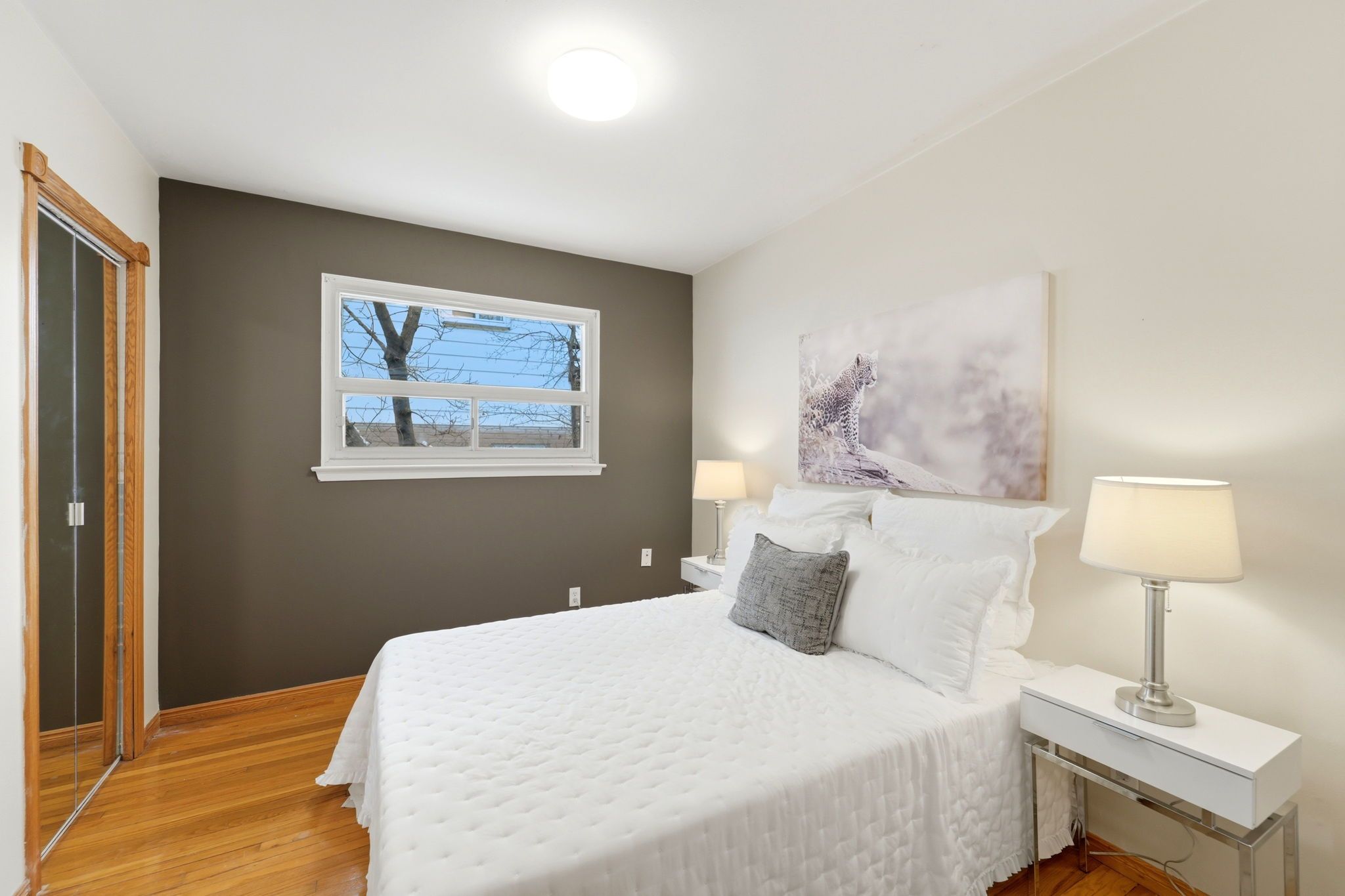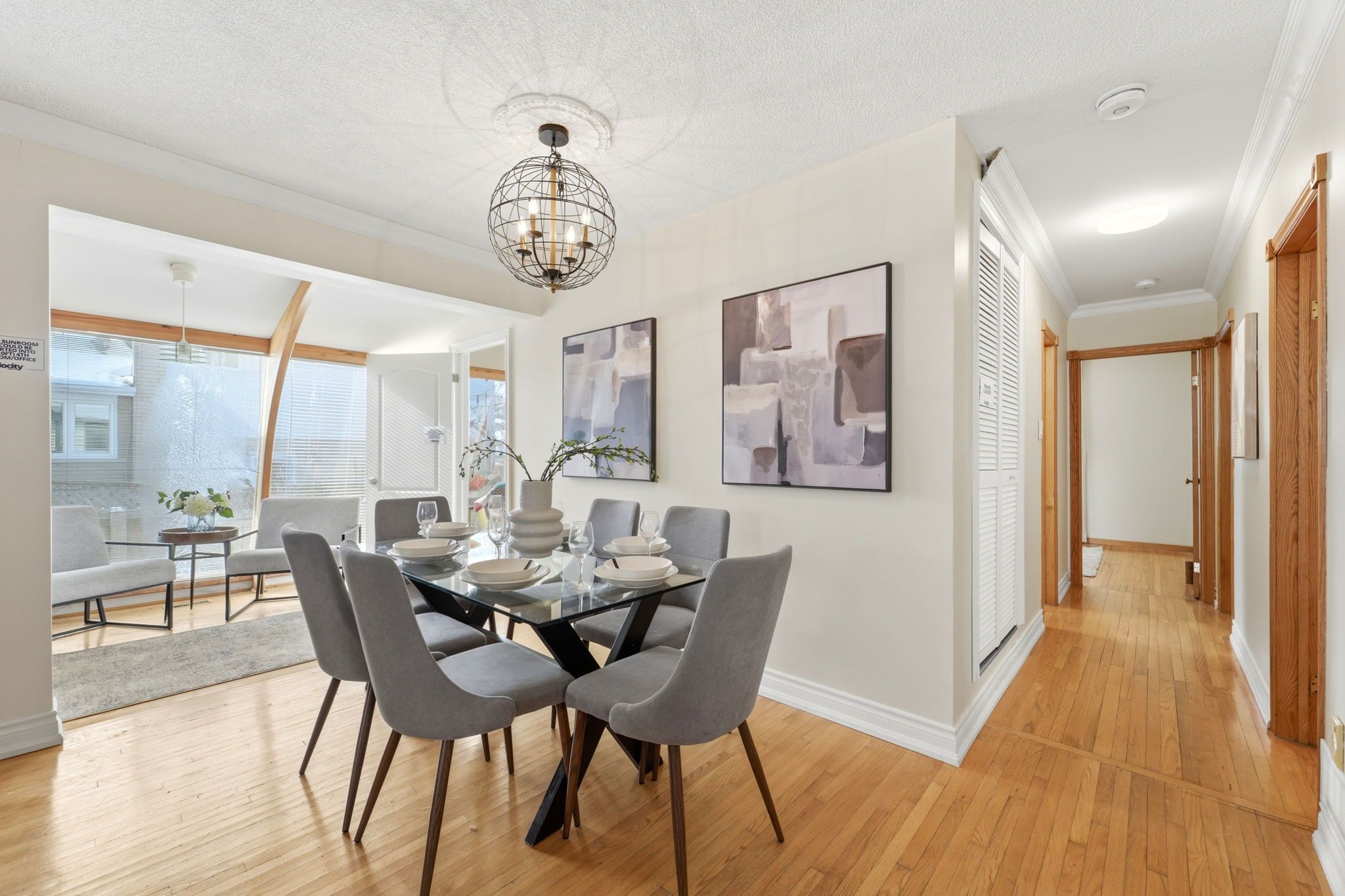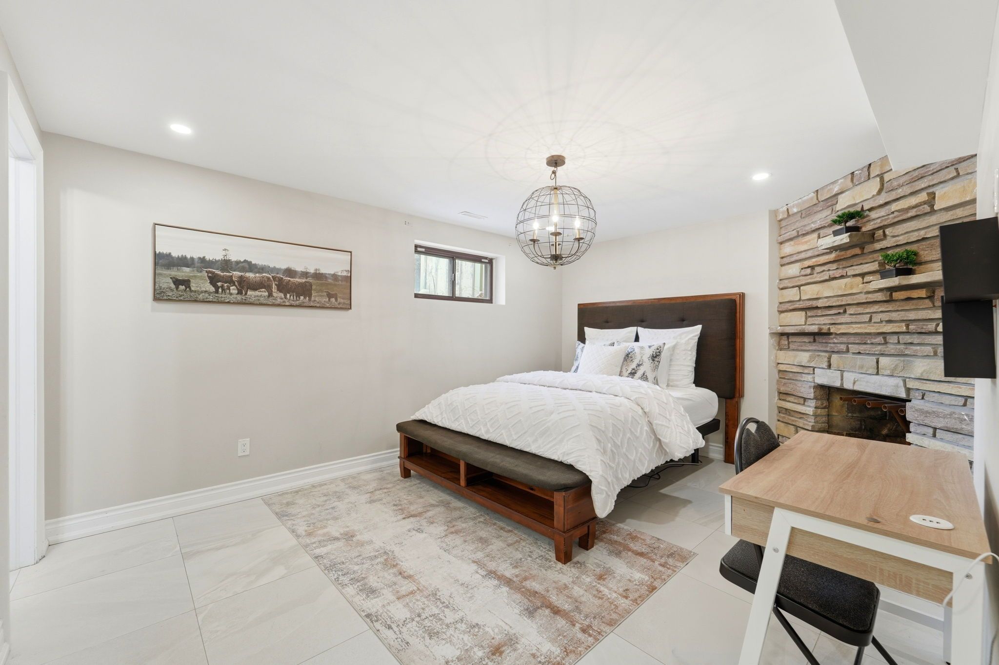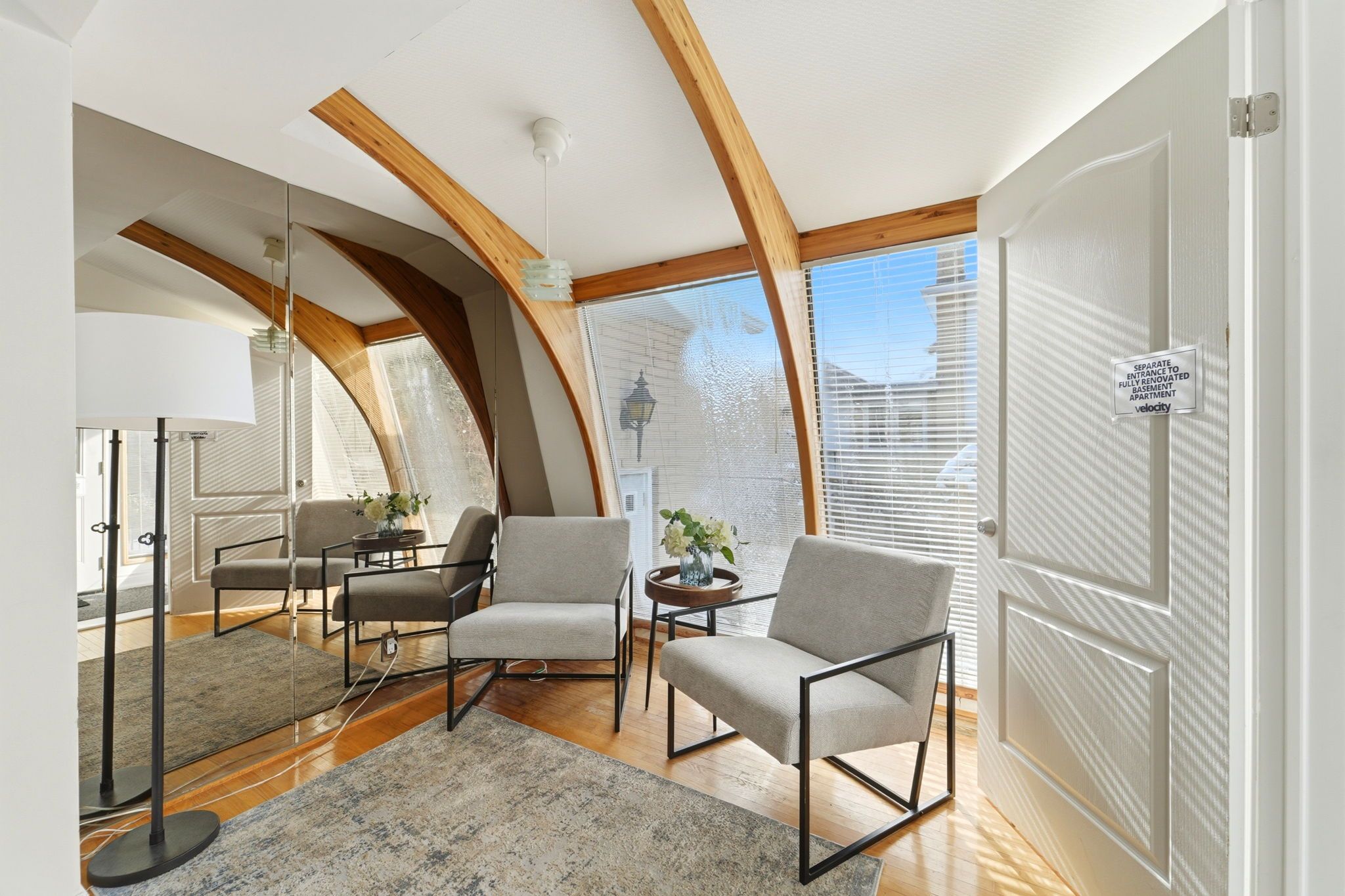 • Bright sunroom with large south-facing windows, great for an office or relaxation.