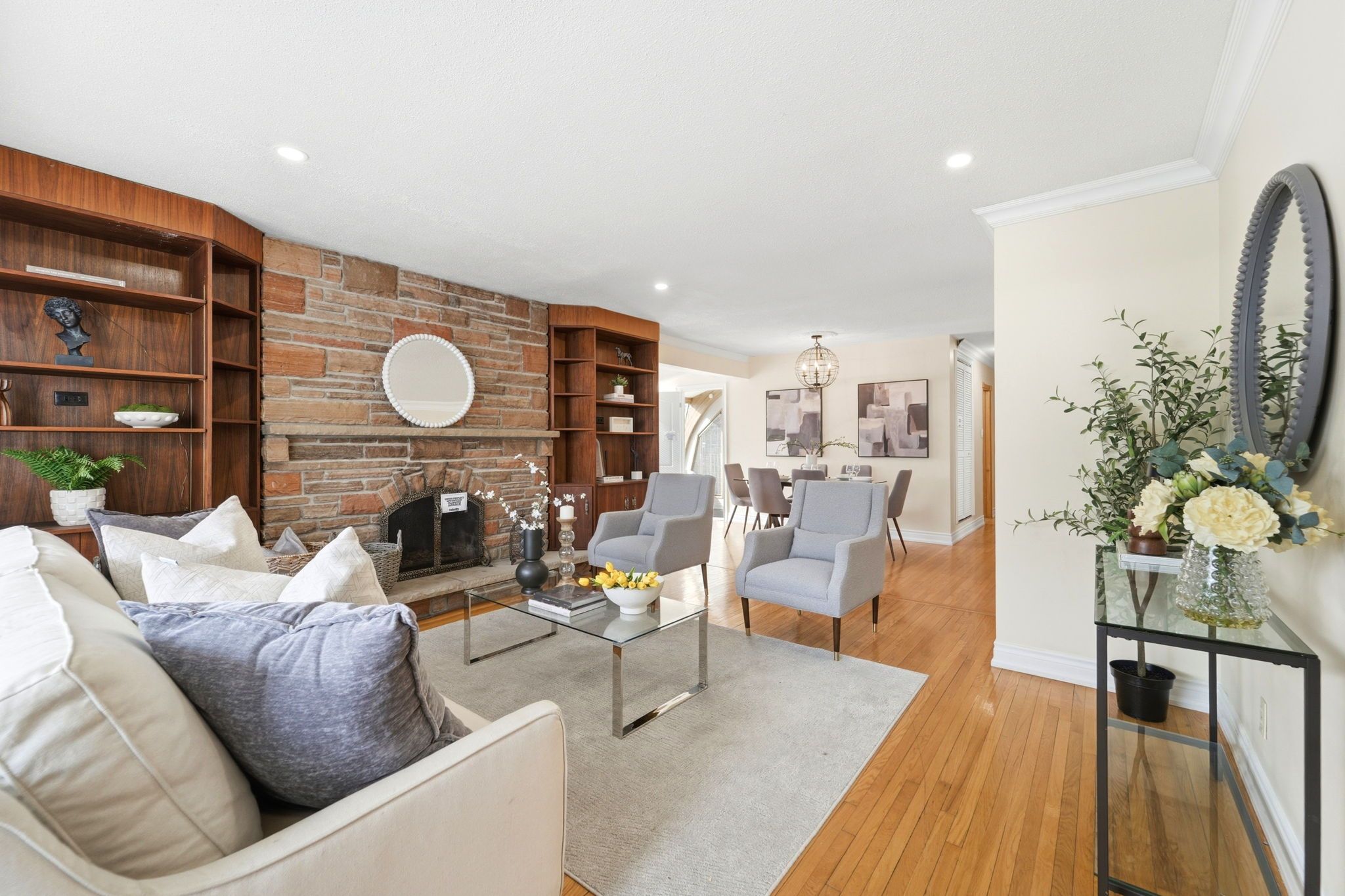 Well-maintained 3-bedroom detached bungalow with a newly renovated 3 bedroom, 2 bath basement apartment and separate entrance. Ideal opportunity to live upstairs and rent the basement for strong cash flow, or rent both units and carry a positive cashflow. The main floor features hardwood flooring throughout, a rare sunroom with large south-facing windows, perfect as a home office or additional living space. Enormous family room with a wood-burning stone fireplace. The kitchen is well maintained, full of character, and includes a bonus eat-in area. Home faces east, providing great natural light. The fully renovated basement apartment offers large windows, 3 full bedrooms with egress-style windows, 2 full bathrooms, walk-in closets, additional fireplace, an updated kitchen, laminate flooring, and a dedicated laundry area. Furnace & a/c (2024). Step outside to a beautiful swimming pool, creating the perfect summer backyard oasis, surrounded by mature trees for privacy. Patio stones throughout the front, side, and rear, offering low-maintenance living. Located in a desirable, quiet neighborhood, minutes from lake ontario, surrounded by young families and long-time residents. Enlarged driveway accommodates multiple vehicles plus a single-car garage with extended height, ideal for larger suvs. A rare combination of lifestyle, income potential, and location.