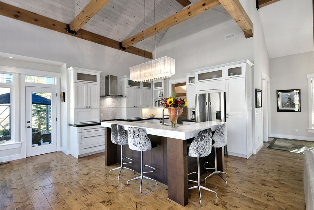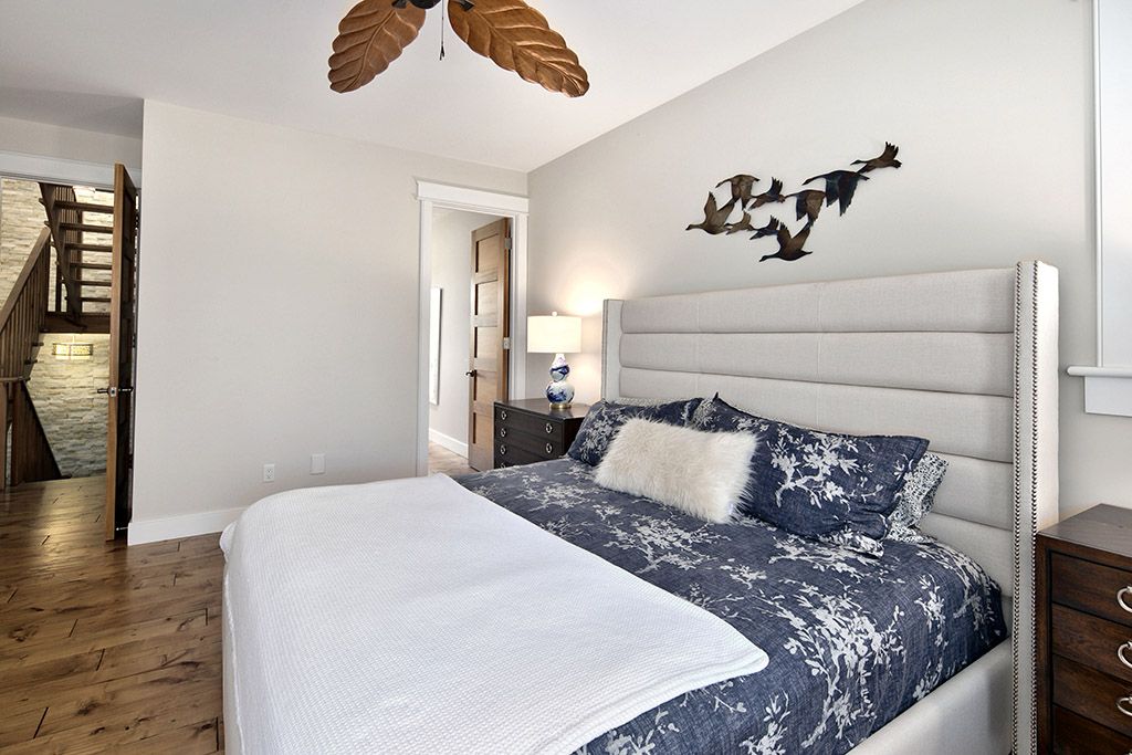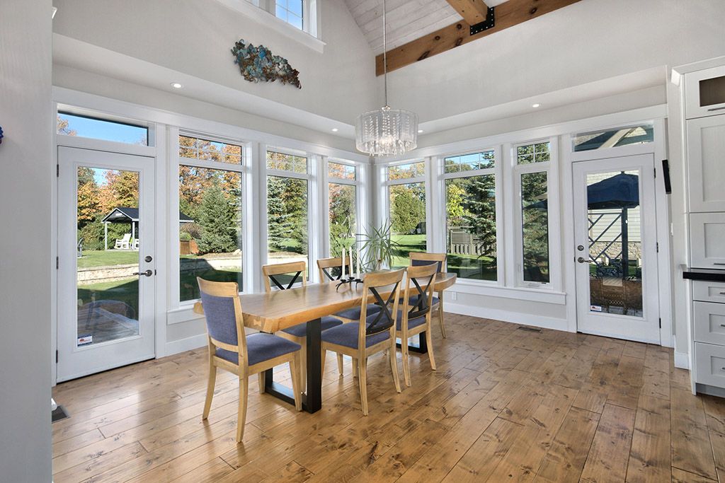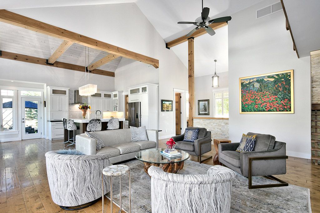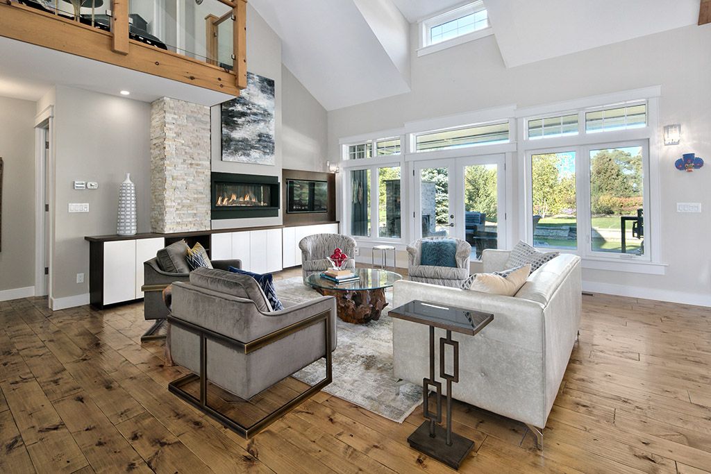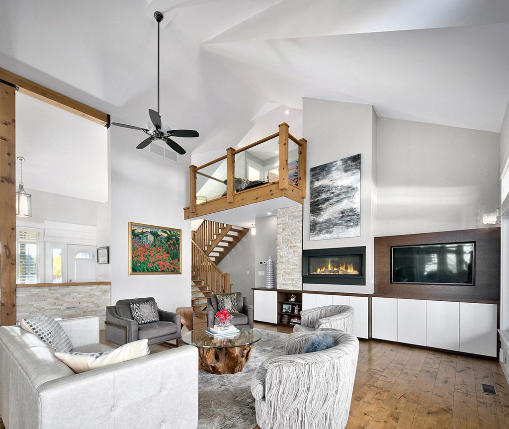 Welcome to 174 high bluff lane in the sought-after trailwoods neighbourhood on the edge of thornbury. This unique custom-built bungalow with loft blends contemporary style with rustic accents and offers over 3,600 sq. Ft. Of finished living space backing onto a protected ravine. From the moment you enter, you'll appreciate the craftsmanship and thoughtful details: 7" alder plank flooring, soaring vaulted ceilings, post and beam accents, shaker trim, and a grey-washed pine ceiling over the dining and kitchen. The open-concept great room impresses with custom cabinetry around a suspended linear gas fireplace, stone feature walls, and expansive windows that frame the professionally landscaped yard with slate patios and walkways, decking, gas outdoor fireplace, fire pit, and a garden shed with running water and hydro. The chefs kitchen boasts a massive waterfall island, upgraded appliances including a gas stove, custom cabinetry, under-cabinet lighting, and a walkout to the patio with a gas line for the bbq. The main floor primary retreat features a walk-in closet and a spa-inspired ensuite with glass shower, and custom built double vanity. An office, powder room, and laundry with built-ins complete the main level. Upstairs you'll find two more bedrooms, a full bath, and a loft overlooking the living space. The fully finished lower level offers two additional bedrooms, a full 3-pce bath, storage room which could easily be used as a home gym, and a spacious family room ideal for gatherings. With the georgian trail across the street, thornbury's shops, restaurants, harbour, and waterfront just a short walk or cycle away, and incredible skiing and golf just a short drive away, this property offers the perfect blend of modern luxury and four-season lifestyle.