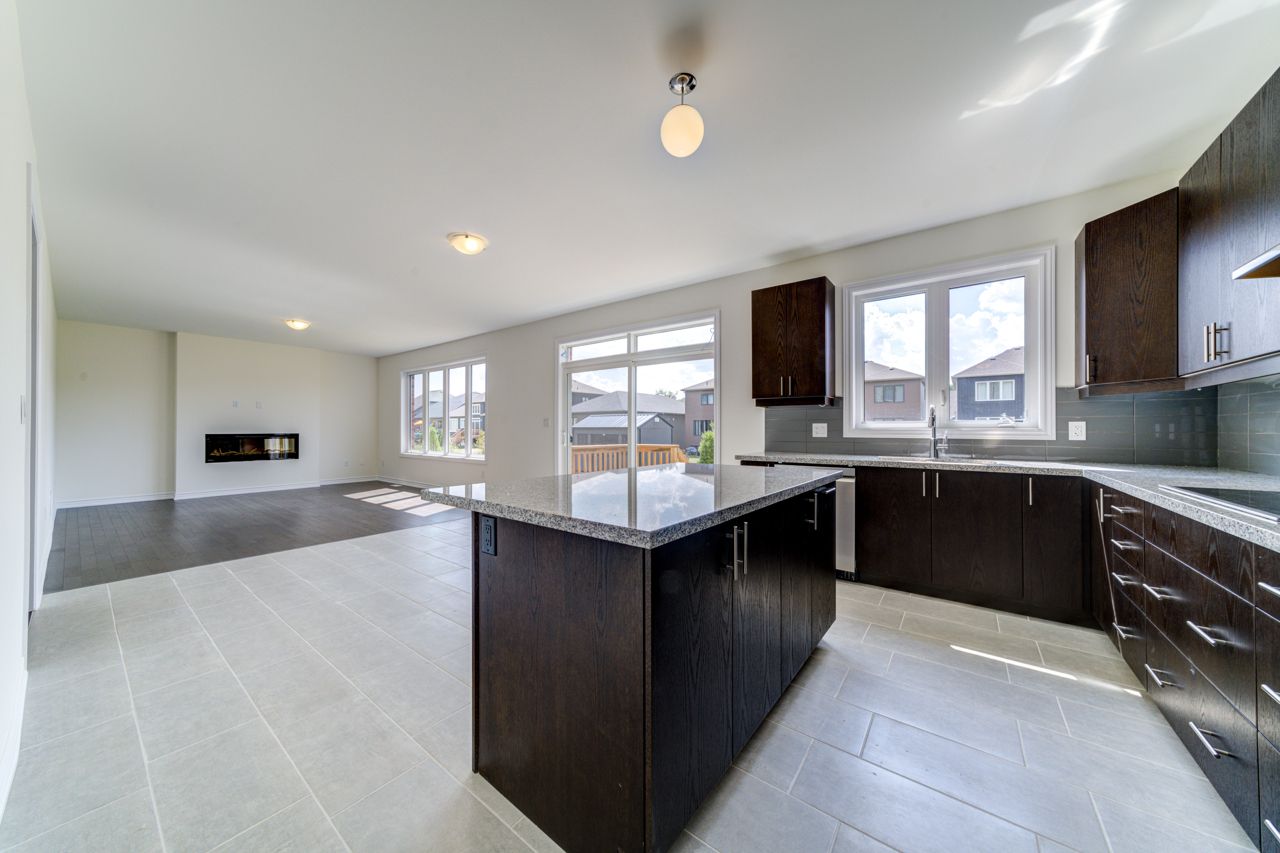 • Bright open concept kitchen with modern appliances and upgraded counters.