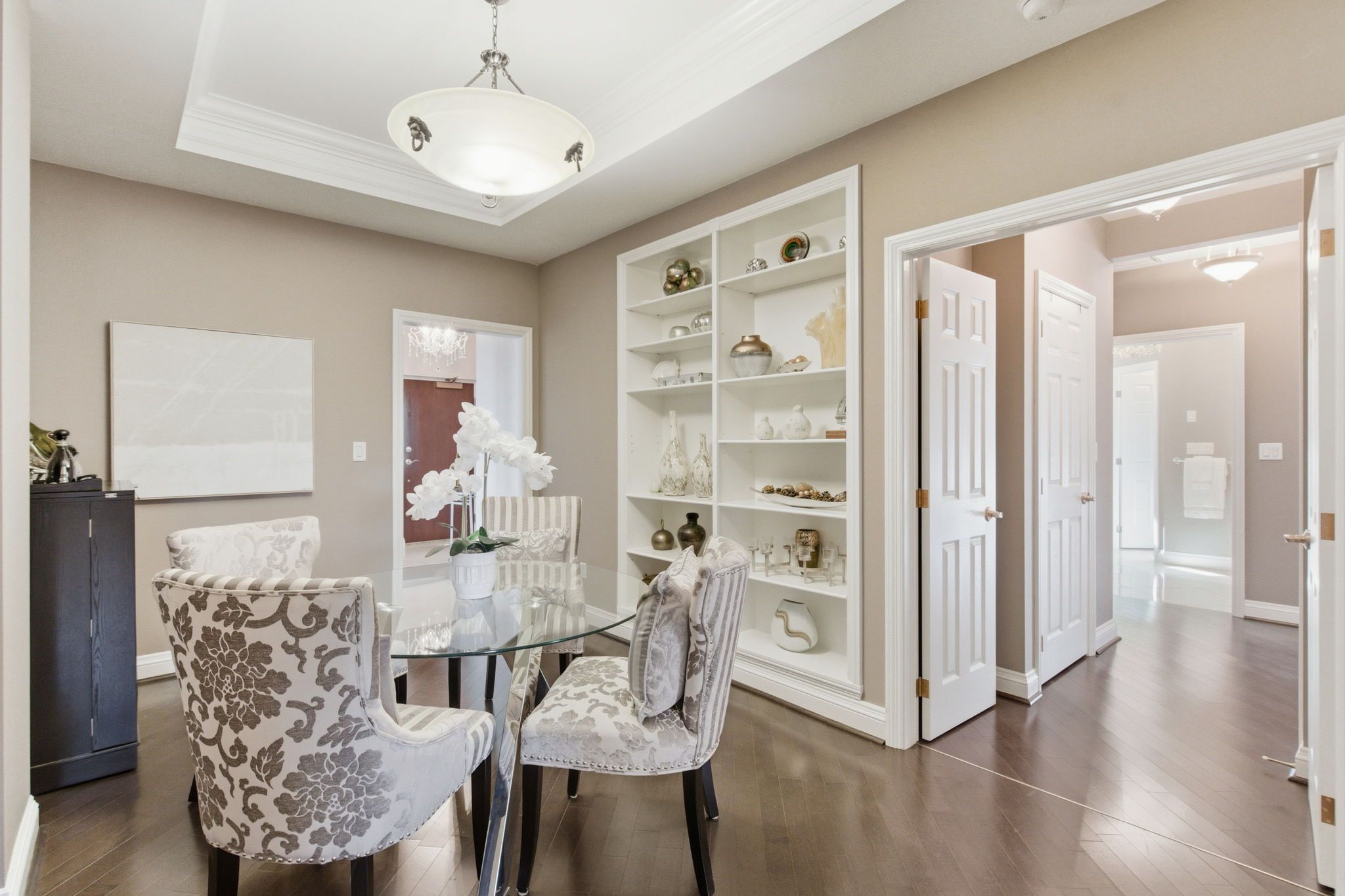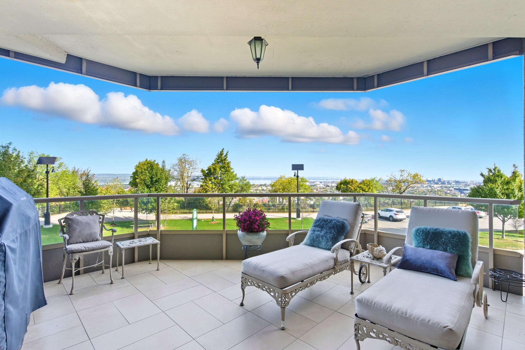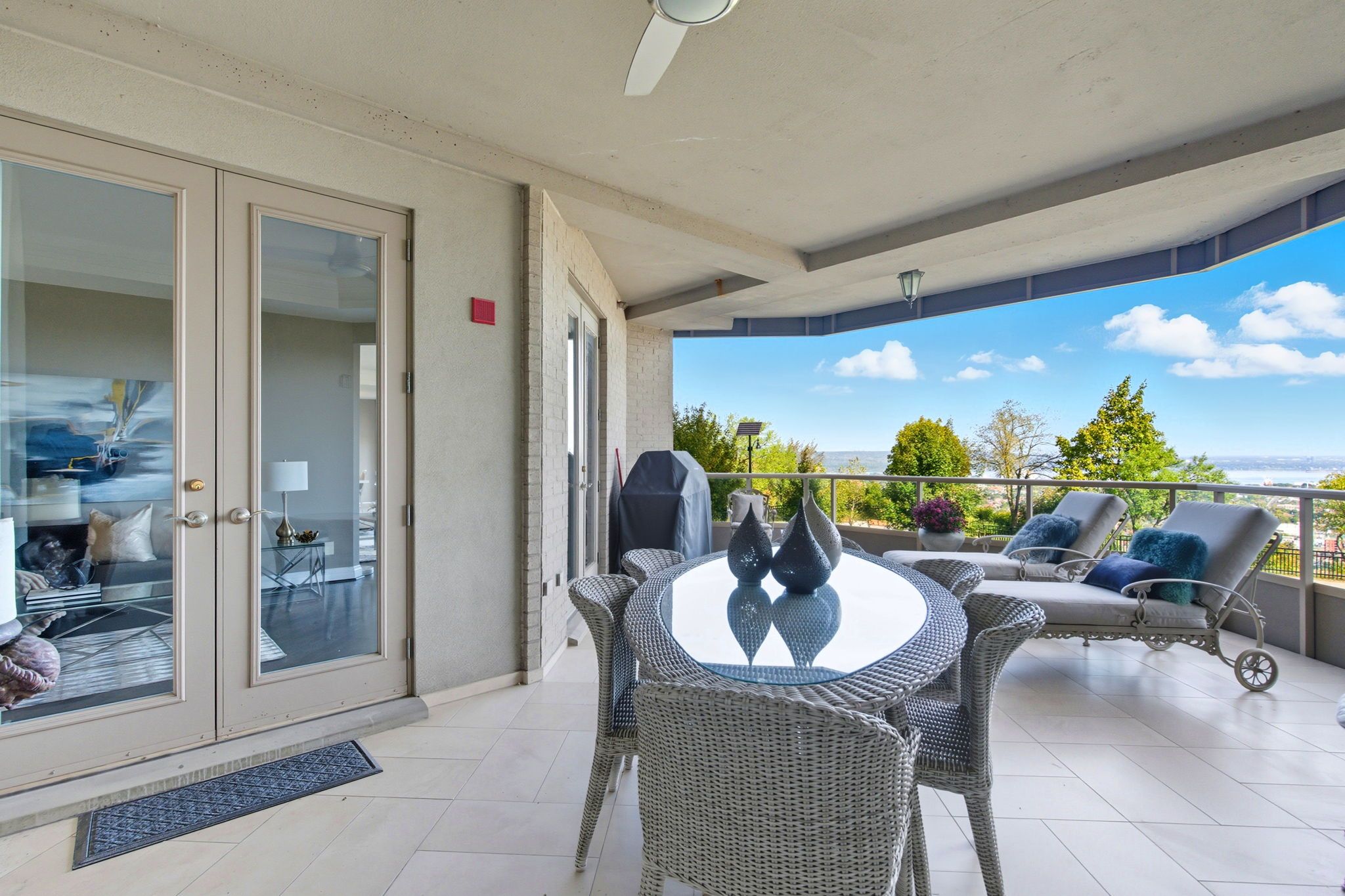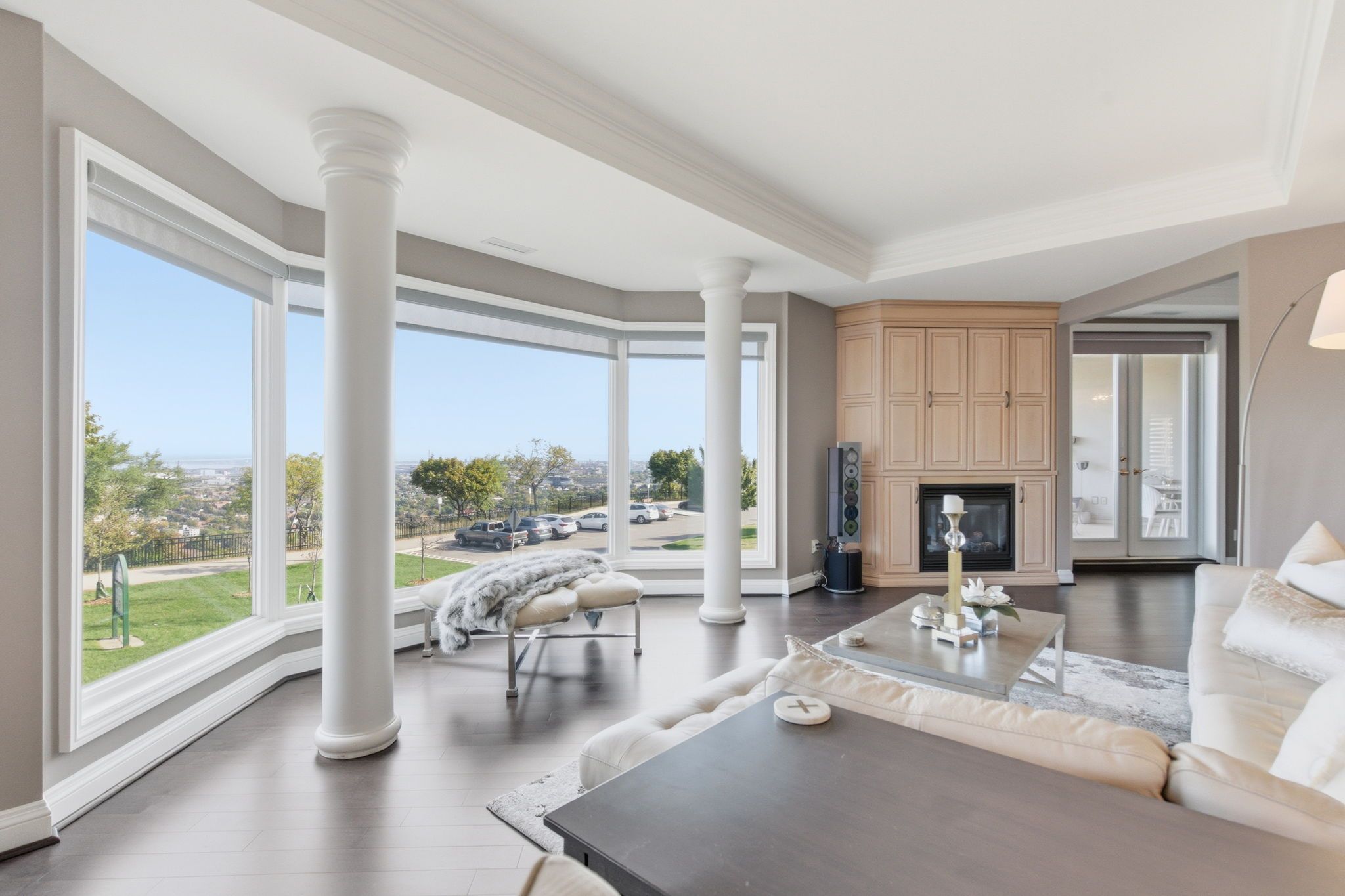 Welcome to "the madison", an exclusive boutique condominium that embodies timeless elegance and refined living. Perfectly perched along the escarpment, this residence offers a sophisticated retreat where design, comfort, and lifestyle unite in perfect harmony. This 2,400 sq ft luxury suite features 3 bedrooms, 2 bathrooms, and a private elevator opening directly into your home, creating a sense of privacy and prestige. Every detail reflects superior craftsmanship - from coffered ceilings and crown molding to hardwood floors, granite surfaces, pot lighting, and custom cabinetry throughout. The gourmet kitchen inspires culinary creativity with dual refrigerators, built-in ovens, cooktop, and dishwasher, ideal for hosting or everyday living. The expansive great room, centered around a gas fireplace, opens to a 400 sq ft terrace that invites morning coffee or evenings under the stars. The primary suite offers a serene escape with walk-in closets and a spa-like 5-piece ensuite designed for relaxation. The second bedroom features its own private balcony and walk-in closet, while the third bedroom or den offers flexibility for a home office or cozy lounge. At the madison, luxury extends beyond your door - a place where you can entertain effortlessly, unwind in style, and enjoy the ease of in-suite laundry with built-ins and a beverage fridge, two underground parking spaces, and a storage locker. Elegant, intimate, and distinctly sophisticated - the madison offers a lifestyle as exceptional as its design. Luxury certified.