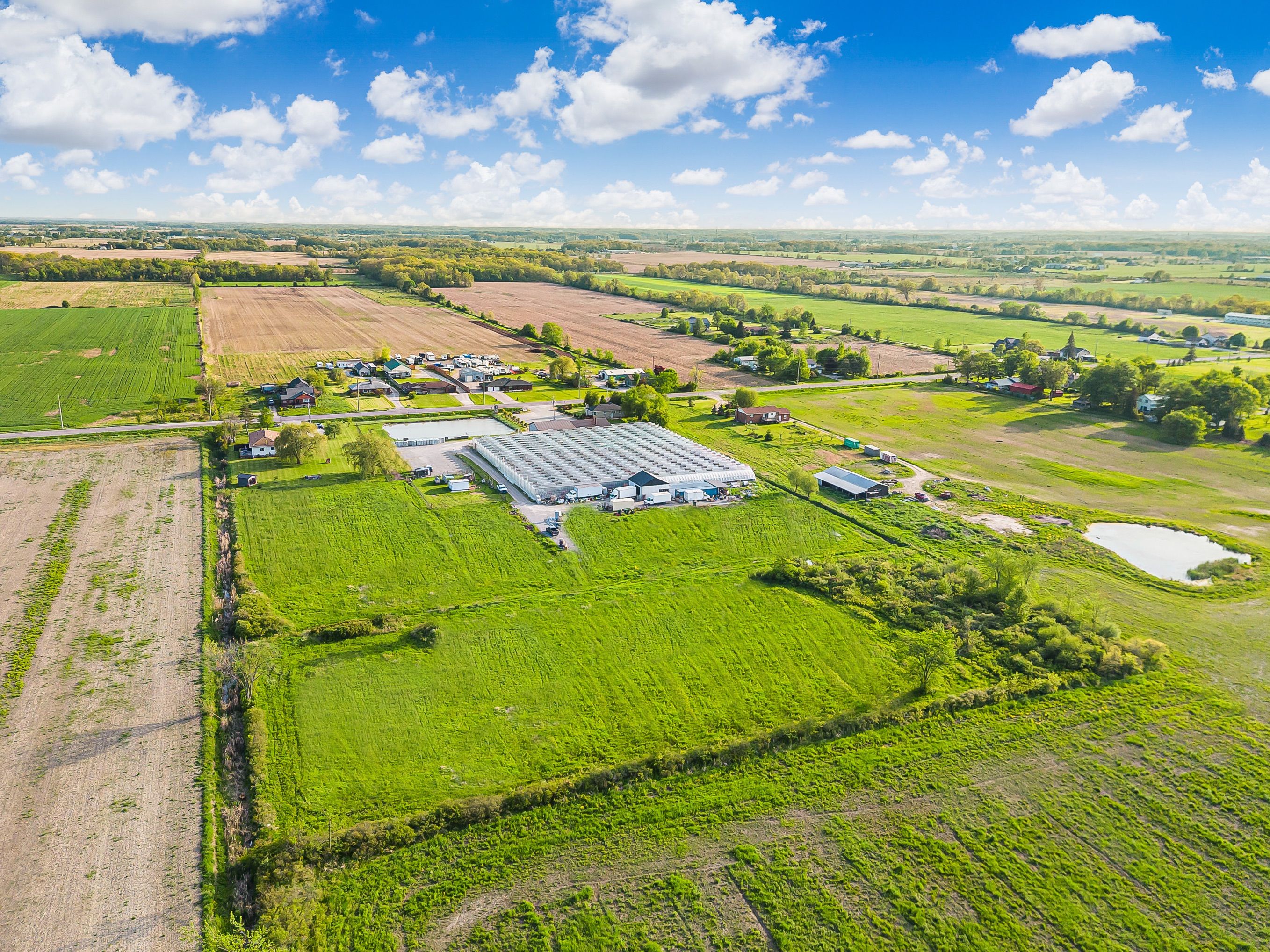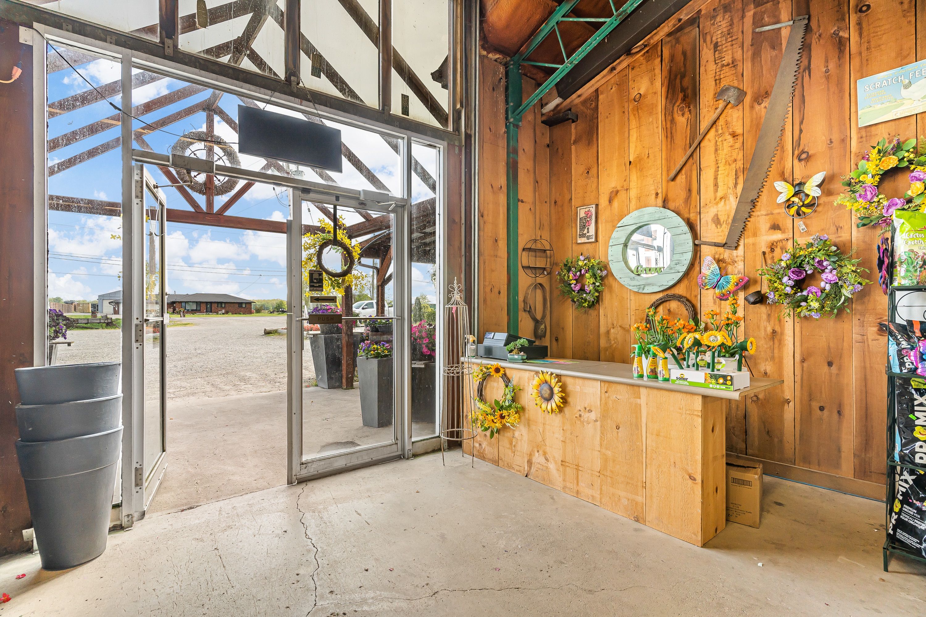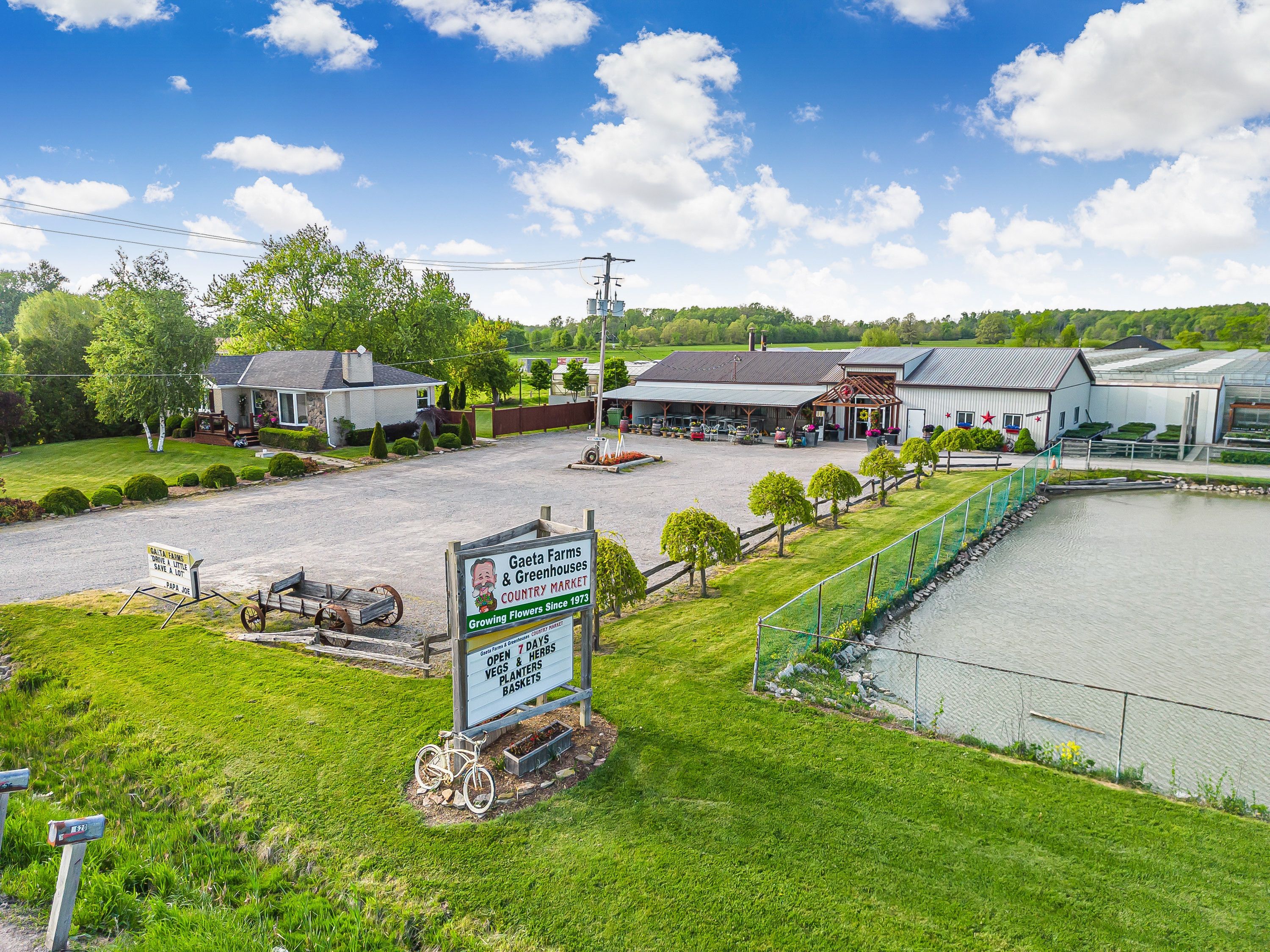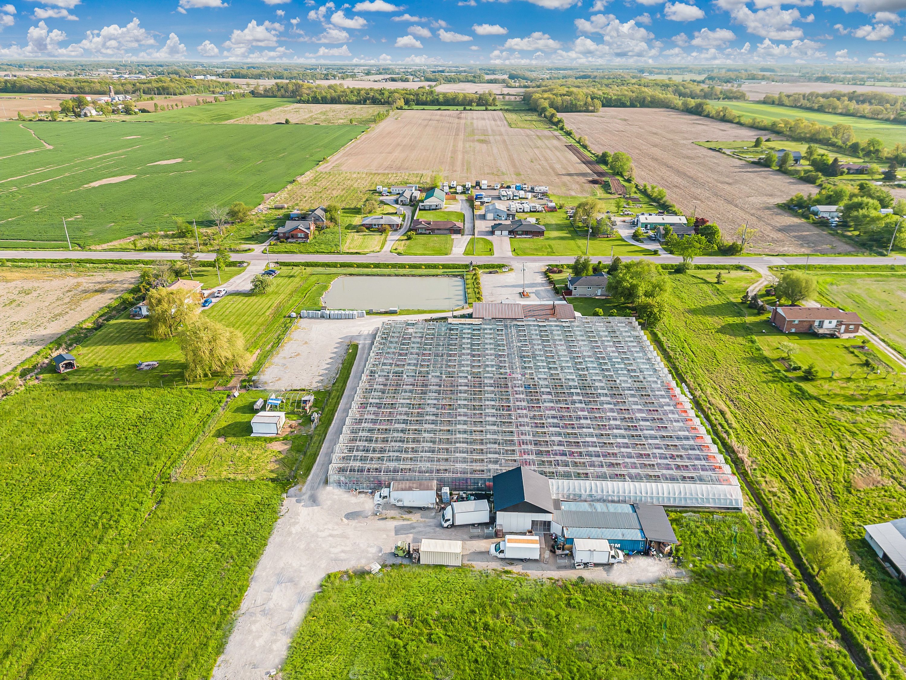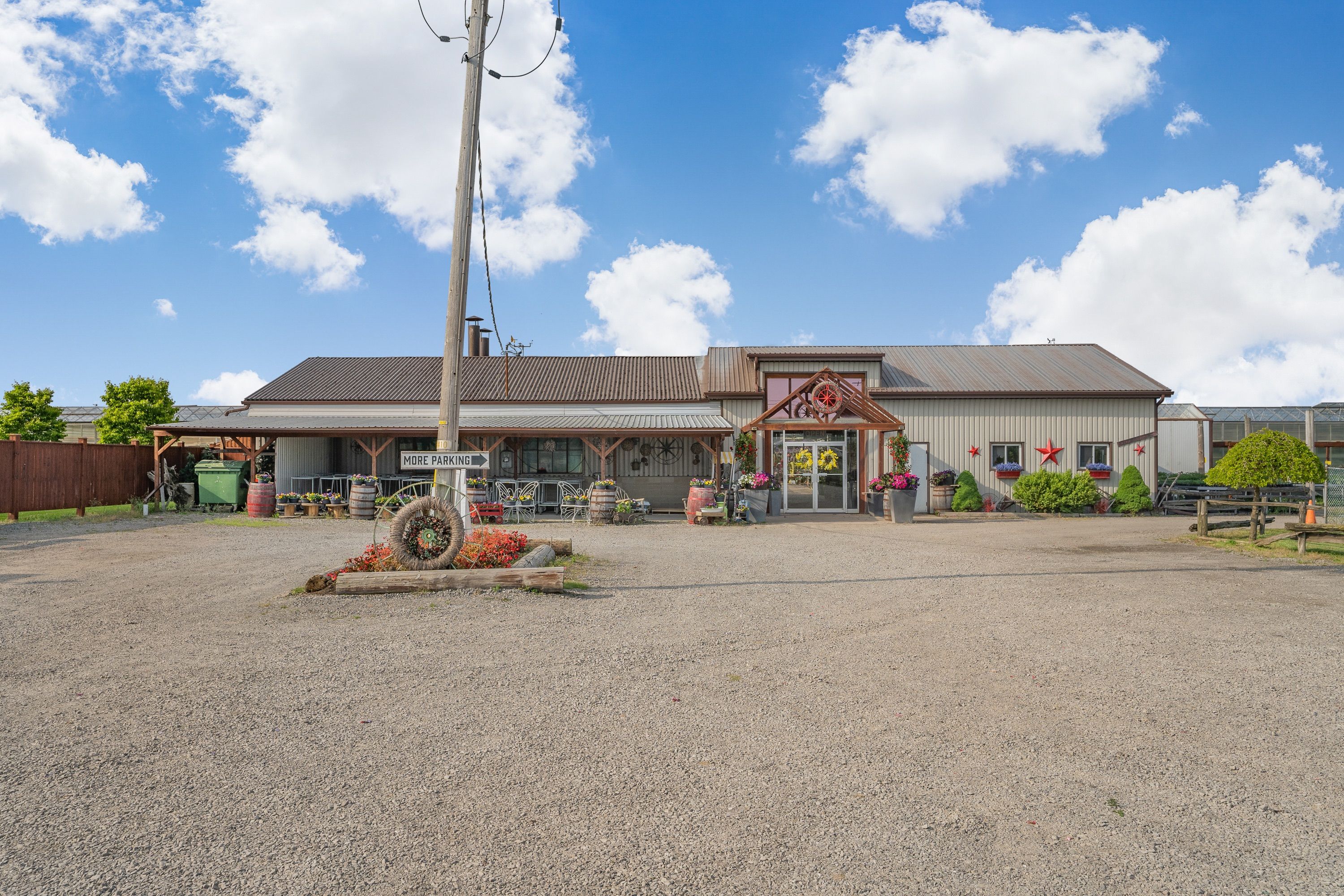 Incredible opportunity to own a versatile 9-acre property offering both residential comfort and commercial potential, ideally located just 10 minutes from the qew and close to major roads and transportation routes. Boasting 351 ft of frontage and 874 ft of depth, this property is perfectly suited for agricultural use, greenhouse operations, or a live-work setup. The charming 1,315 sq ft home features 3 bedrooms, 1 bathroom, hardwood and tile floors, an unfinished basement, new 2025 furnace & a/c, updated breaker panel, 1,800-gallon cistern, and high-speed fiber internet. A standout 54,000 sq ft glass venlo greenhouse allows for year-round growing and is equipped with natural gas furnaces and 600v 3-phase power. The 3,200 sq ft insulated barn/storefront includes office space, a lunchroom, two cashier stations, and a walk-in coolerideal for on-site sales or agricultural business. Extras include two gravel parking lots, a rear gravel loading area, a covered outdoor bench space, a 140 x 110 pond that feeds the greenhouse, two sea cans for storage, a two-bay loading area, and a 6,000 sq ft fenced chicken coopproviding extensive infrastructure to support a variety of commercial and agricultural operations.