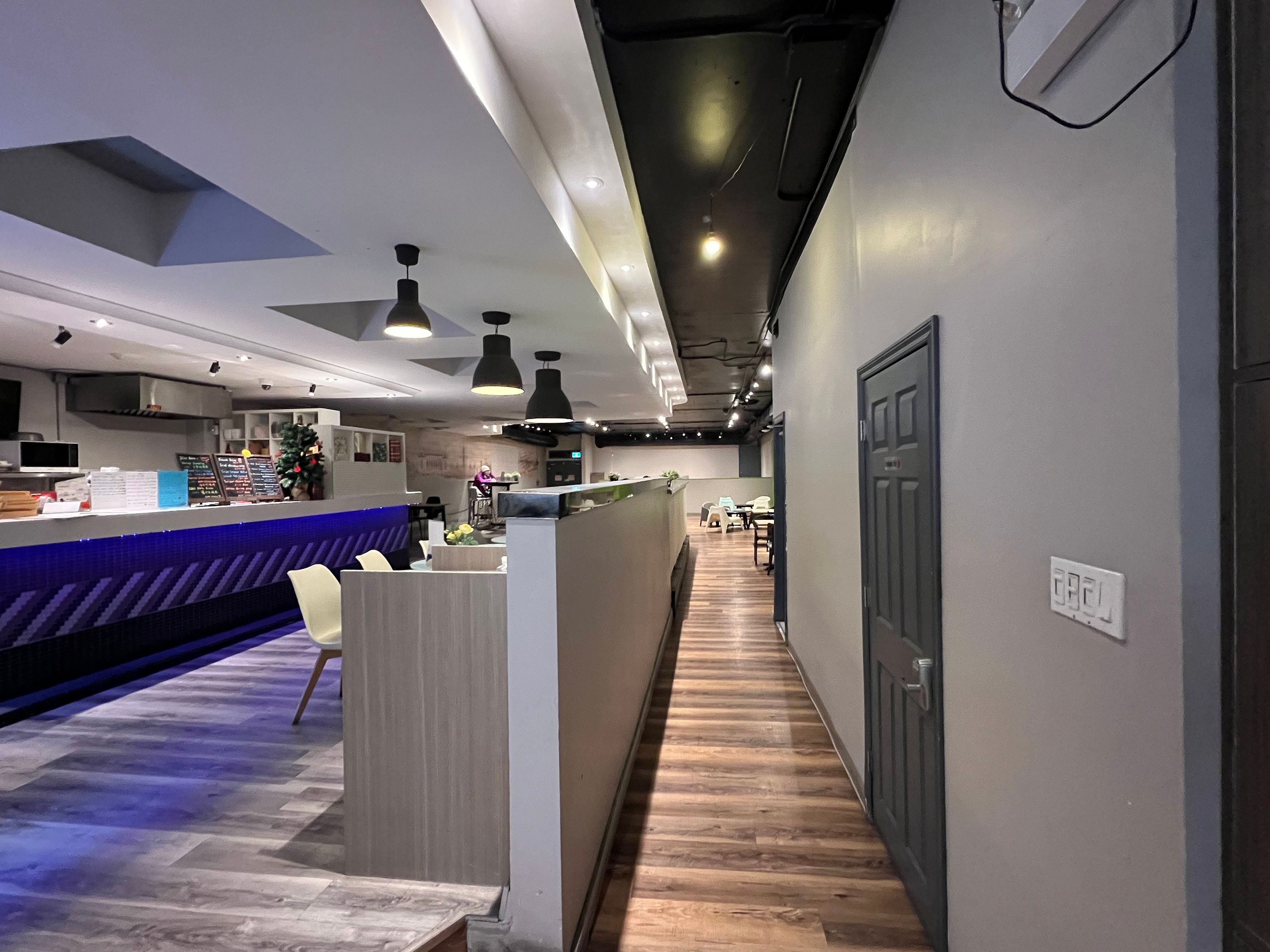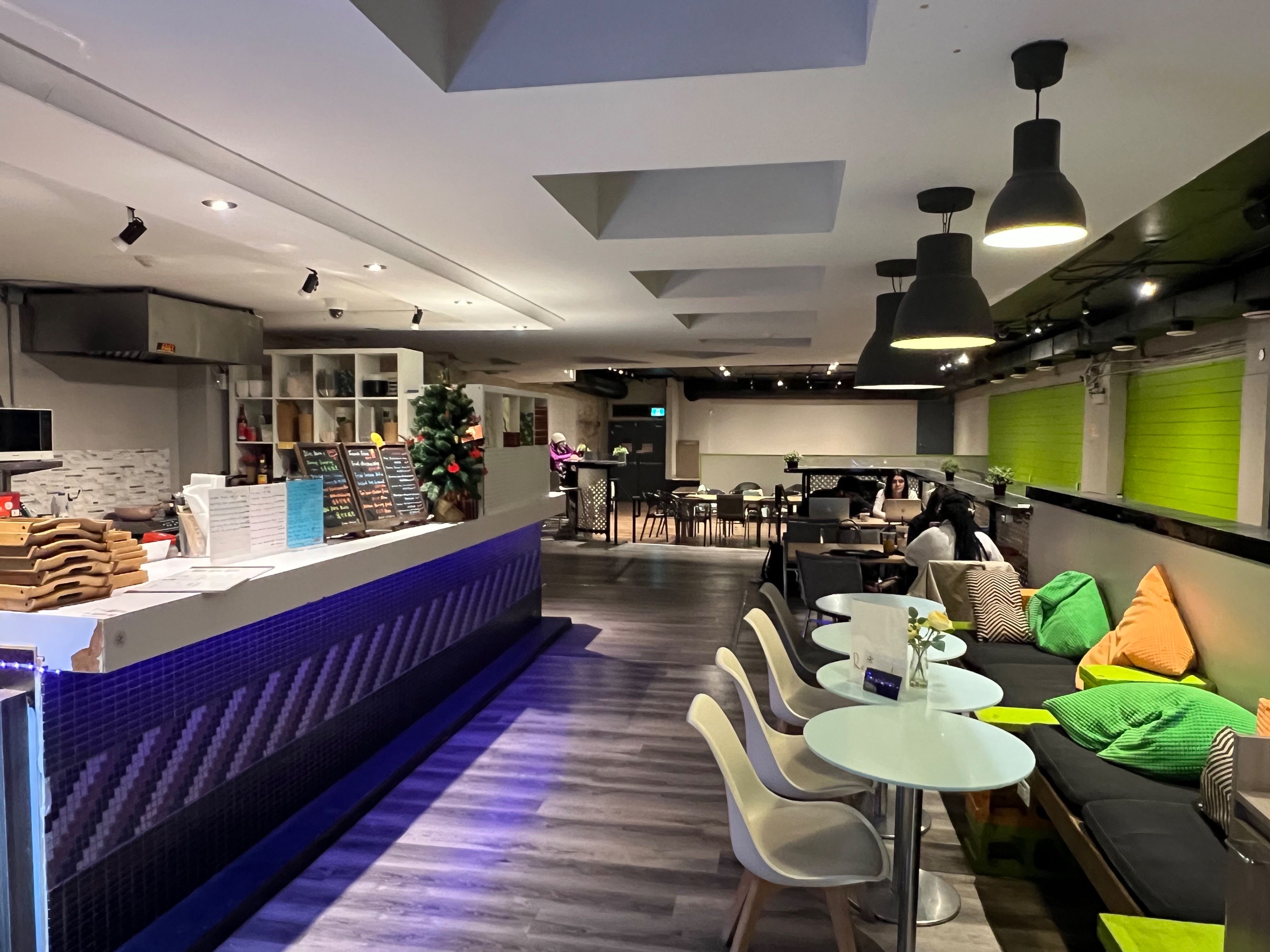 • Tastefully decorated with tables and chairs for customers.