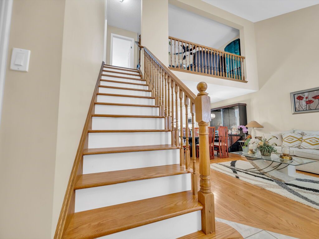 Elegance & attention to detail throughout! Over $125k in quality upgrades (2019-2020). Impeccably maintained with a grand entrance & vaulted ceiling in the living room with skylight. Open-concept dining & a stunning kitchen featuring quartz counters, under-cabinet lighting, 6. 5-ft island/breakfast bar, soft-close cabinets, pantry, ss appliances, pot lights & skylight. Walk out to a 24' x 12' interlock patio. Main floor primary bedroom with his/her closets & 4-pc ensuite. Versatile loft or family room with 2 skylights. Welcome home!!