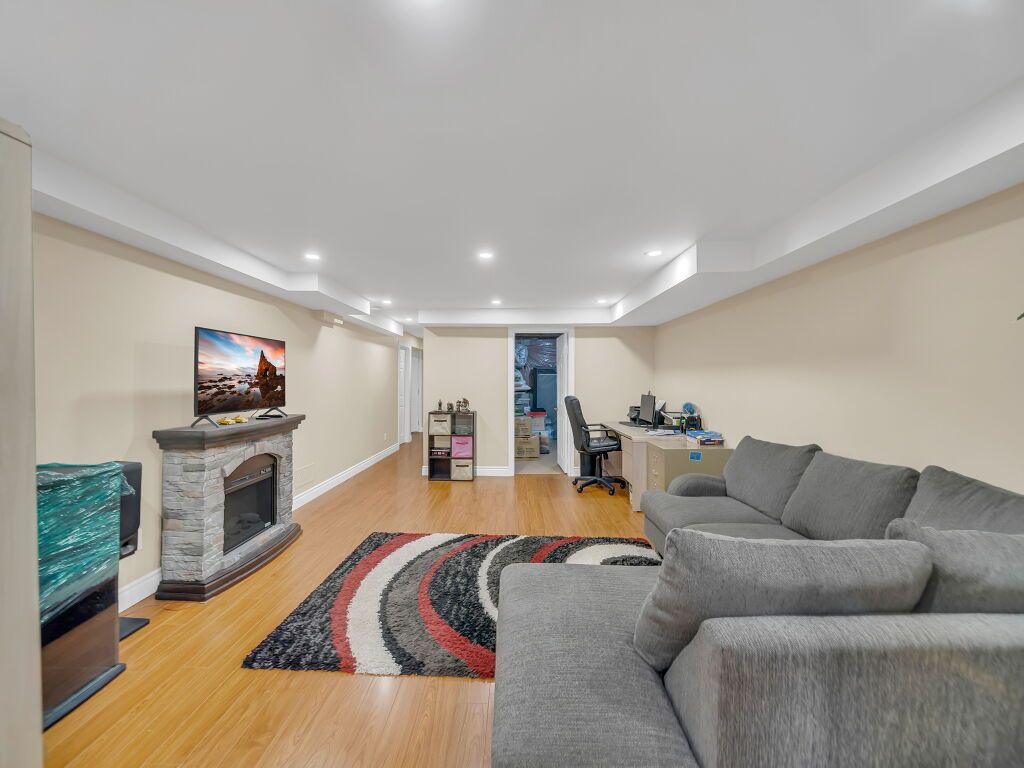 • Stunning open-concept kitchen with quartz counters and breakfast bar.