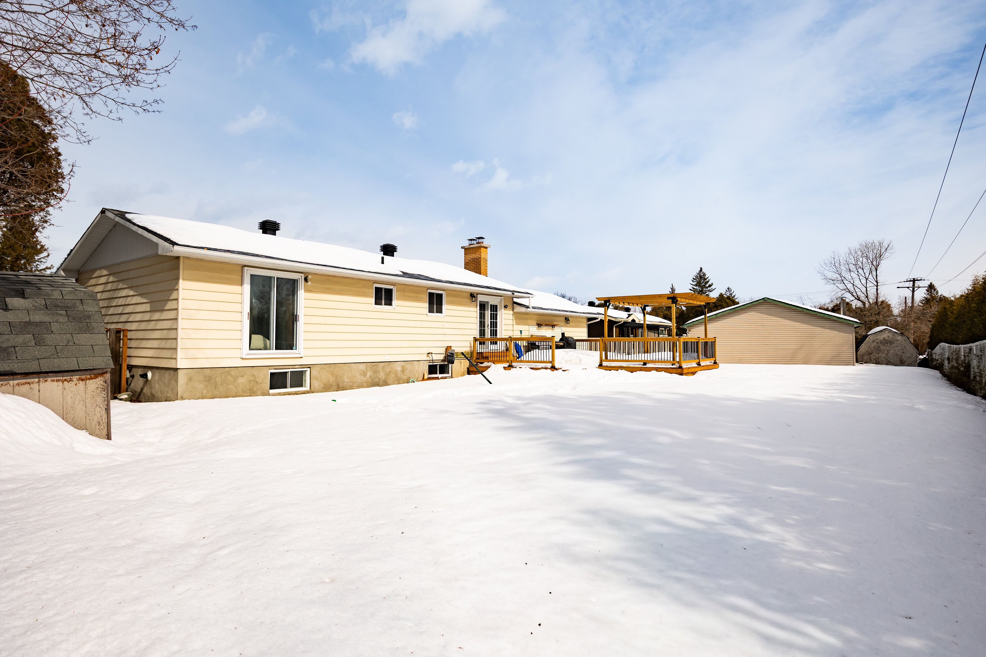 Welcome to this beautifully updated raised bungalow 3+2 bedrooms, 1-5pc & 1-3pc bathrooms. A home that blends timeless character with thoughtful modern upgrades throughout. The electrical panal was updated in 2021 and the home features pot lights throughout, new fixtures, upgraded light switches, and a ring security system with doorbells included for added peace of mind. The kitchen offers hardwood oak cabinetry with a functional island, stainless steel appliances including a gas oven/range and updated hardware. Recent flooring and subflooring throughout. Fresh paint and stunning hard maple stairs with railing add warmth and style. The fully renovated (2024) lower level features a rec room with wood stove, 2 bedrooms, and 1-3pc with laundry. Flooring, ceiling tiles, light fixtures, paint and added insulation. Step outside to your private outdoor oasis (2 sets of patio doors) a 24'x20' deck (2025) with pergola, fountain and fire pit area, perfect for entertaining or relaxing under the stars. Oversized single garage. Completely fenced yard. Absolutely a move-in ready home. Quality throughout.