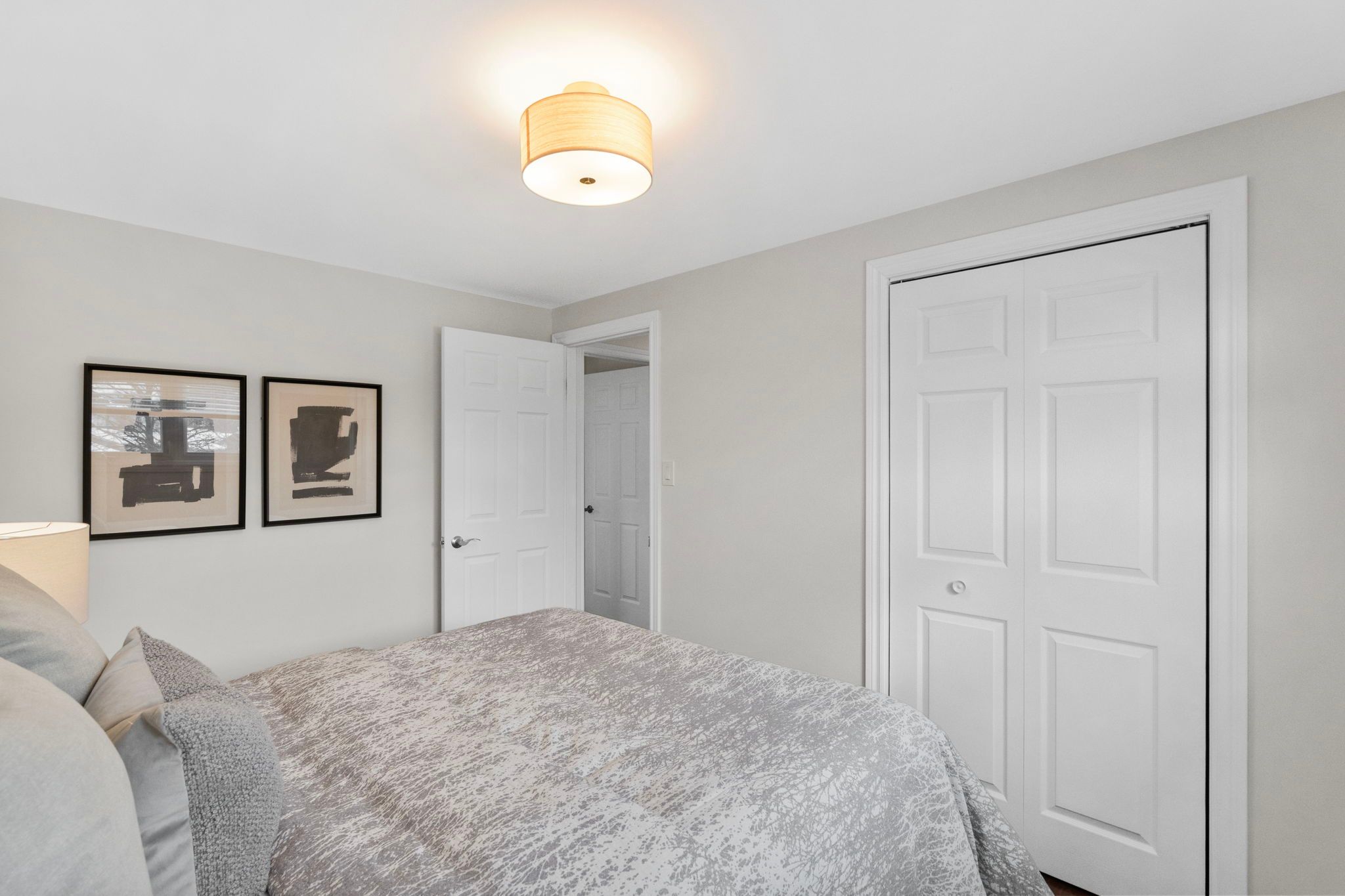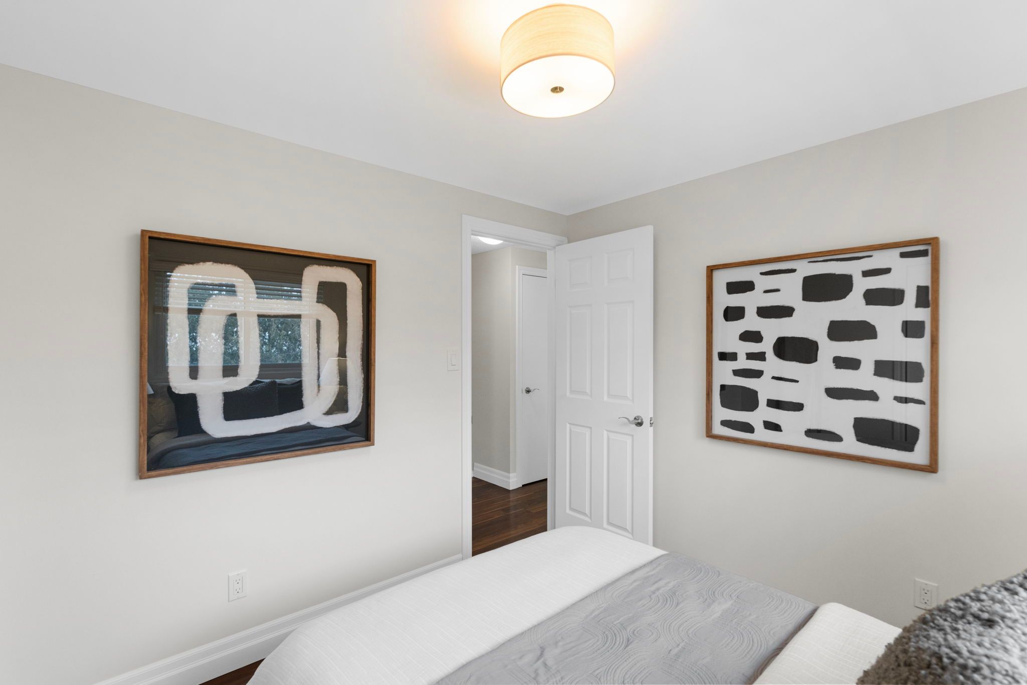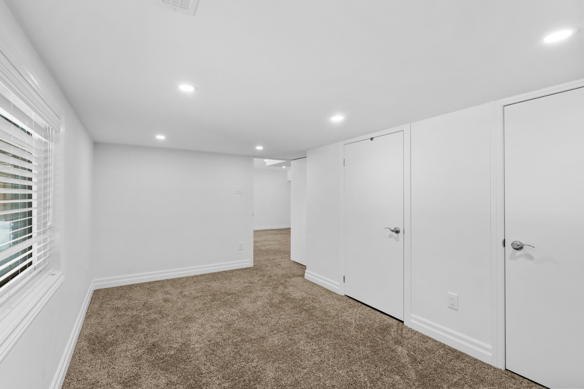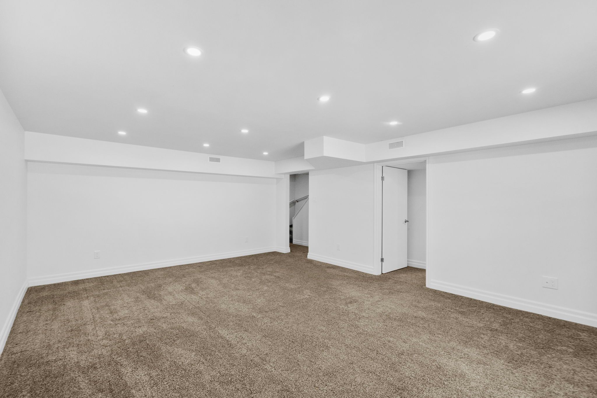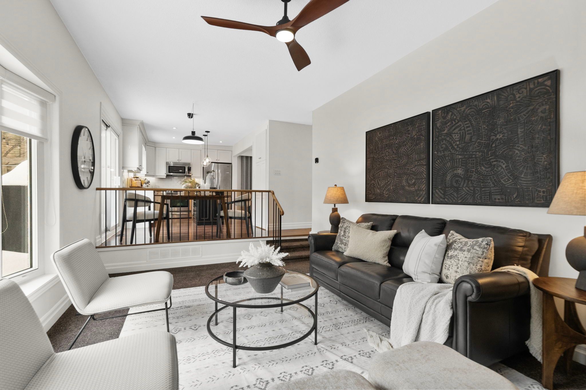 • Bright, open main living area with high ceilings and fresh paint.