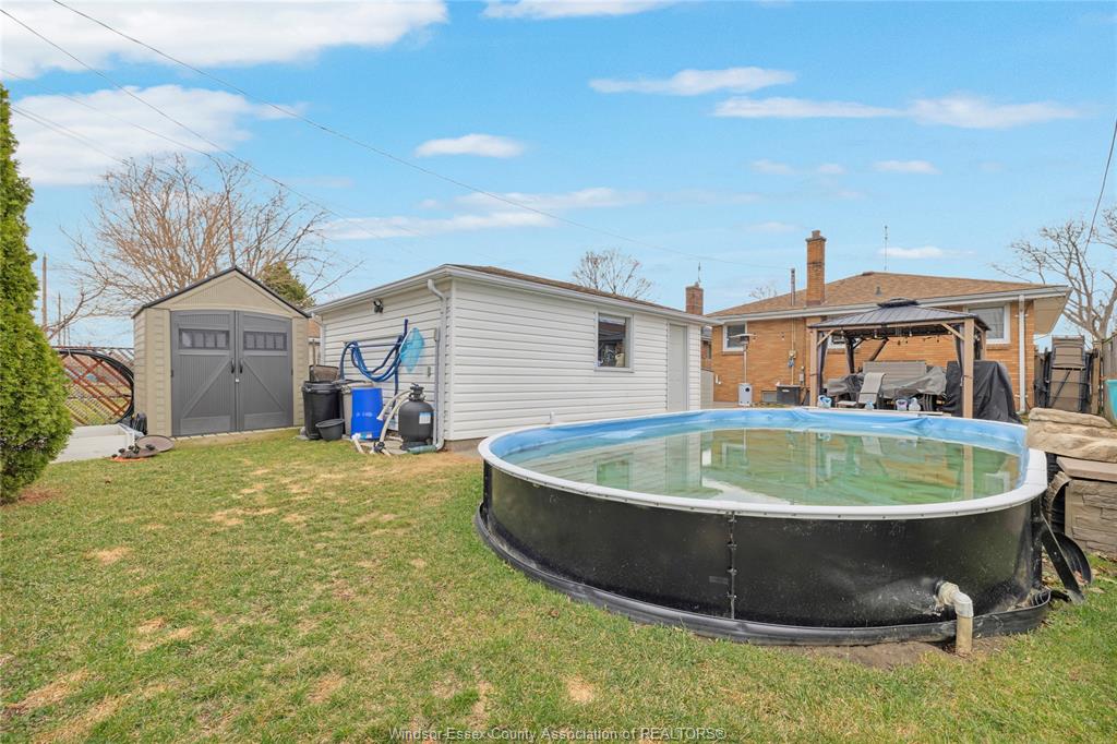 • Fully fenced backyard featuring an on-ground pool and gazebo.