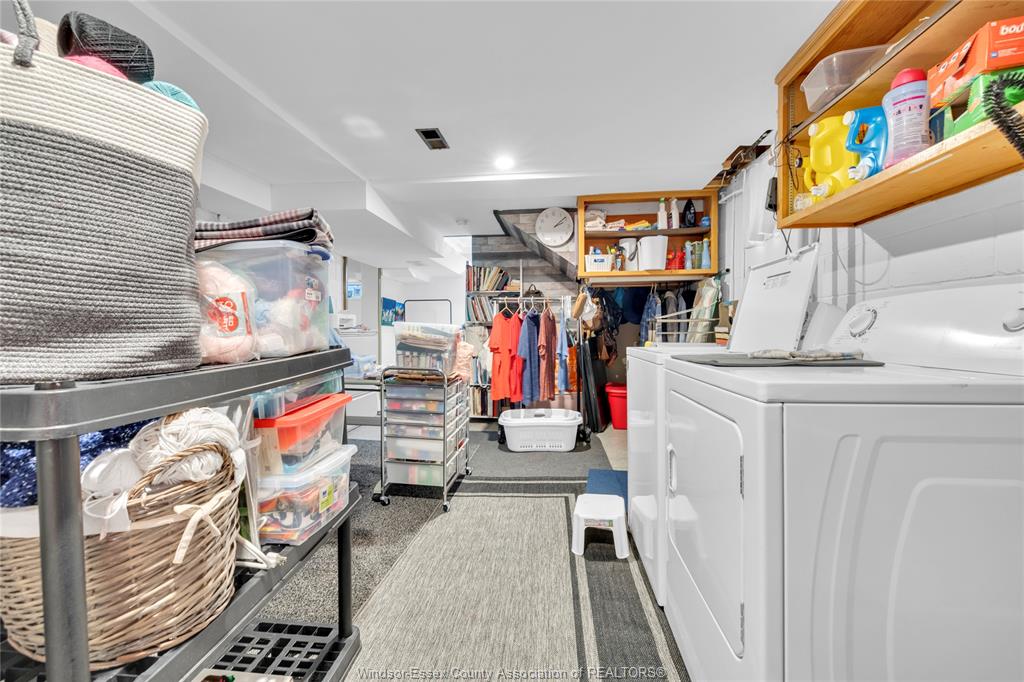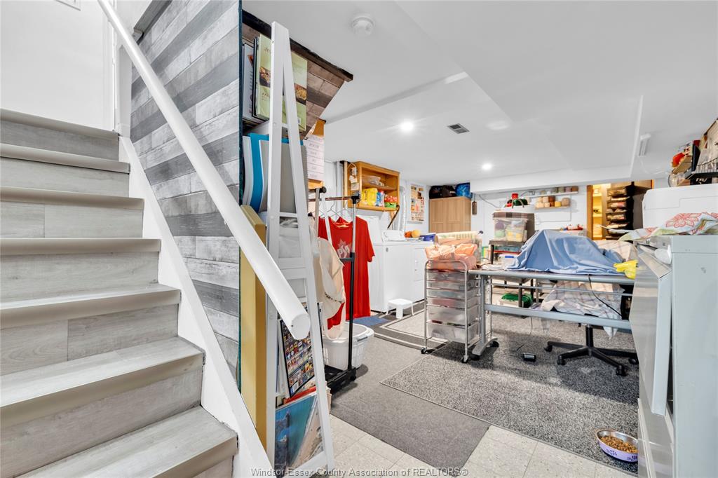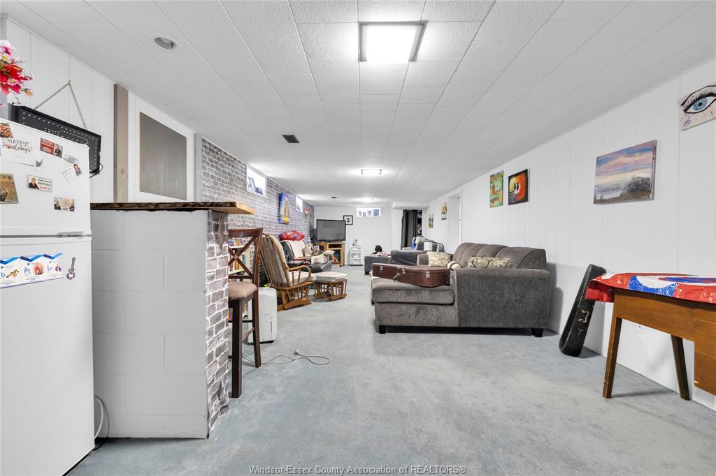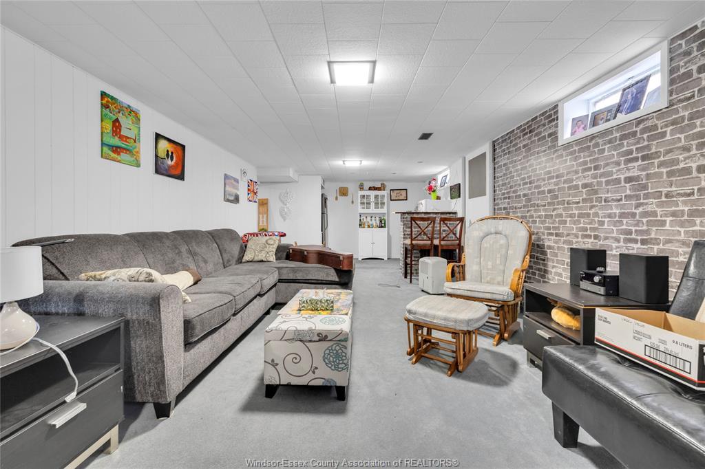 • Finished basement includes family room and extra storage space.