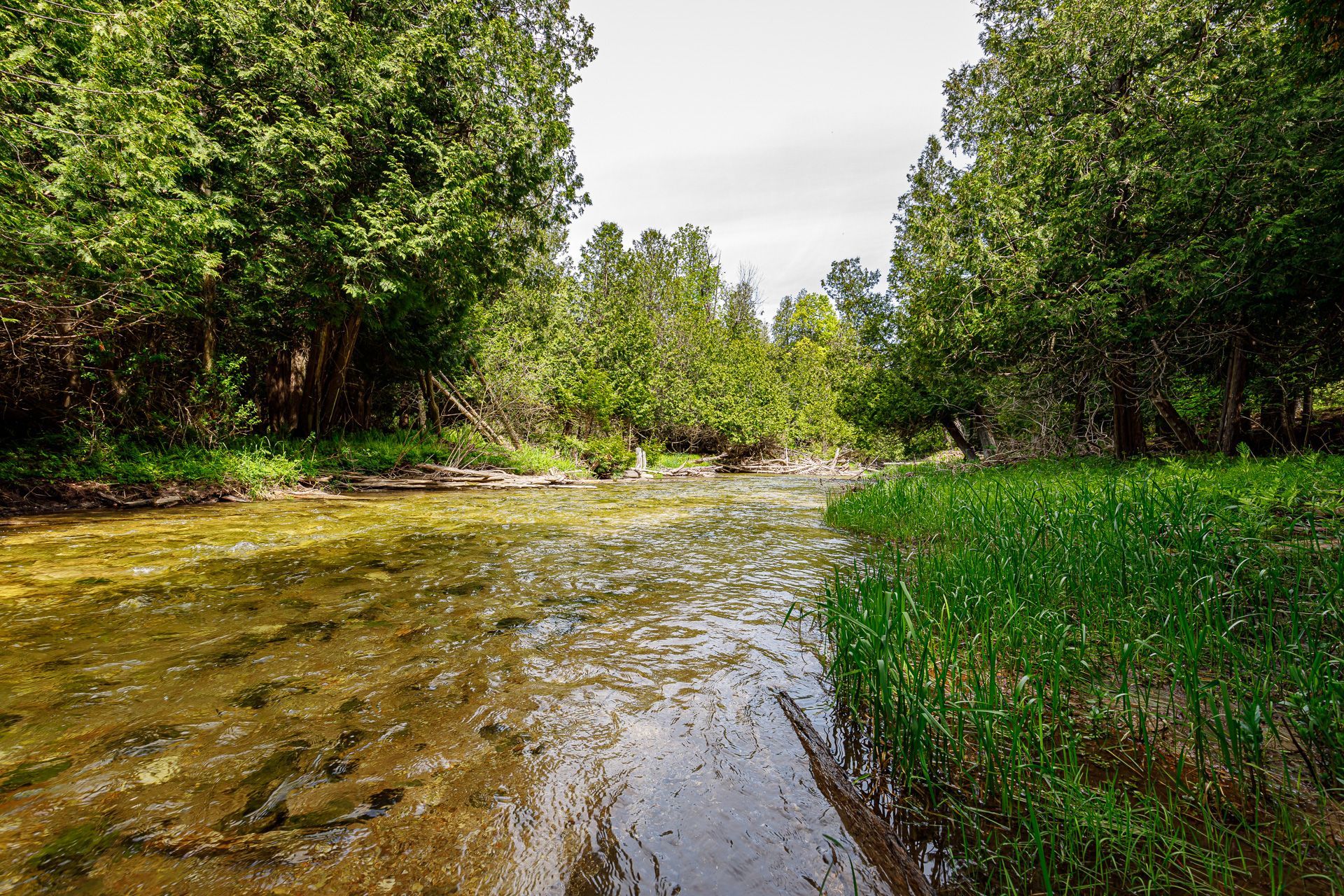 Nestled on 12 pristine acres in kimberley, this exceptional property offers the perfect blend of natural beauty and rustic charm. At the headwaters of the beaver river, a stream-fed freshwater pond invites you to fish for trout right in your own backyard. Meandering private trails wind through the landscape, making this a true nature lovers paradise. The chalet features 4 bedrooms and 3 bathrooms, with a separate lower-level entrance offering the potential for private guest quarters or an in-law suite. Thoughtfully designed with natural elements, it includes cedar-beamed vaulted ceilings, pine flooring, two wood-burning fireplaces, and a sauna for ultimate relaxation. Step out onto the expansive walkout deck and take in panoramic views of the niagara escarpment biosphere reserve and the picturesque swimming pond. Whether you're enjoying a quiet morning coffee or entertaining guests, this space is a showstopper. Ideally located just a short drive from beaver valley ski club, old baldy, lake eugenia, and charming general stores, you're also close to several renowned restaurants perfect for culinary adventurers. Flooded with natural light year-round, this inviting chalet is the perfect four-season retreat. Come experience the tranquility, beauty, and endless potential this unique property offers.