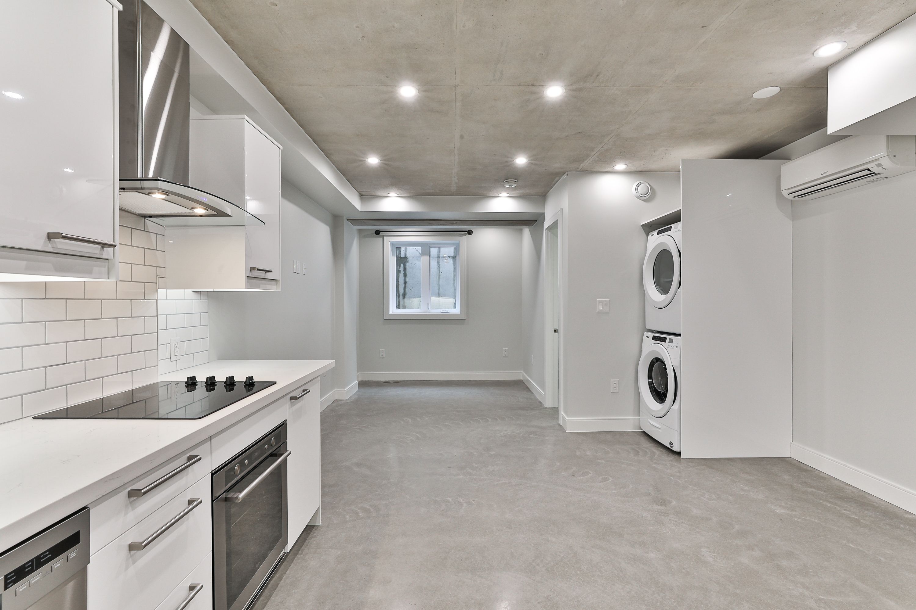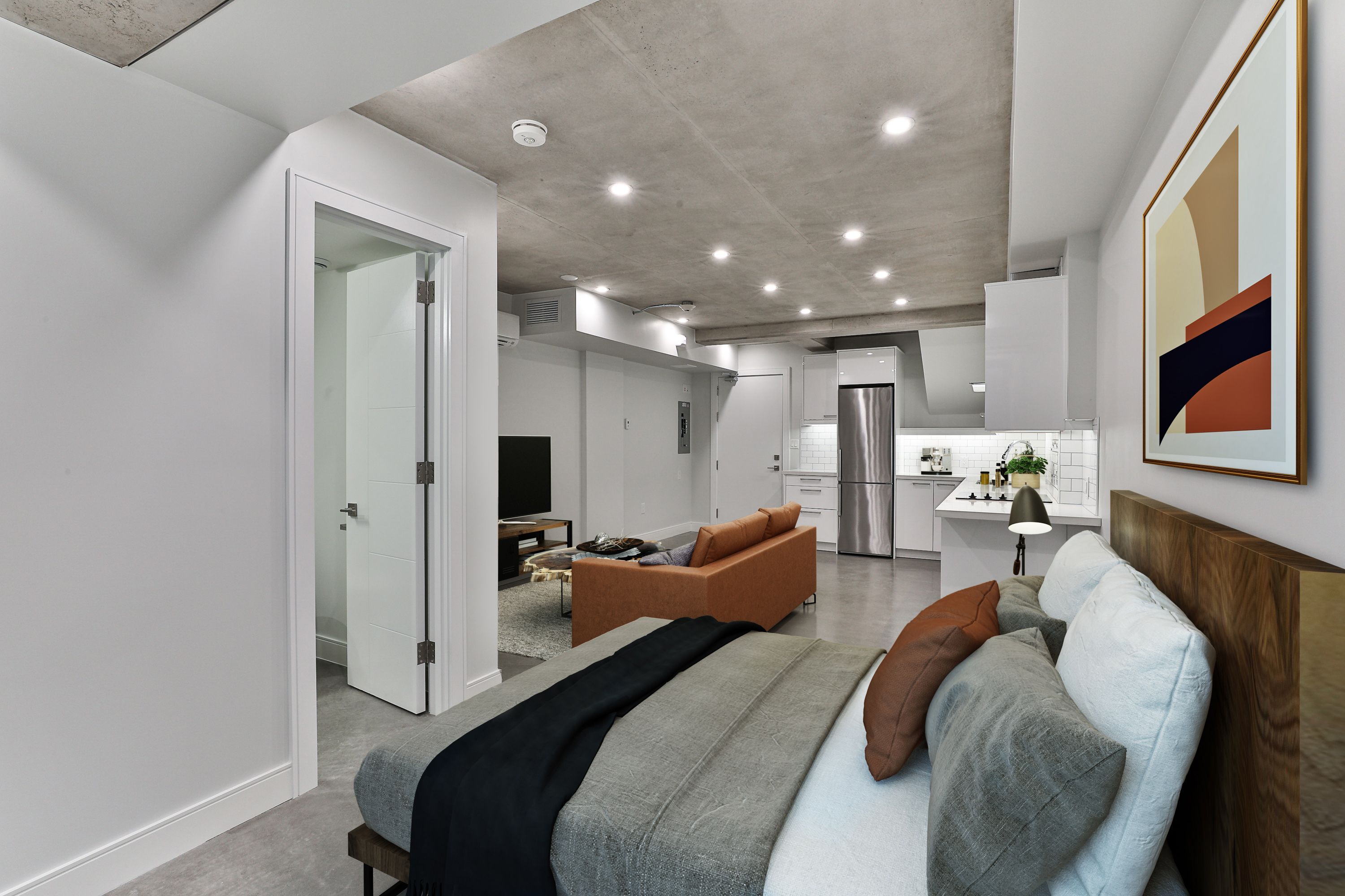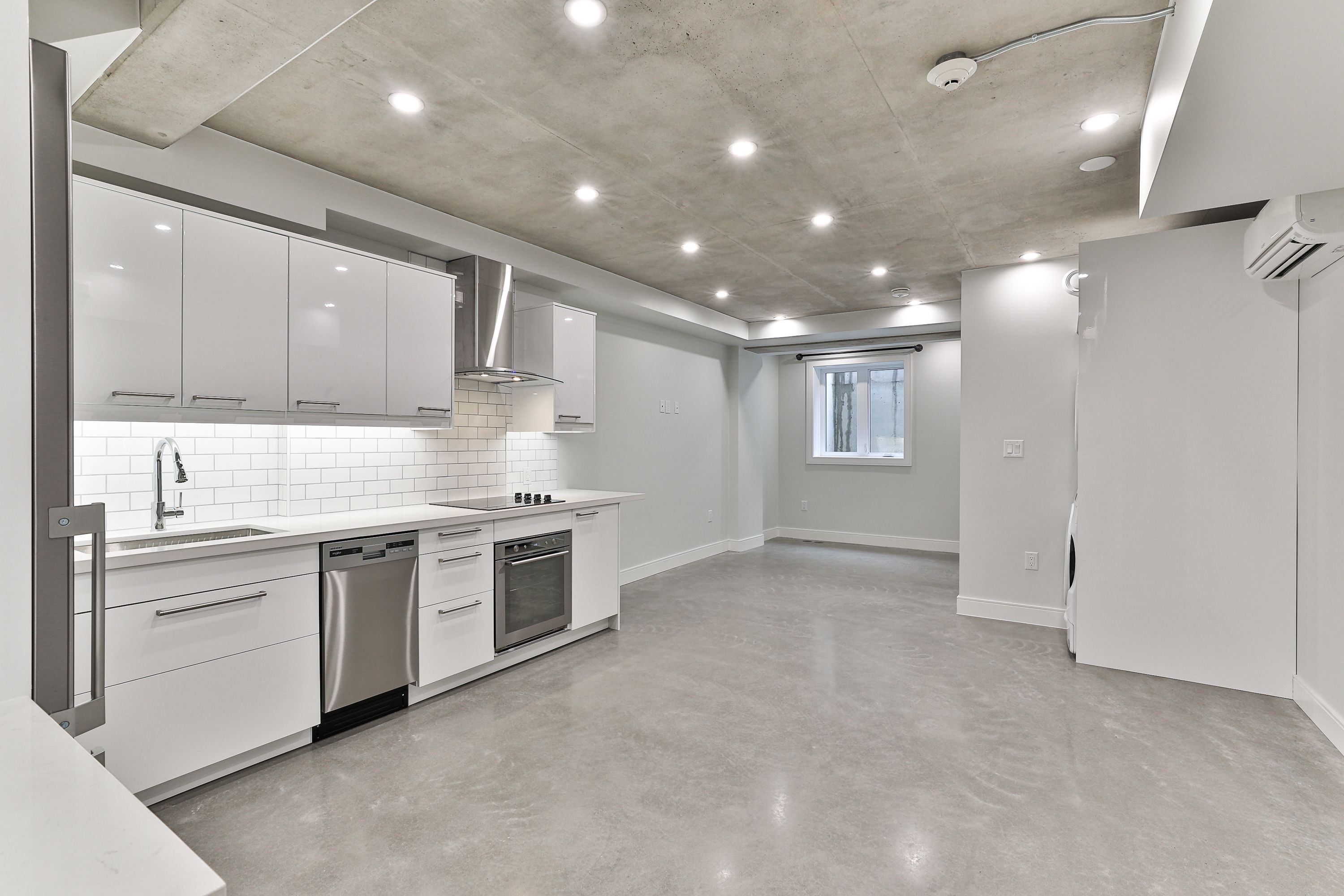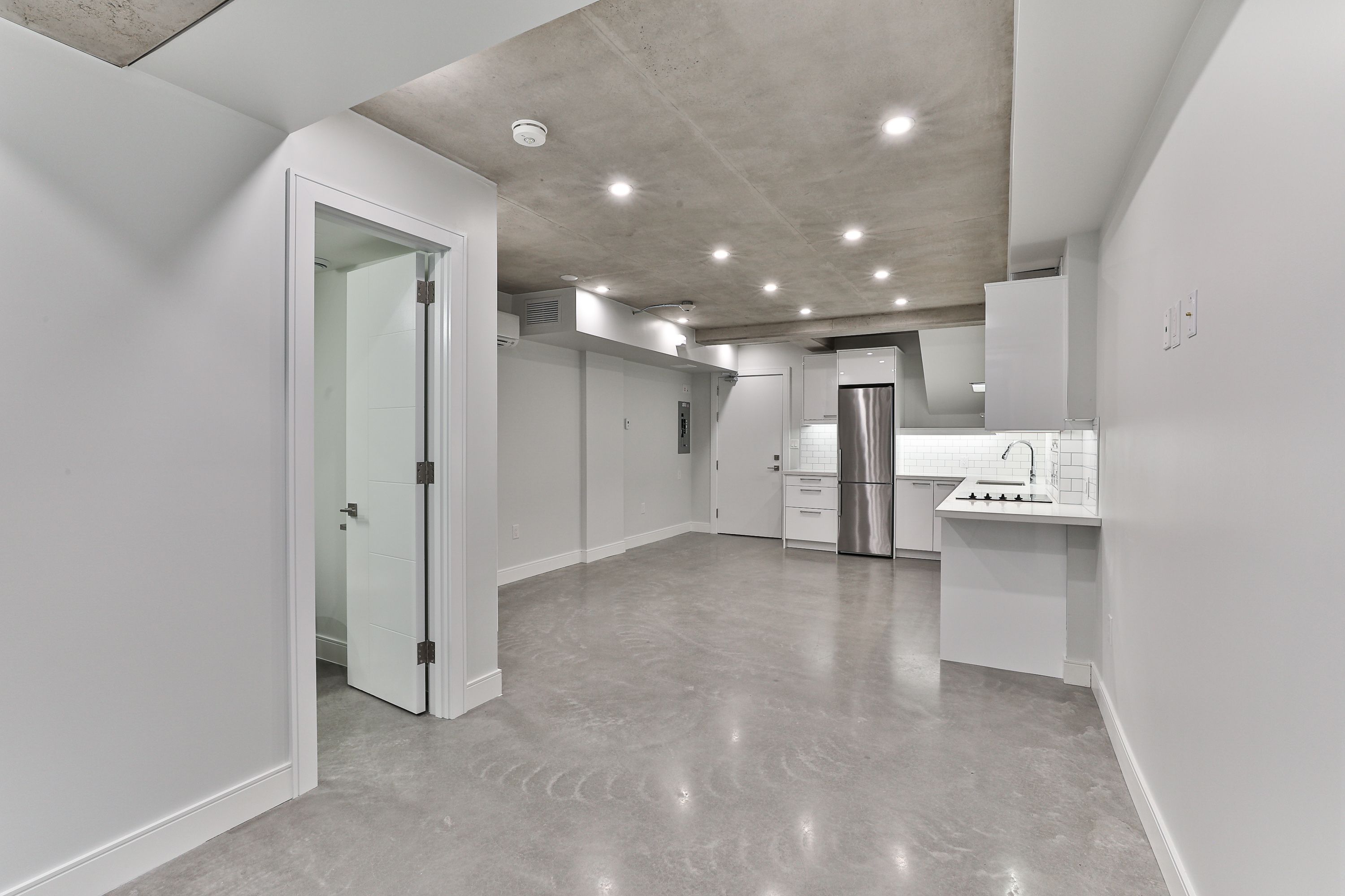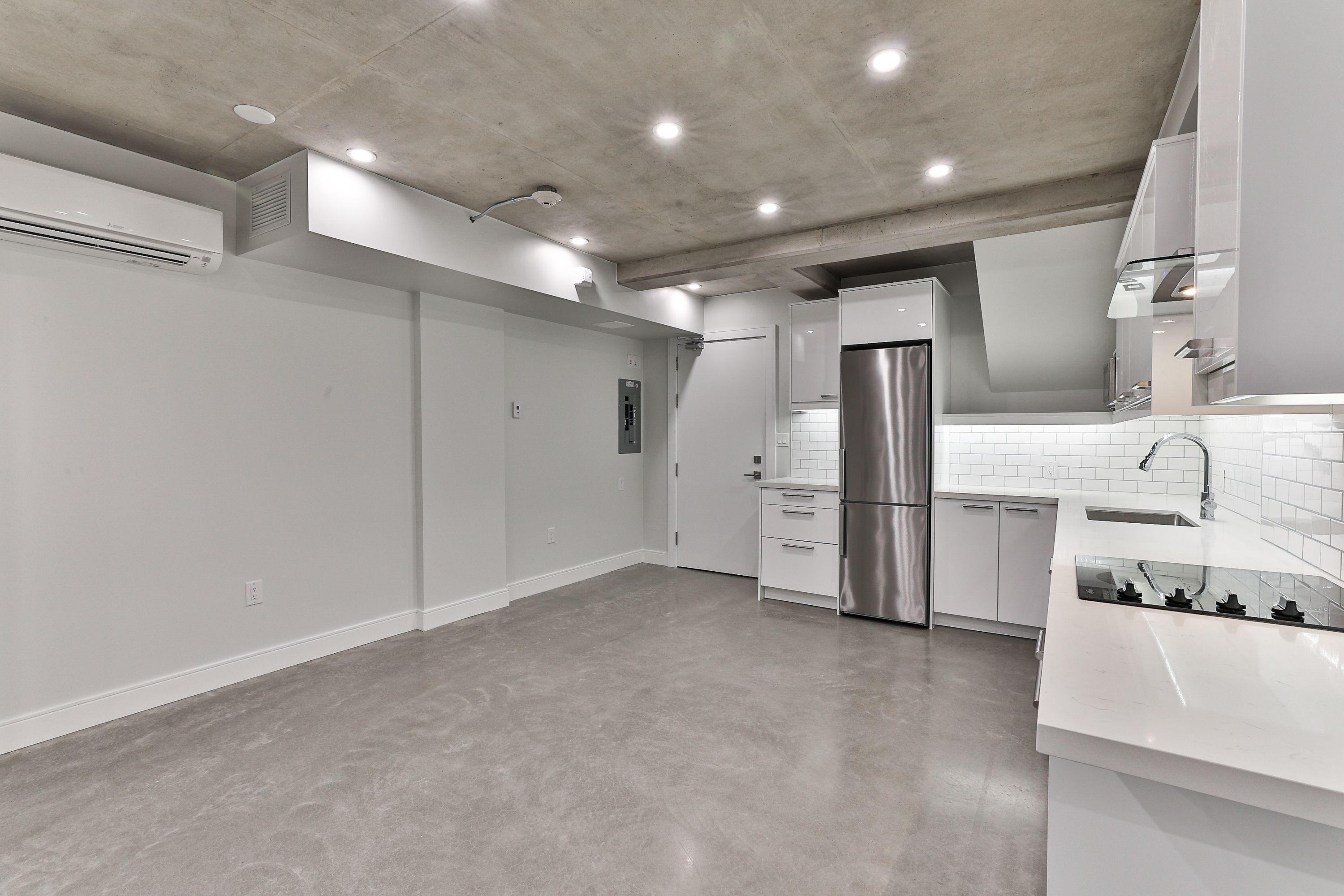 Brand new lower level unit in stunning boutique building built w/ finest craftsmanship & incredible attention to detail. Bachelor/studio unit with open concept lofty feel. Featuring high exposed concrete ceilings, polished concrete flrs w/ radiant in-floor heating, pot lights & custom kitchen w/built-in s/s appliances & quartz countertops. Functional open concept layout w/ loft style feel. W/3pc ensuite w/ walk-in shower. Access to bbq in common area. Just steps from stockyards, 401, ttc & lrt! Water included, just pay gas & hydro (street parking is free) very well insulated (solid concrete walls and ceiling with sound proofing)hrv system (allowing for fresh outside air to be recirculated into the unit)