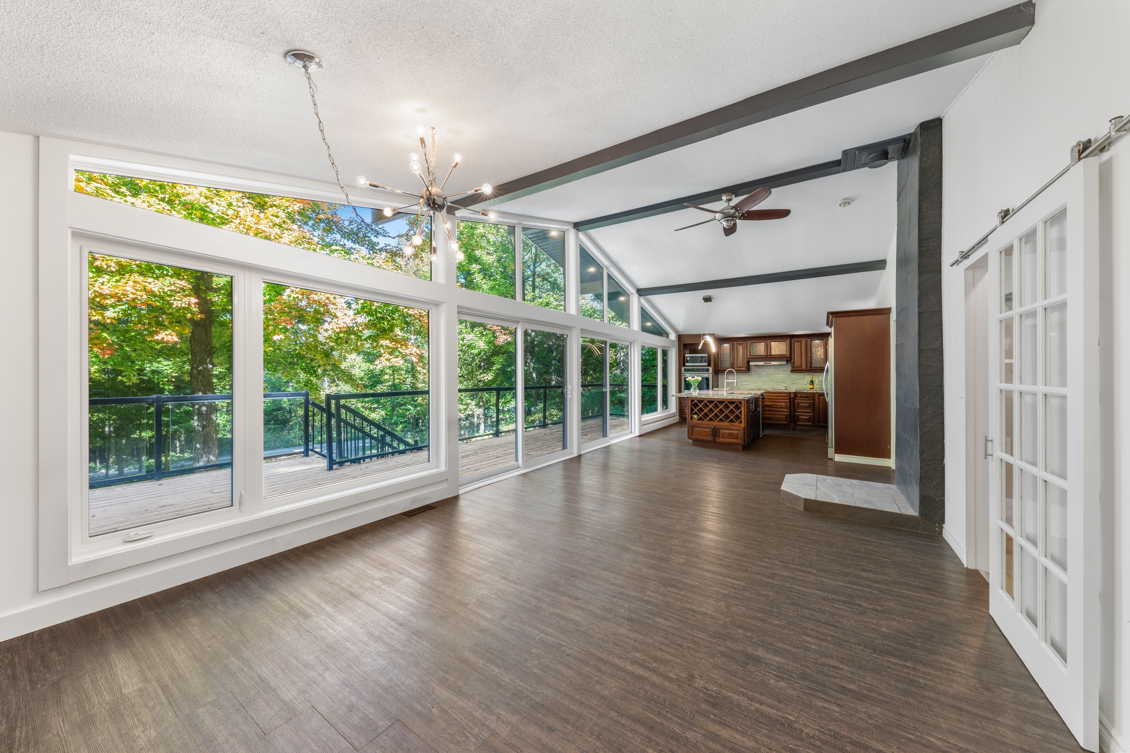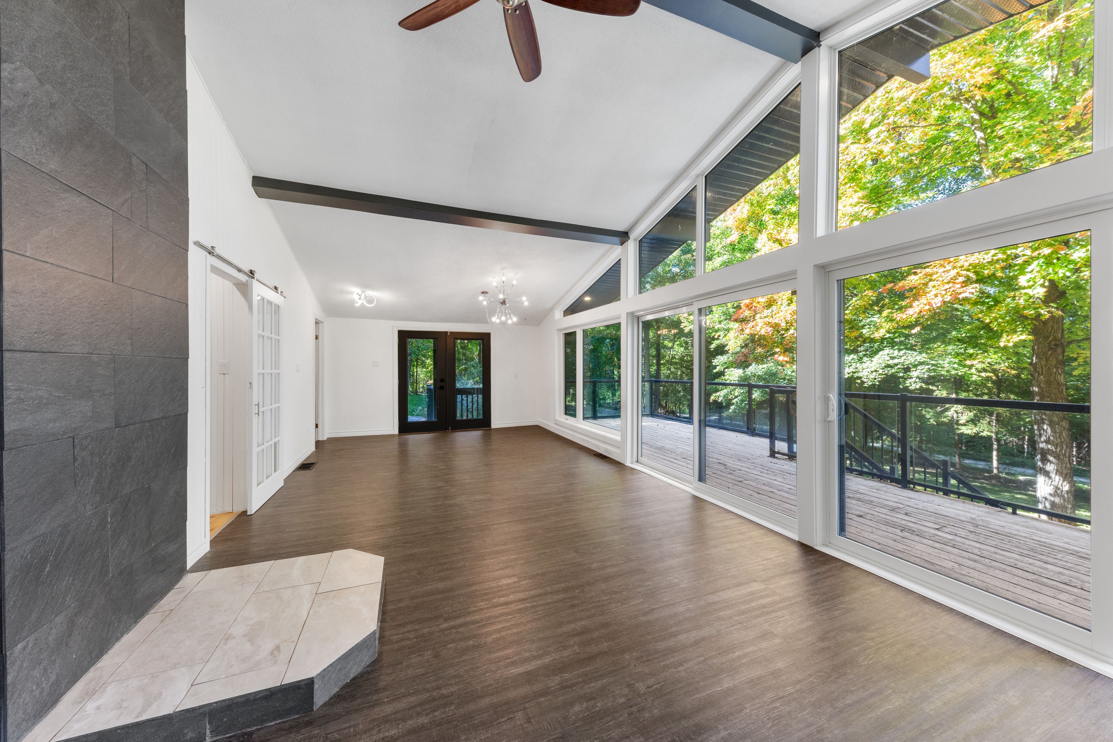 • Modern open-concept layout with soaring cathedral ceilings and ample natural light.