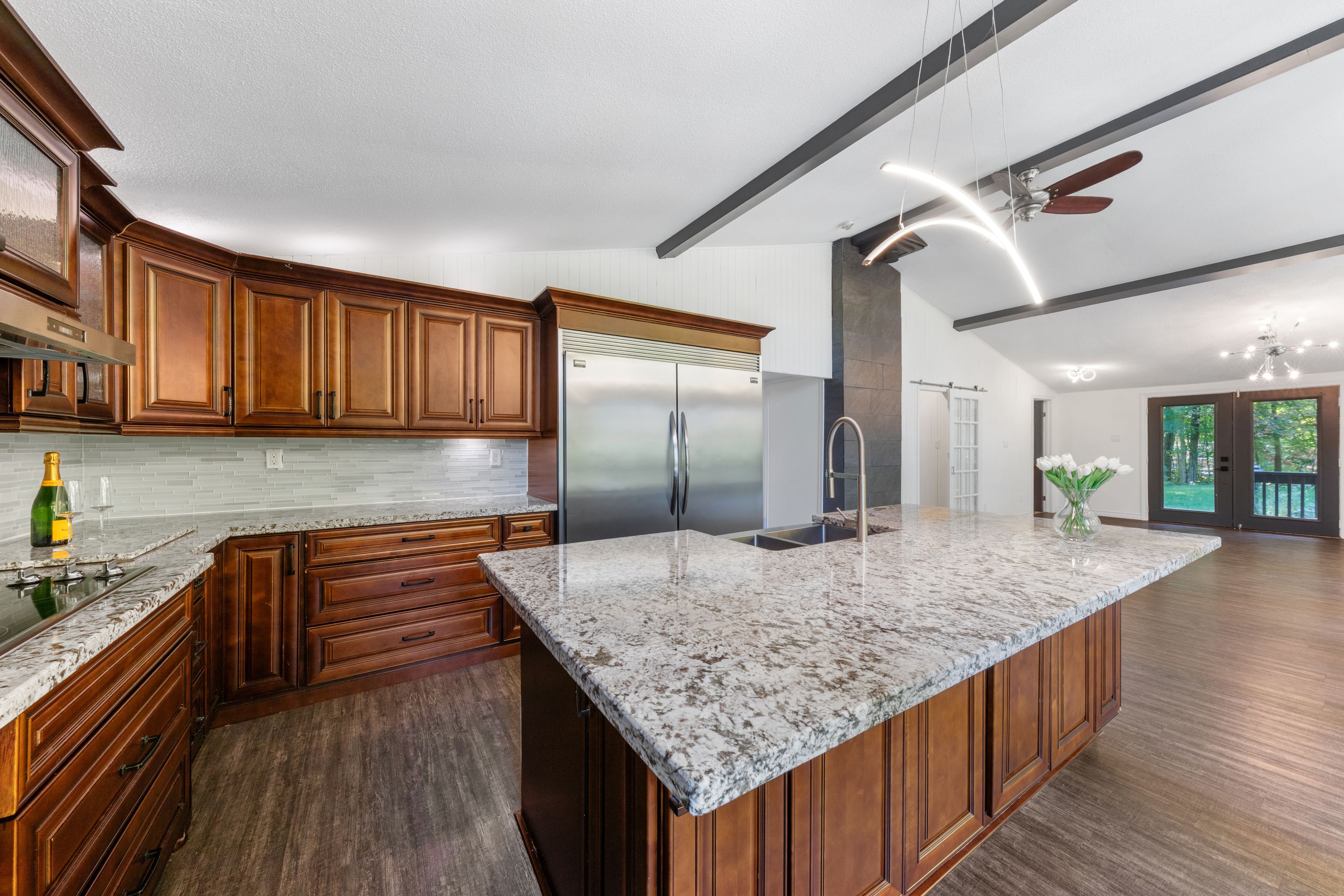 • Custom kitchen with oversized island and premium appliances for entertaining.