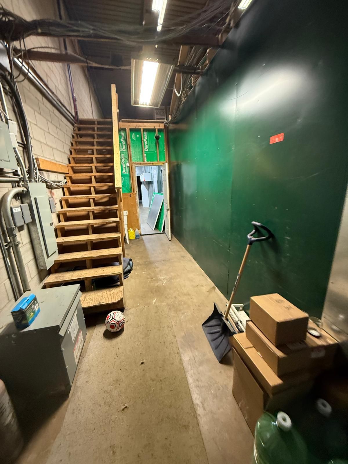 • High ceiling design provides flexibility for various business uses.