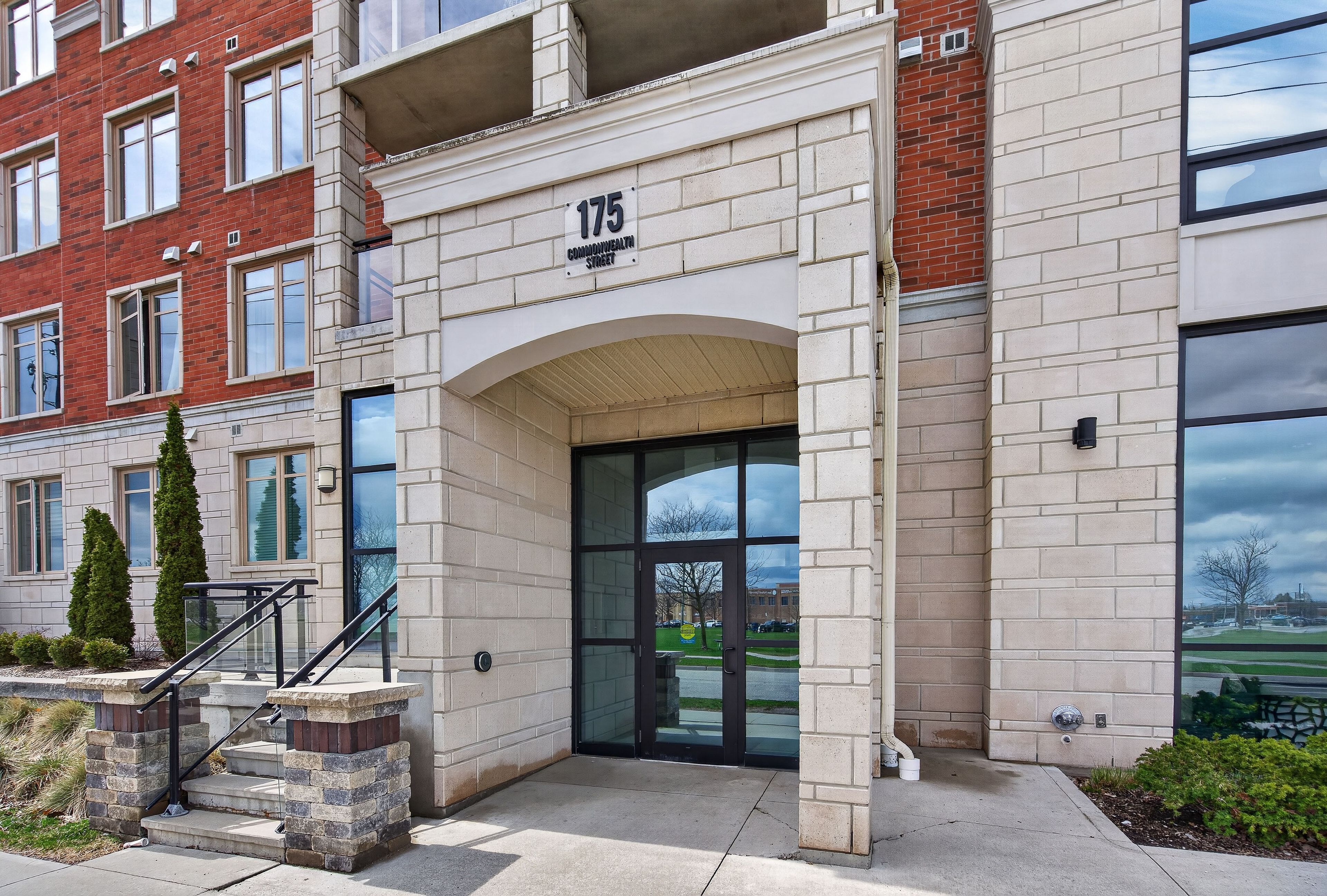 Welcome home to 175 commonwealth street, where modern comfort meets everyday convenience. This sun-drenched residence is defined by its stunning floor-to-ceiling windows, which flood the open-concept living space with natural light and offer serene, unobstructed views overlooking the neighboring green space. The thoughtful layout features a large primary bedroom features a private 3-piece ensuite and walk in closet. Every corner of this home feels airy and bright, blending spacious interiors with a peaceful outdoor backdrop. This unit also includes the rare and highly coveted benefit of two owned parking spots and a storage locker for extra convenience. The building itself offers excellent amenities, including a fully equipped fitness centre and a stylish party room perfect for hosting gatherings. Beyond your front door, you are perfectly positioned for a "walk-everything" lifestyle. Within a short stroll, you'll find:daily essentials: sobeys, starbucks, and goodlife fitness. Dining & shopping: the vibrant shops and restaurants of williamsburg plaza. Nature: direct access to scenic trails and community parkland right across the street. Opportunities like this don't last long-book your private showing today before this beautiful home is gone!