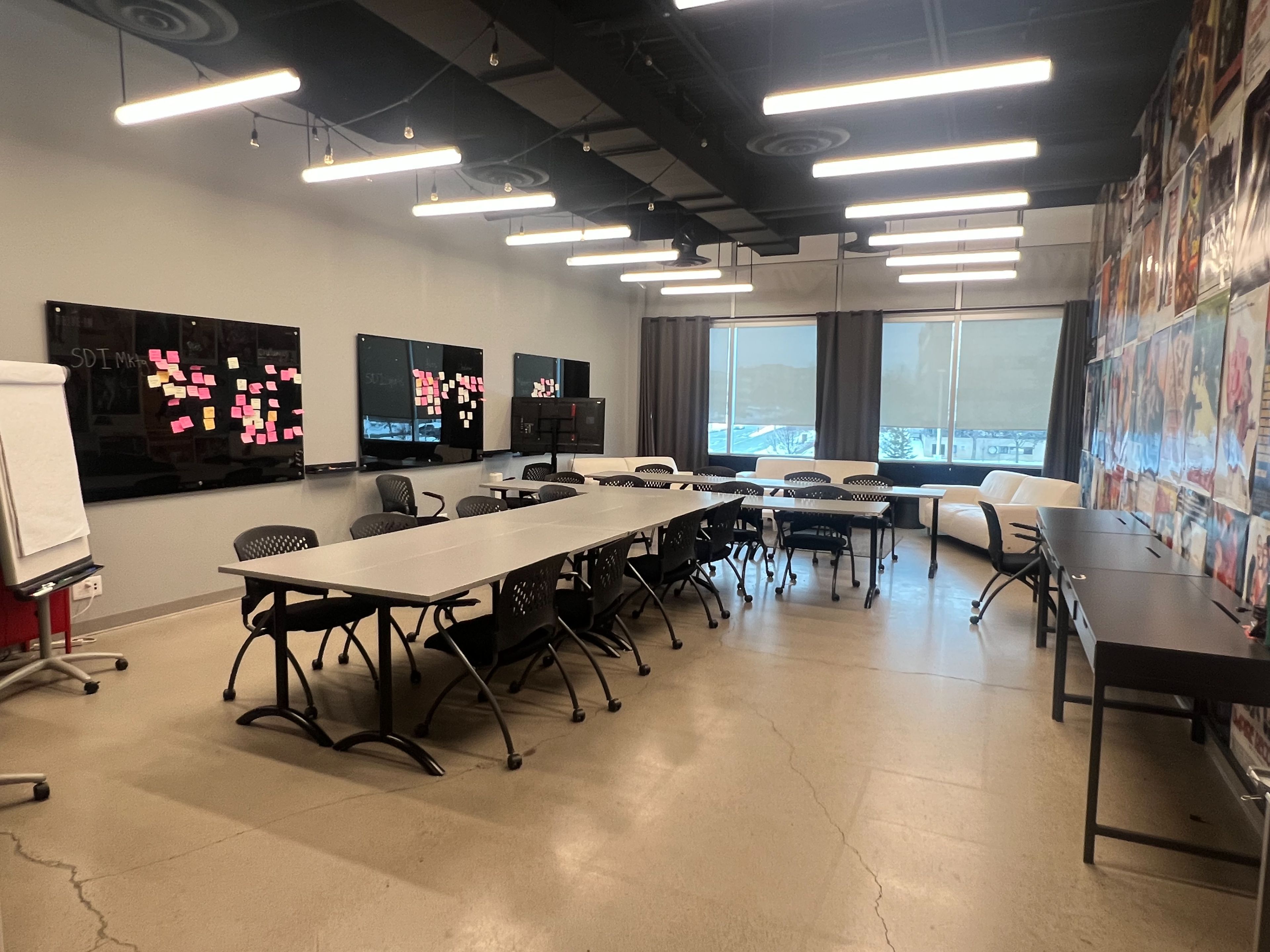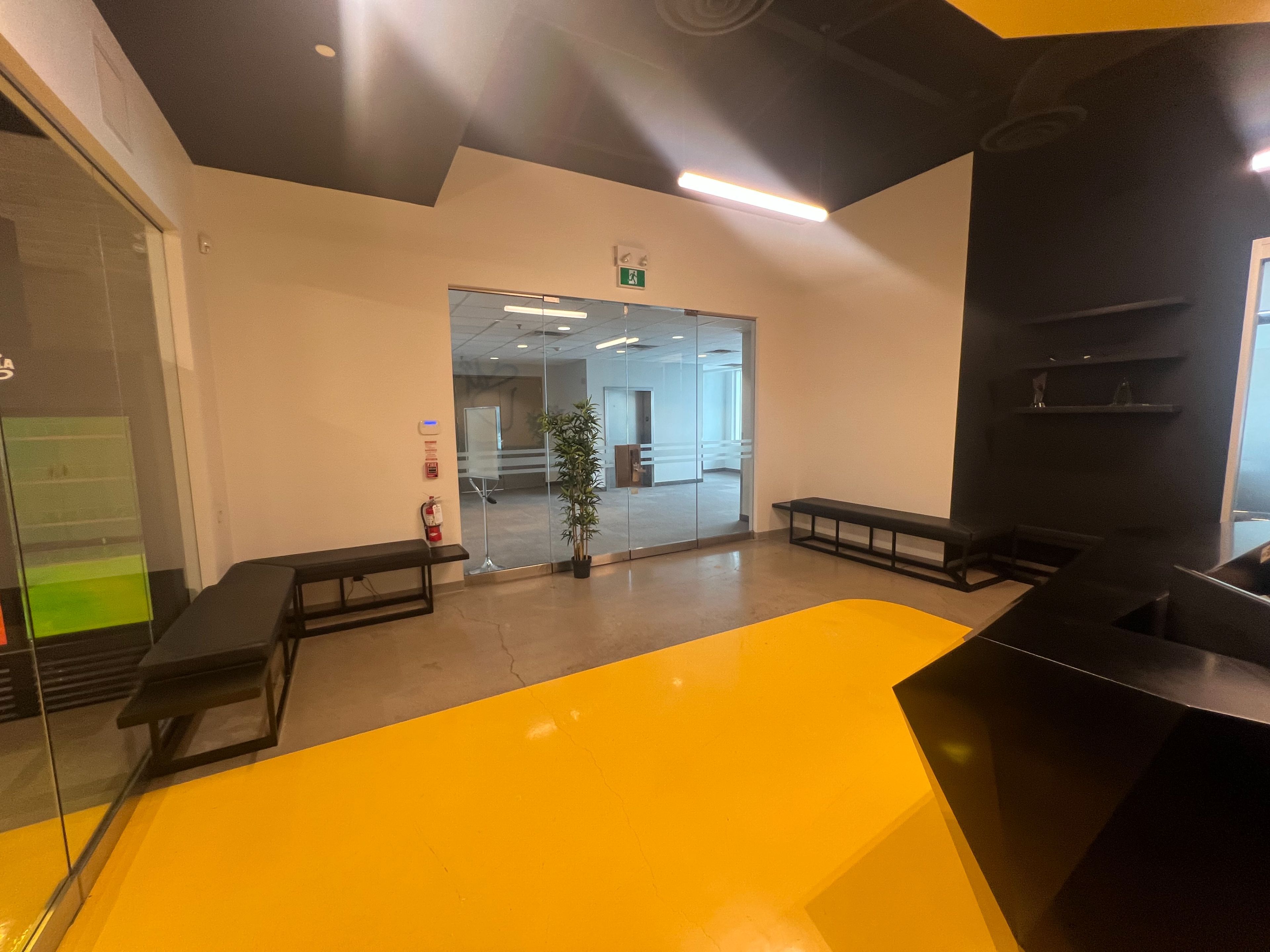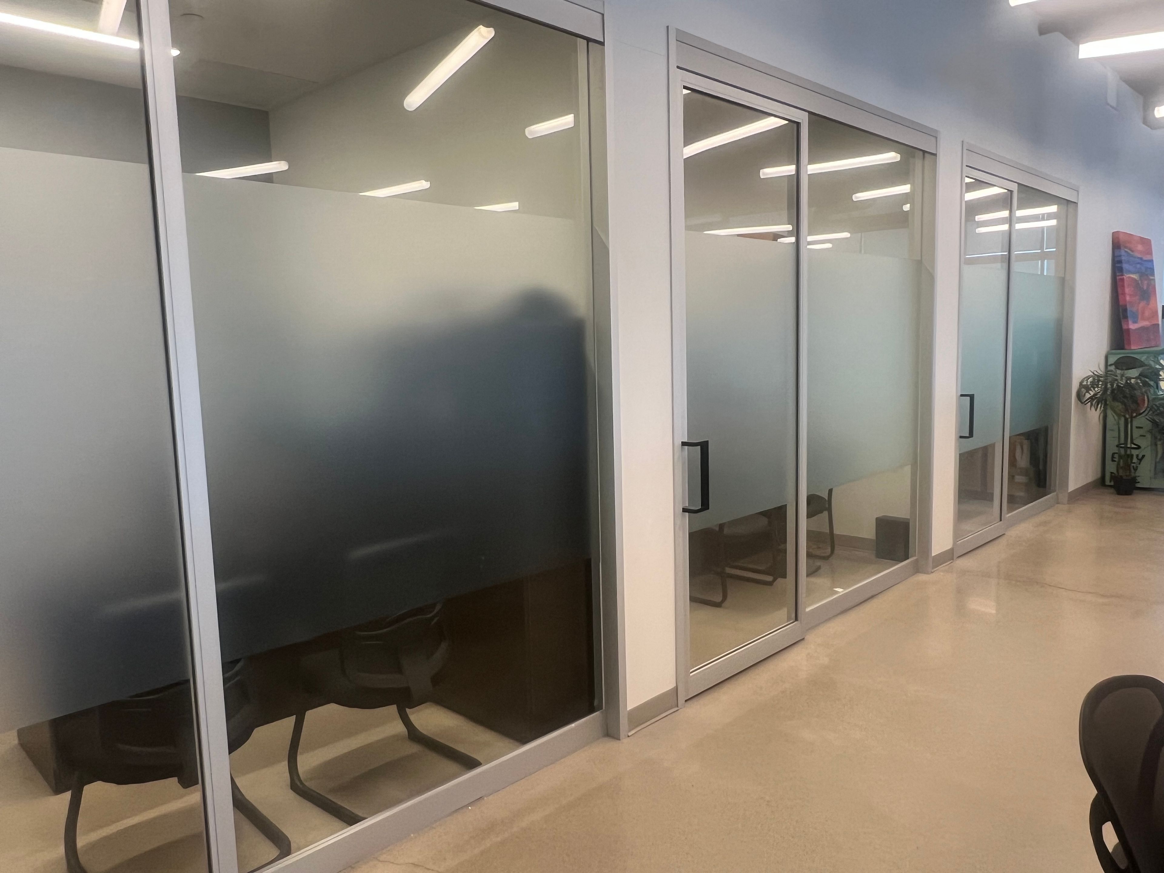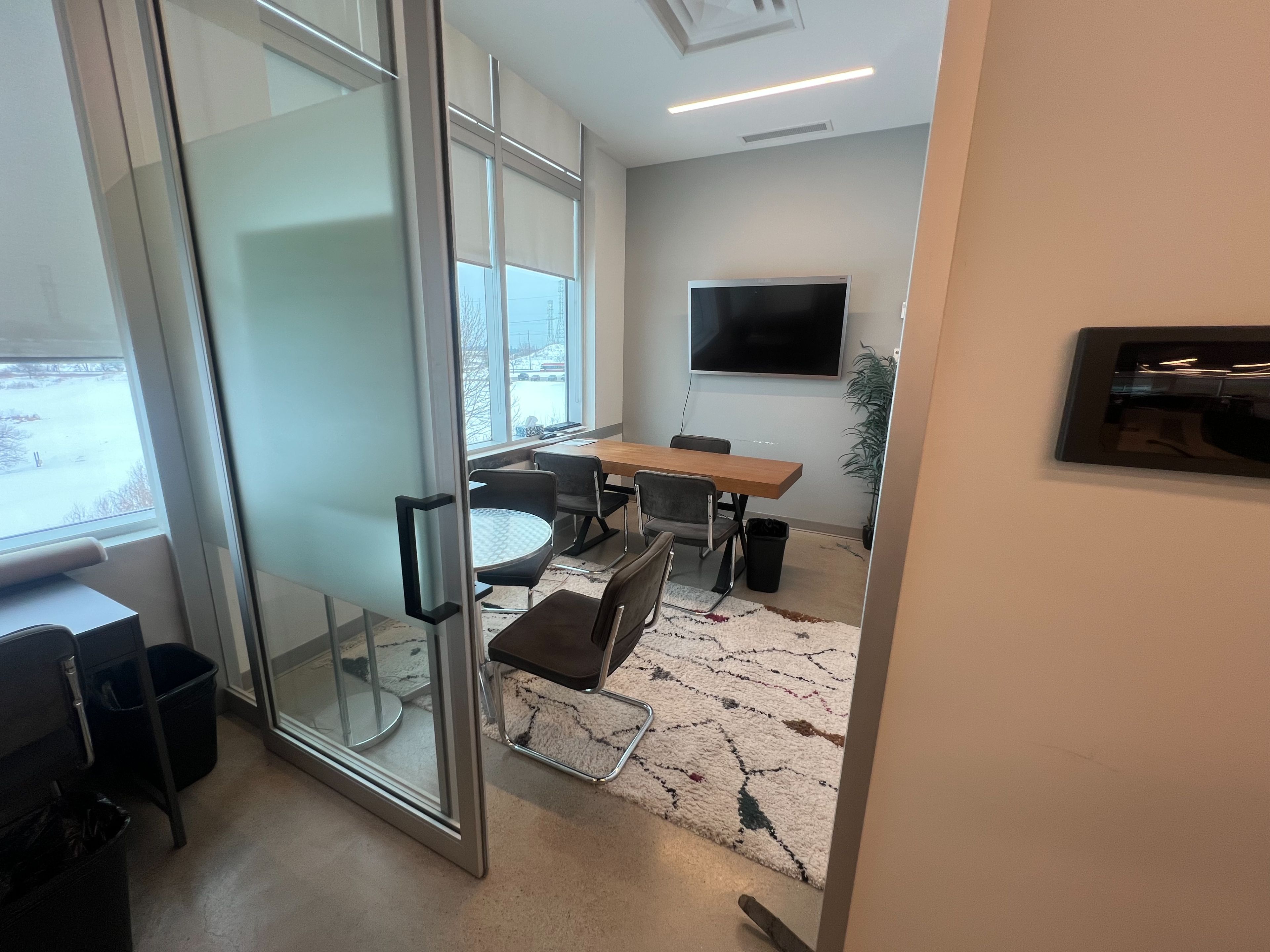• Large windows provide ample natural light, enhancing the work environment.