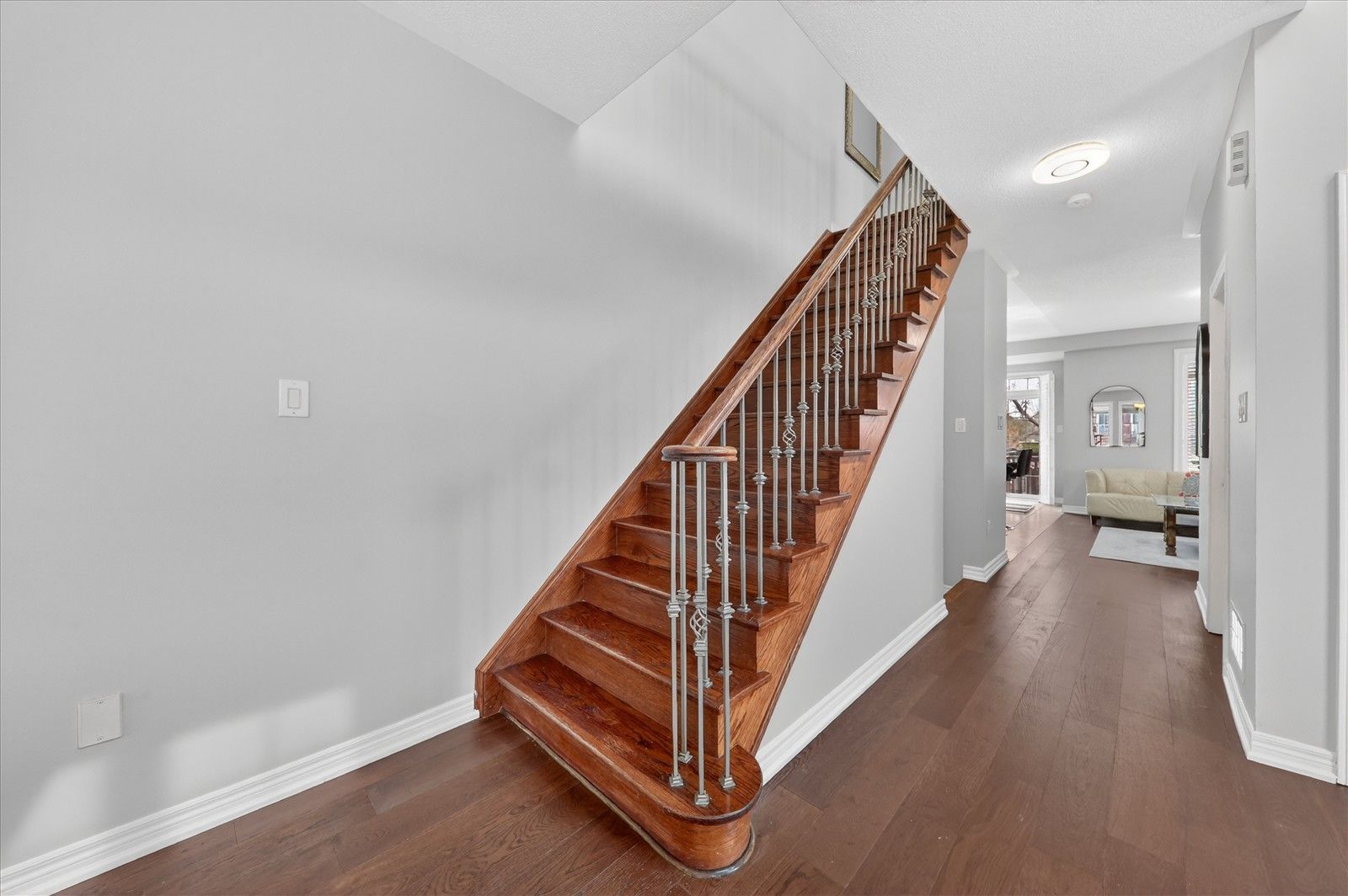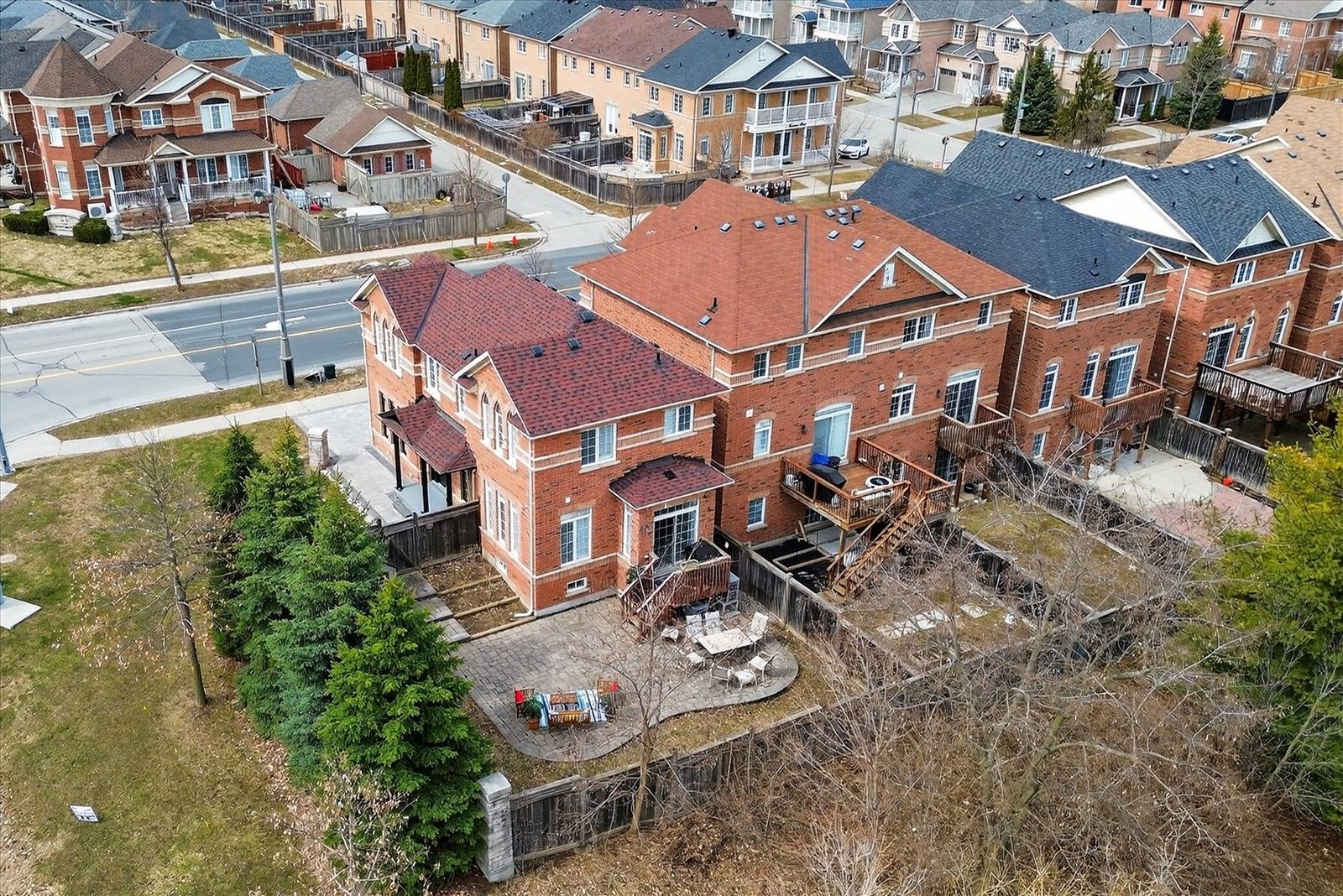 Welcome to this exceptional home offering privacy, space, and breathtaking ravine views. Corner premium lot ( this is a detached home, linked only by the garage), offering the feel and privacy with ravine views enjoy your morning coffee or unwind in the evening on the expansive deck overlooking nature-your own peaceful retreat in the city. This beautifully upgraded home features a finished basement with a spacious rec room and wet bar - perfect for entertaining or extended family living. The bright and open-concept layout is enhanced with hardwood flooring except one bedroom, separate living and family rooms, and an elegant oak staircase with iron pickets. The modern kitchen is equipped with granite counter tops, stainless steel appliances, and ample cabinetry-ideal for everyday living and hosting. Retreat to the oversized primary bedroom featuring a walk -in closet and a spa-inspired 4-piece ensuite. Located in a highly desirable neighbourhood, just steps to top-rated schools, hwy 407, a community centre and park, shopping, including longo's and walmart, go transit, and scenic green spaces. Move-in ready with premium upgrades and an unbeatable location-this is a rare opportunity you don't want to miss!
