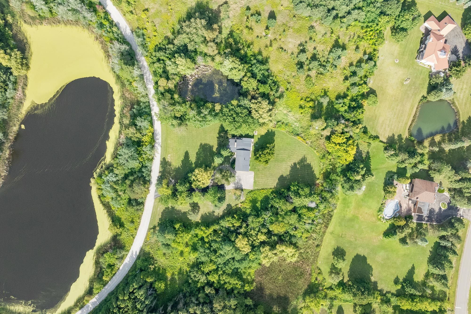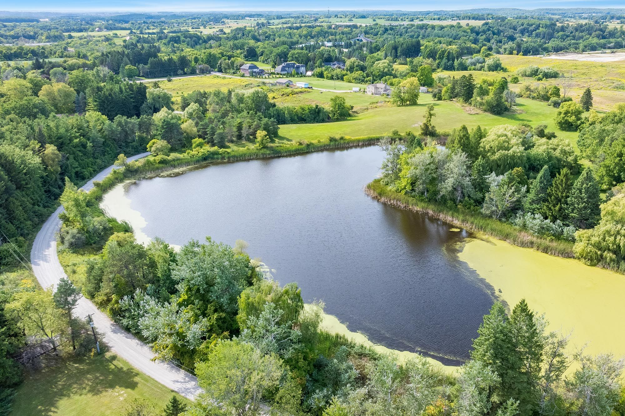 • Serene property with a scenic pond and mature trees.