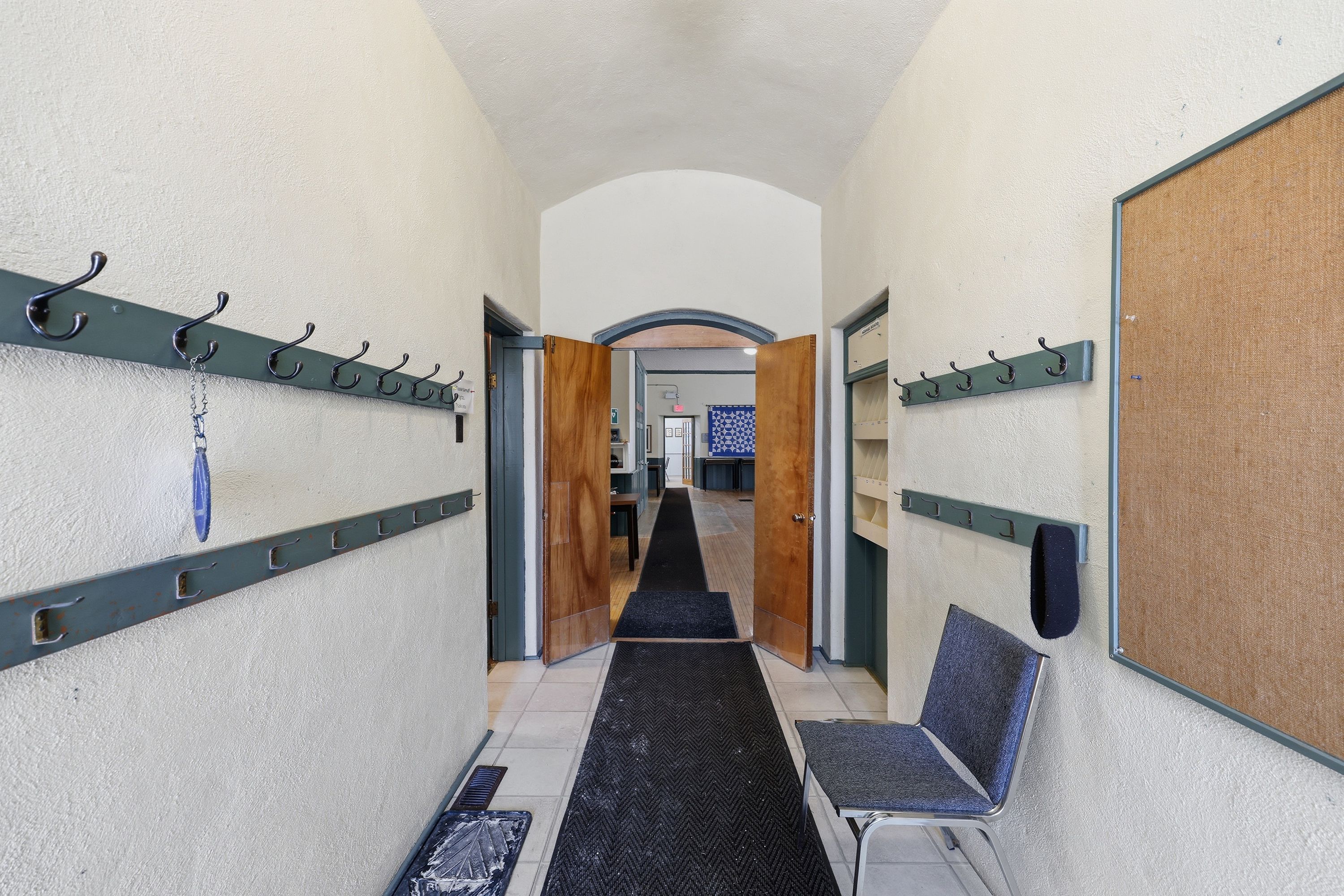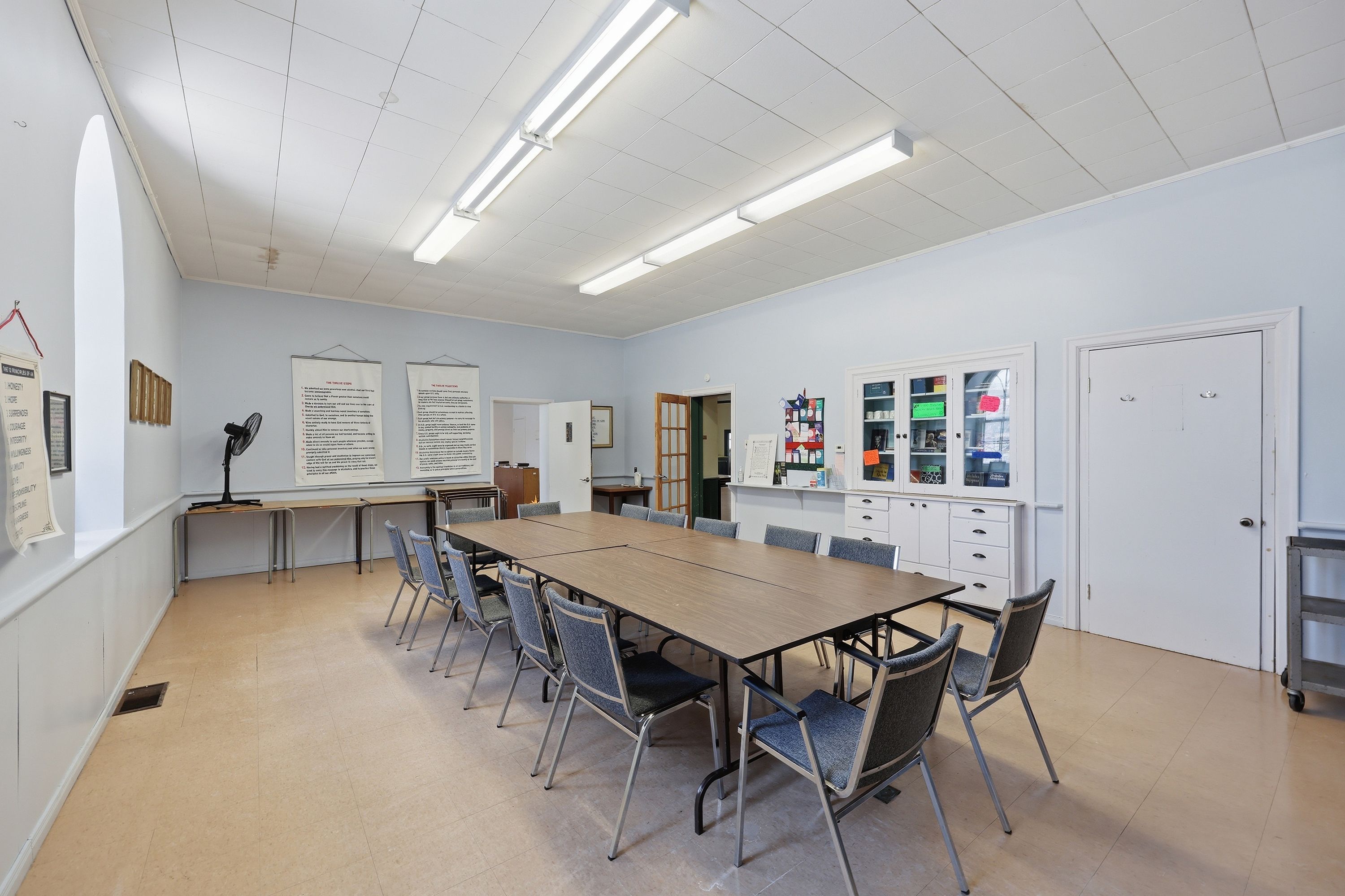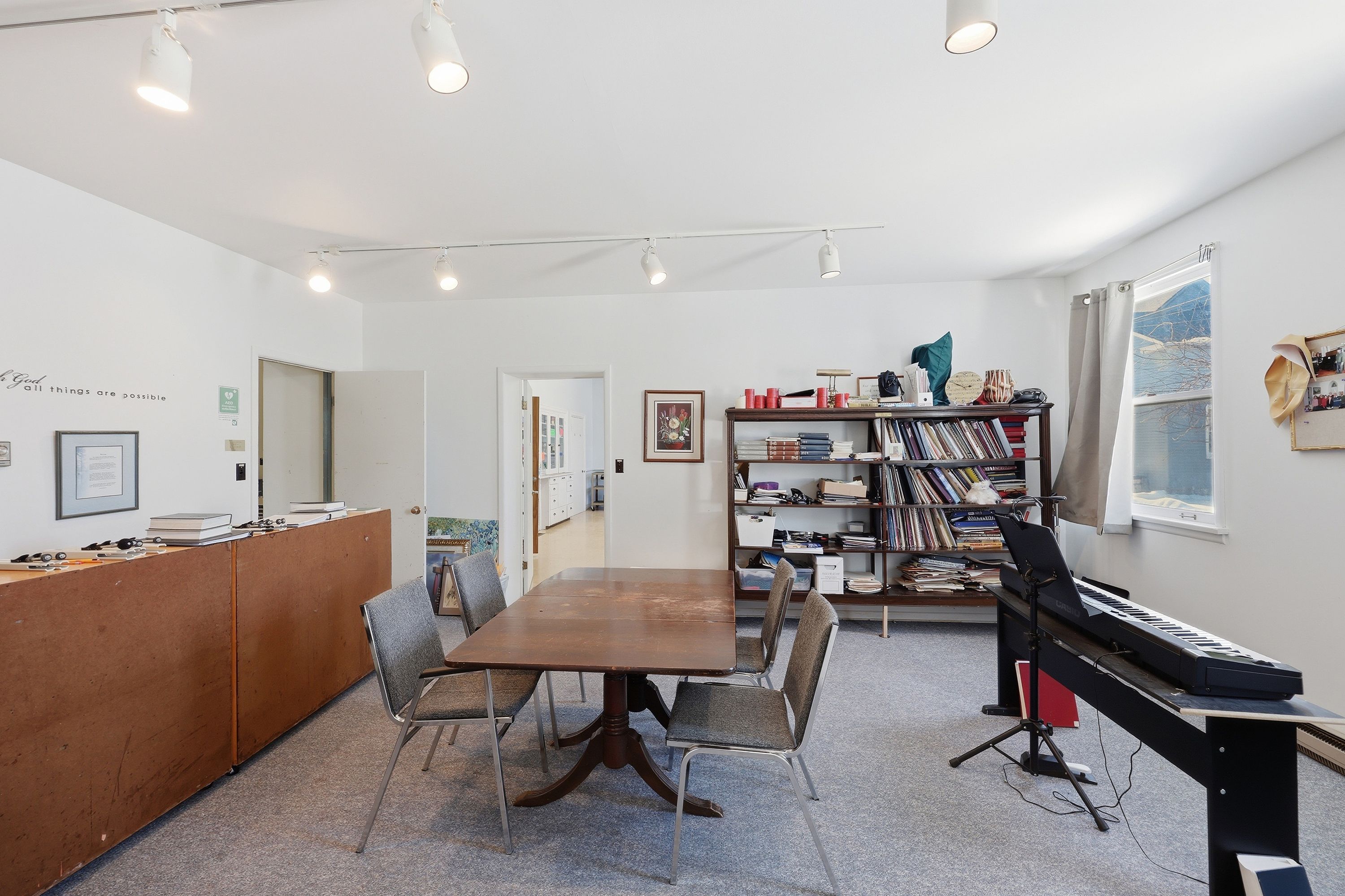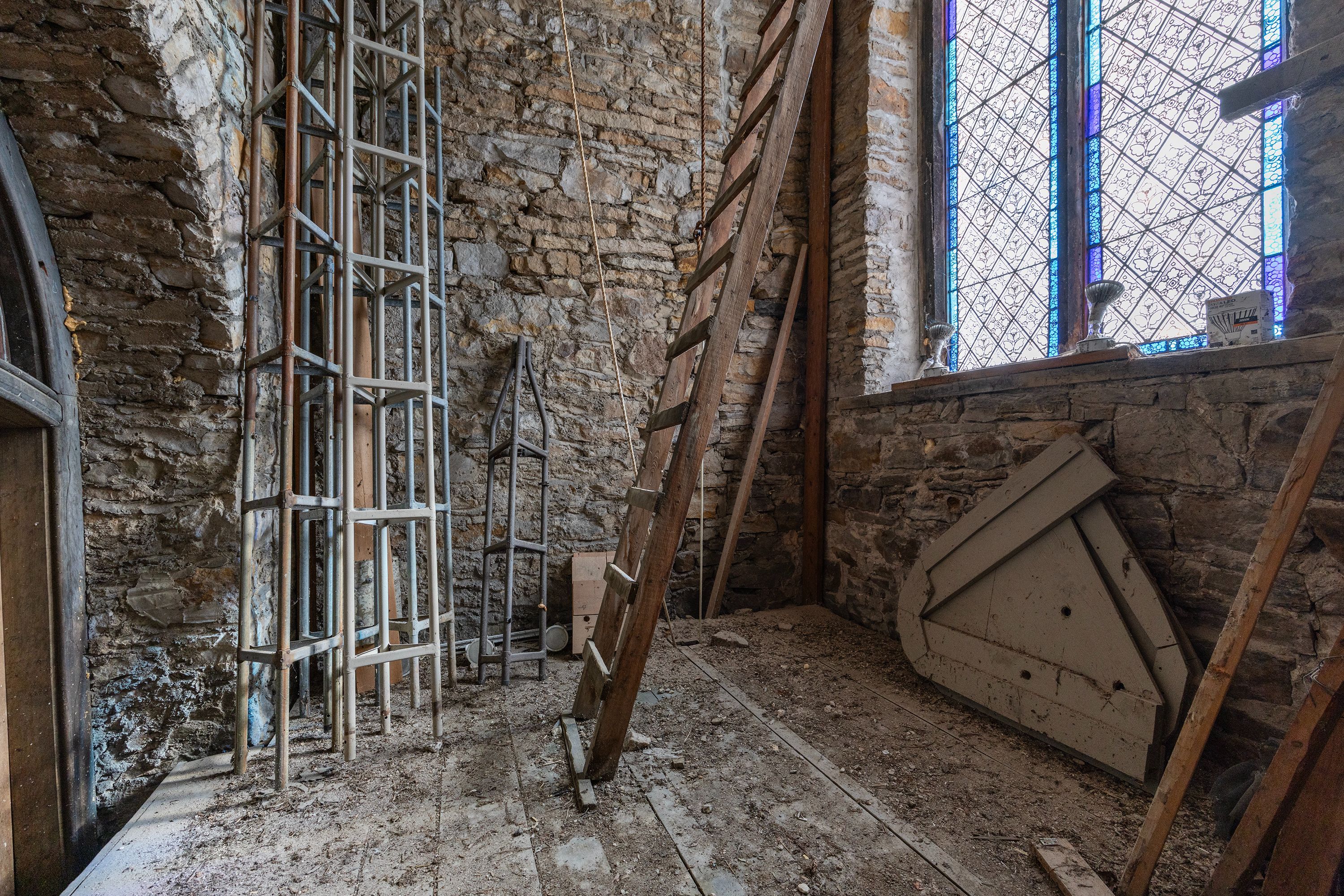 • Stained glass windows and soaring ceilings add unique character.