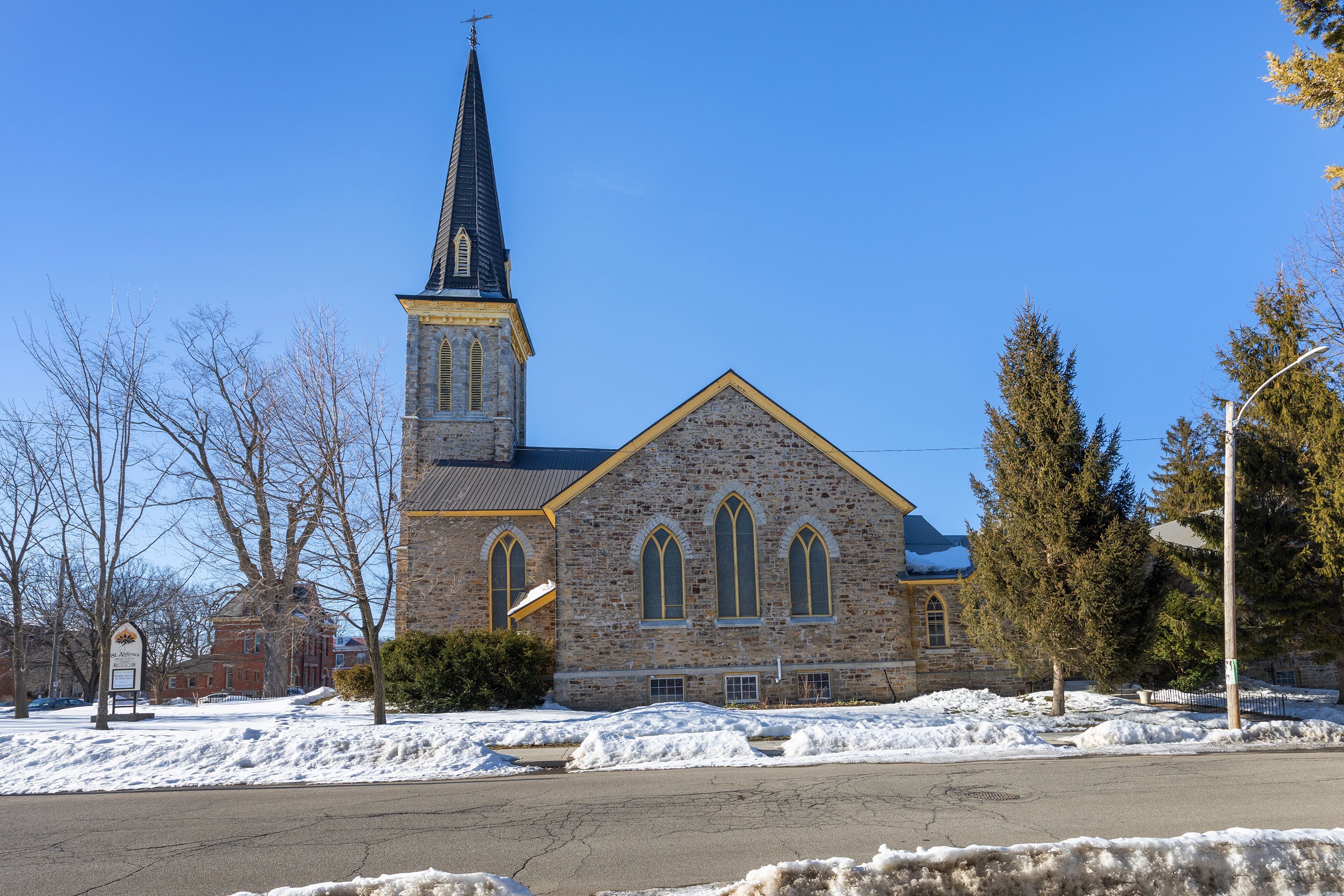 Historic redevelopment opportunity in the heart of gananoque. Former st. Andrew's presbyterian church, a landmark heritage property originally constructed in 1855 and recognized as one of the town's oldest church buildings. Prominently located near the downtown core and the thousand islands waterfront, this approximately 10,000 sq. Ft. Structure offers exceptional character and redevelopment potential. The solid masonry building features classic ecclesiastical architecture including stained glass windows, soaring ceilings, and a distinctive historic façade that reflects gananoque's early scottish presbyterian roots. Over the years the building has served not only as a place of worship but also as a community hub hosting meetings, educational programs and local organizations. With its generous interior space and flexible layout, the property presents a unique opportunity for a variety of adaptive re-uses subject to municipal approvals. Potential future uses may include residential or multi-residential conversion, educational or institutional facilities, cultural or community space, boutique event venue, or mixed-use redevelopment. Situated in a charming and historic thousand islands community with strong tourism and waterfront appeal, this property combines heritage character with significant development upside. A rare chance for investors, developers, or institutions seeking a distinctive landmark building.