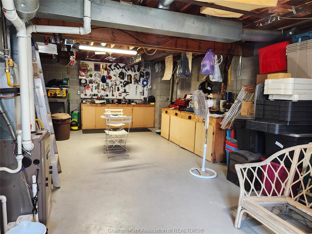 Welcome to this well-maintained 3-bedroom brick ranch in the heart of blenheim, ideally located within walking distance to downtown and just minutes from schools, parks, the arena, and indoor swimming pool. This inviting home offers the perfect blend of comfort, convenience, and functional living space. Step inside to a spacious main floor featuring three generously sized bedrooms, including a primary bedroom with a convenient cheater ensuite. The layout is ideal for both everyday living and entertaining, with a large eat-in kitchen, a separate dining room, and a bright living room highlighted by a cozy stone-hearth gas fireplace and patio doors leading out to the backyard. Enjoy the ease of main floor laundry, adding to the home’s practical design. Downstairs, the basement offers excellent additional space with a large utility room and workshop area, perfect for hobbies, storage, or projects. You’ll also find partially framed areas ready for your finishing touches—ideal for creating a future rec room and family room tailored to your needs. Outside, the beautifully landscaped yard provides a relaxing retreat, complete with a covered patio area and gas bbq hookup—perfect for hosting family and friends. The property also features an asphalt driveway and two handy storage sheds (8' x 12' and 9' x 8'). Additional updates include a forced air gas furnace and heat pump (2022), as well as a sump pump with water backup system (2024), offering peace of mind for years to come. This solid, well-cared-for home is an excellent opportunity for families, retirees, or anyone seeking a quiet, convenient lifestyle in a friendly community.