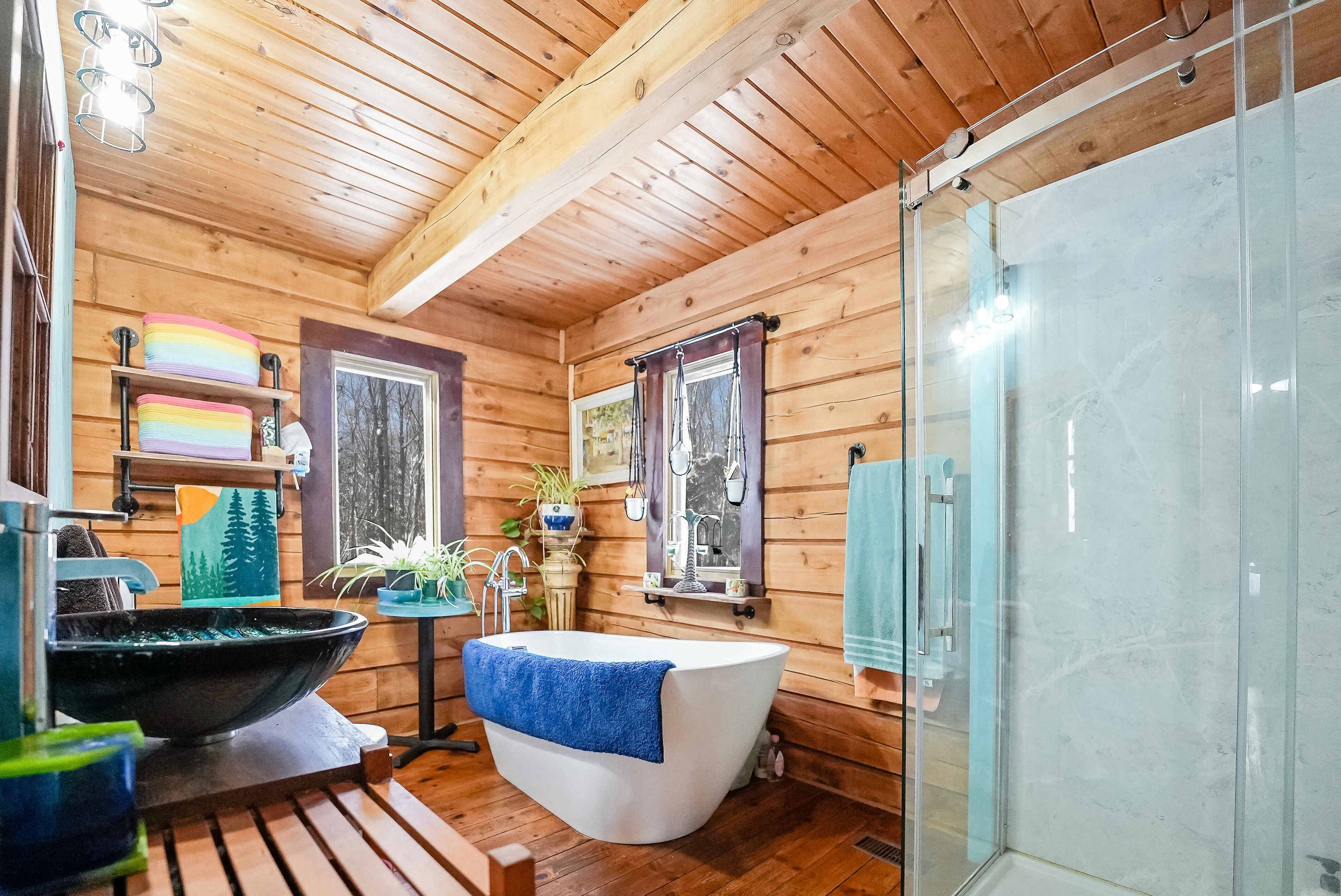 Own over 22 acres of private haliburton forest, trails, and water features with this rare dual-residence property. Centered around an authentic log home and a secondary bungalow, this estate offers a unique combination of rustic character and modern utility. Located just off highway 118, the property provides a secluded natural setting with reliable year-round access, making it an ideal choice for multigenerational living or those seeking a home with built-in income potential. The primary log home spans three floors and features an updated kitchen and bathroom. The main living area is centered around a wood stove that enhances the rustic ambiance of the structure. The upper level contains two bedrooms, while the walk-out basement is fully utilized with a studio, workshop, and gym. This layout maximizes the footprint, offering dedicated spaces for both daily living and creative projects. The adjacent bungalow serves as a versatile secondary residence and is currently licensed by the municipality for short-term rentals. This single-story home includes one bedroom plus a den, a full kitchen, living room, and laundry facilities, making it fully self-contained and accessible. Whether used for guests, a tenant to offset the mortgage, or a professional studio, this building provides significant financial and functional flexibility. The expansive 22+ acre grounds are a highlight for nature enthusiasts, featuring a diverse landscape of mature trees and water elements that attract local wildlife. Picture the fun in the above ground pool with wood fired pool heater with pizza oven on top or at the fire pit after exploring the large scenic acreage. Situated in a county known for its vibrant arts community, this property offers the space and privacy needed for inspiration without sacrificing convenience. This is a practical opportunity to secure a large land holding with two established homes in a sought-after region. Must been seen in person to capture the beauty and opportunity!