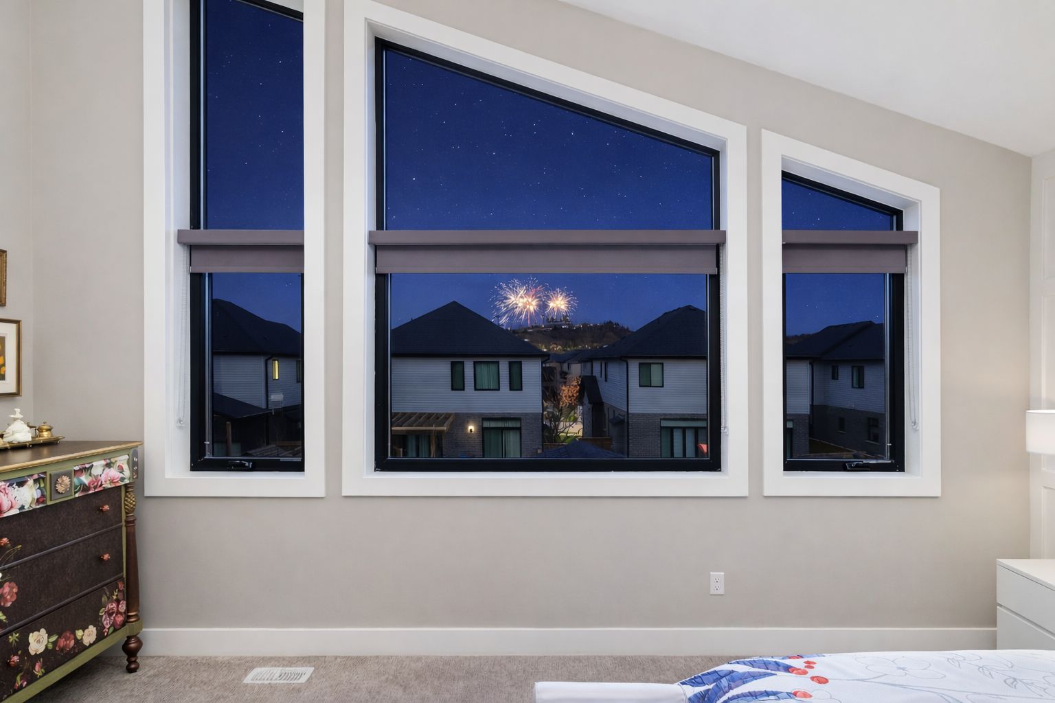 Step into refined living with this beautifully designed two-storey home that blends modern elegance with thoughtful functionality. Featuring 4 spacious bedrooms on the second floor and 1 additional bedroom in the finished basement, this home offers the perfect layout for families and entertaining alike. The main floor showcases a stunning open-concept design highlighted by a striking floor-to-ceiling glass wine cabinet that creates a true showpiece. Living room and kitchen have a built in speaker system. The gourmet kitchen is a chef's dream, complete with a dramatic waterfall island, farmhouse sink, melamine and wood cabinetry and premium fisher & paykel appliances. Convenient main floor laundry with scissor drying racks adds everyday practicality to the elegant design. Upstairs, you'll find three beautifully appointed bathrooms, including a luxurious primary ensuite with a soaker tub along with heated floors and a jack-and-jill bathroom also with heated floors thoughtfully connecting two of the bedrooms. The primary suite offers a peaceful retreat with picturesque views of boler mountain right from the bedroom window with the occasional firework display. The finished basement provides additional living space with a generous rec room and an extra bedroom with a cheater ensuite bathroom-perfect for guests , a home office, or a growing family. Outside, enjoy a covered back deck overlooking the fully fenced yard, surrounded by professional landscaping with a roughed in sprinkler system that enhances both beauty and privacy. A double car garage completes this exceptional property. From the designer accent walls throughout to the carefully curated finishes, every detail in this home has been thoughtfully crafted to deliver comfort, style, and sophistication in one remarkable package. Come and see this beautiful home for yourself!