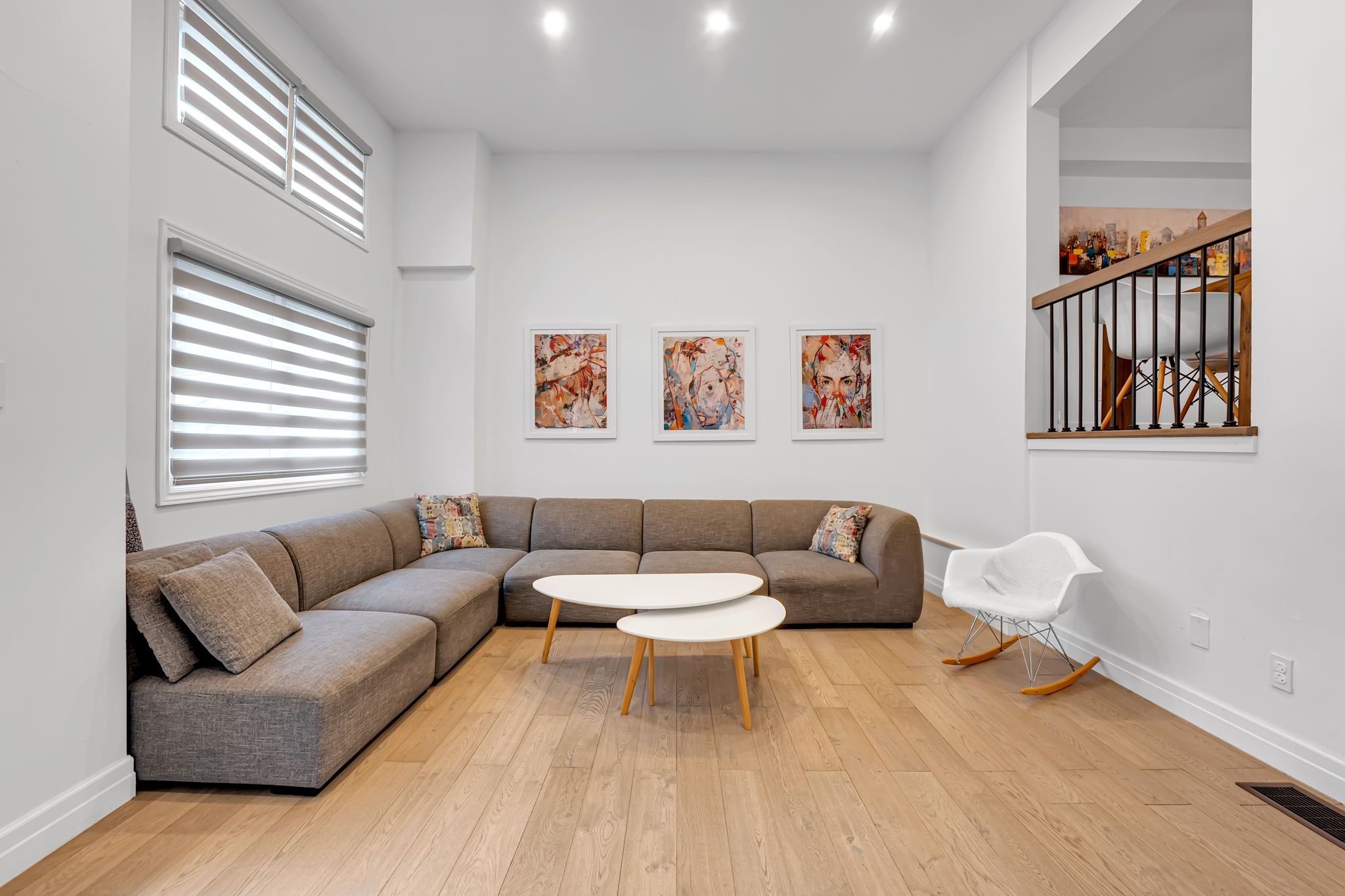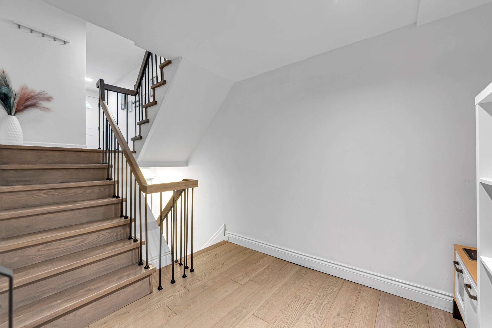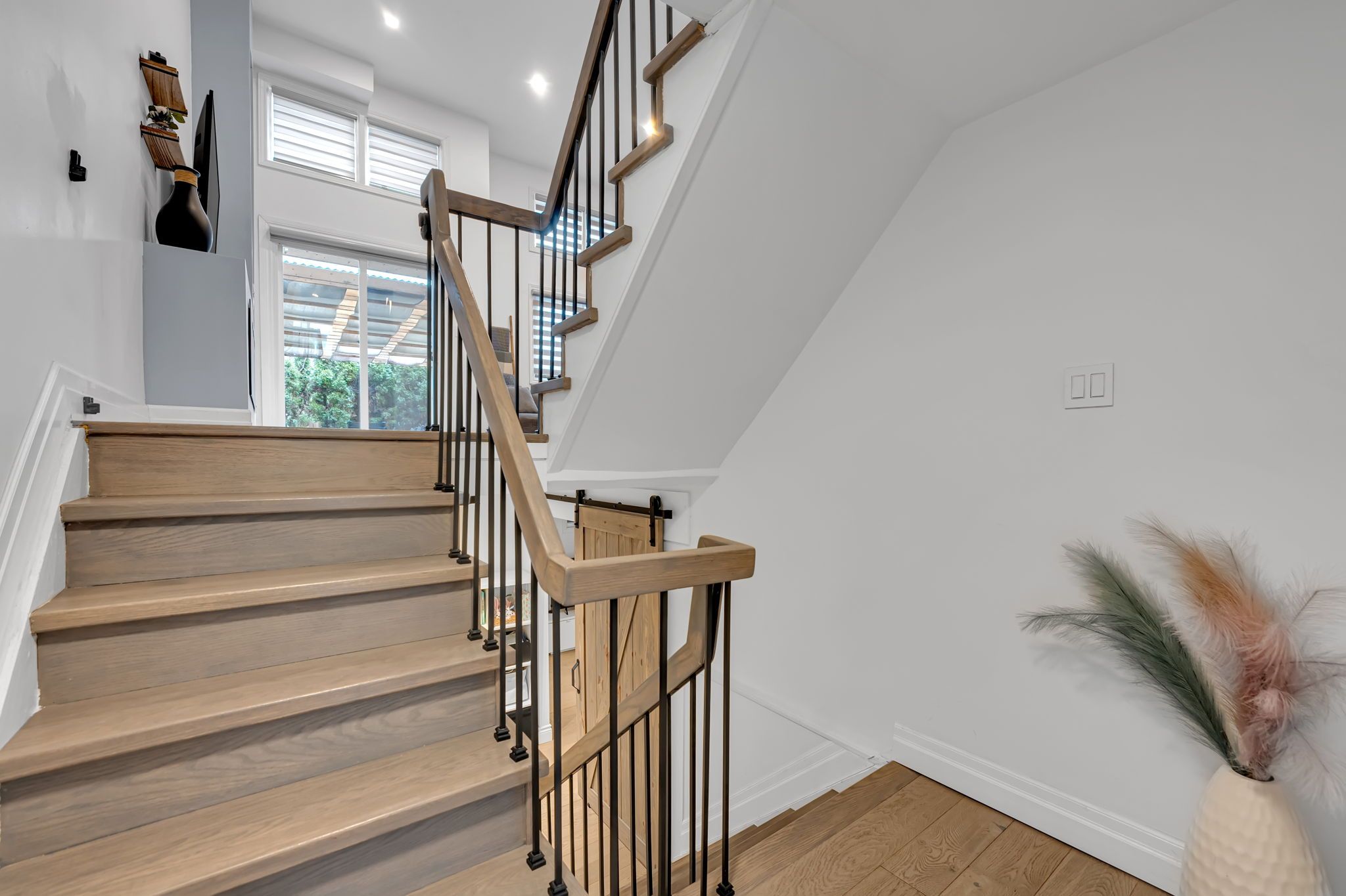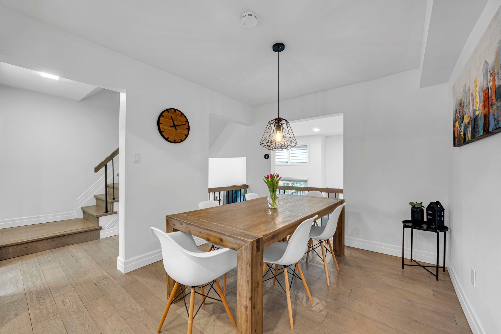 • Renovated townhouse with modern design and functional living space.