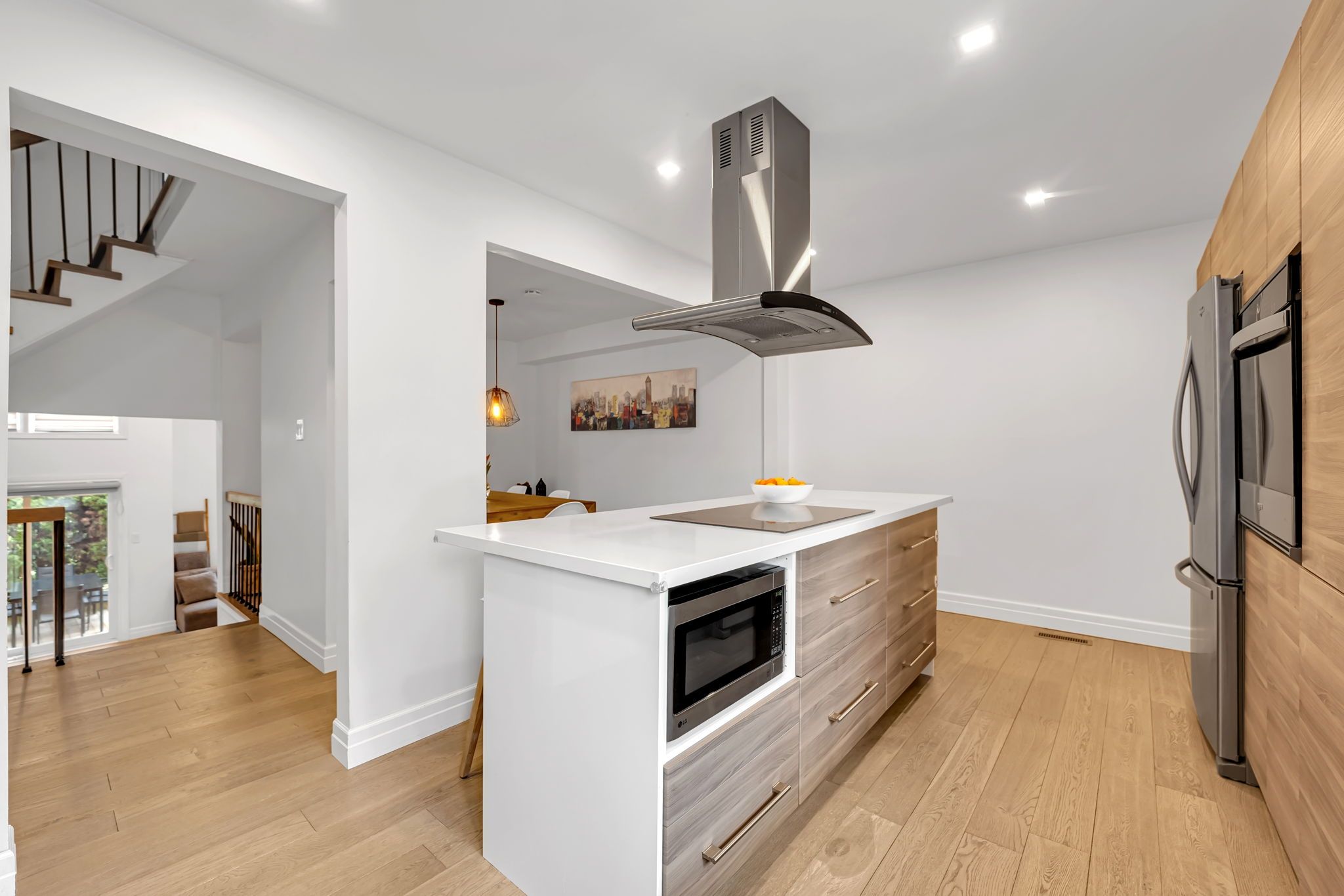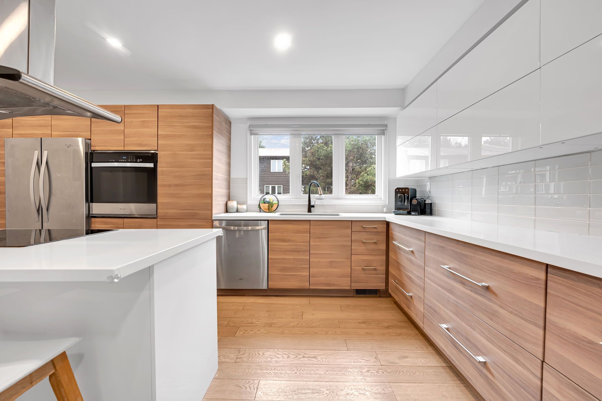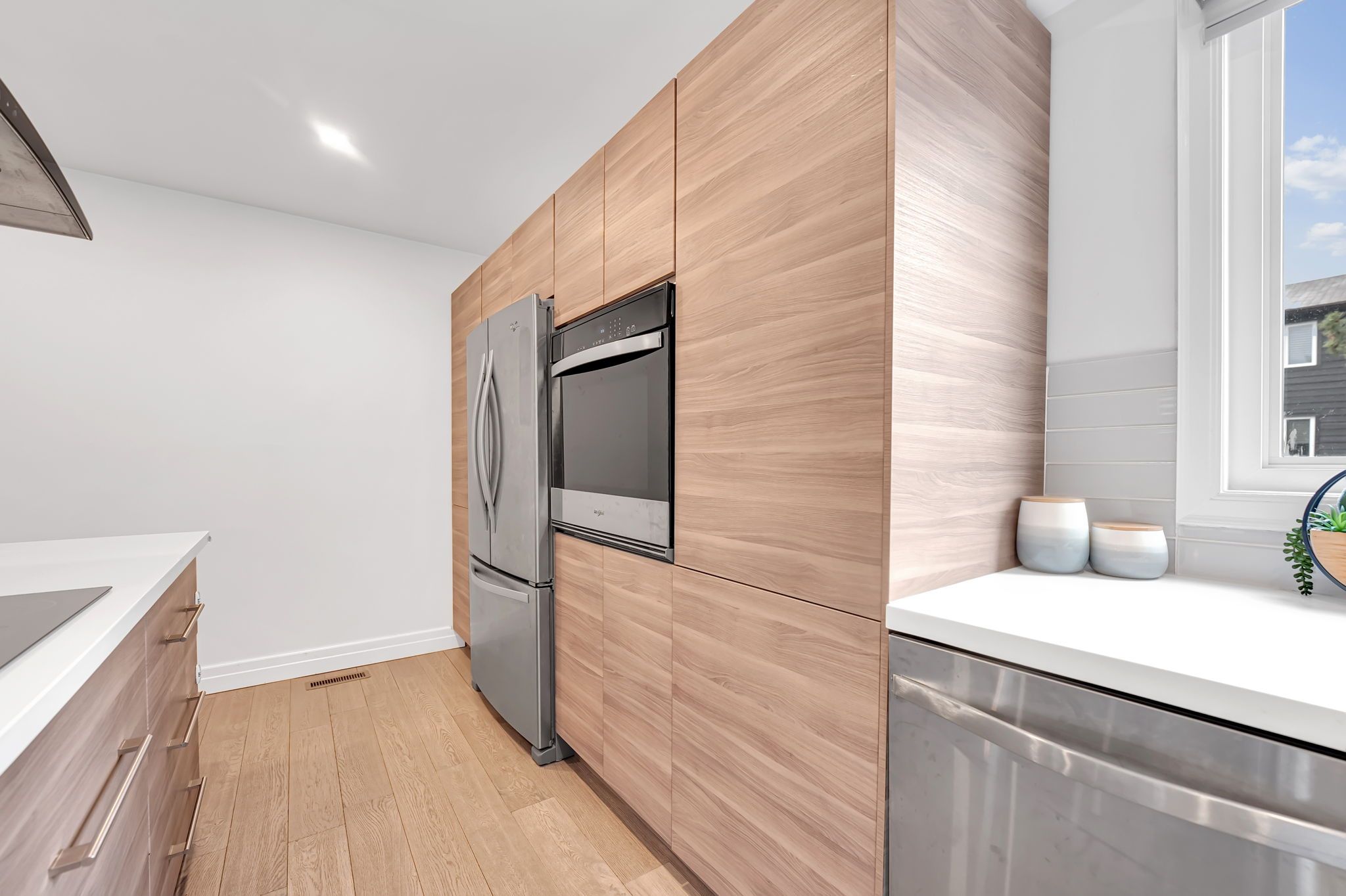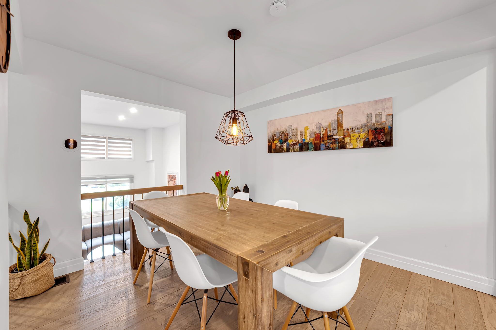 • Renovated townhouse with modern design and functional living space.